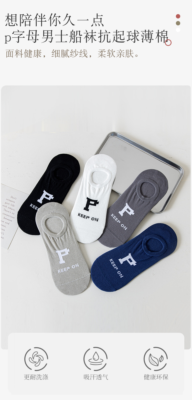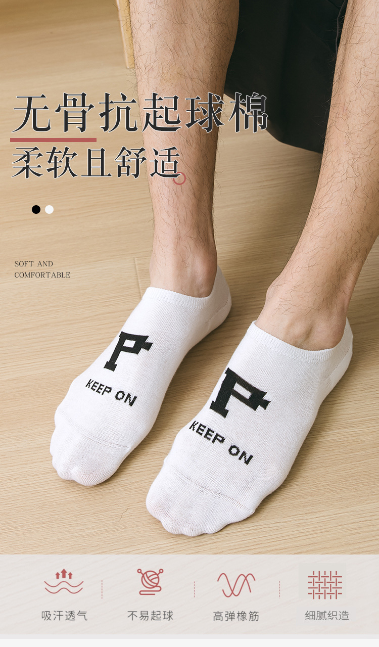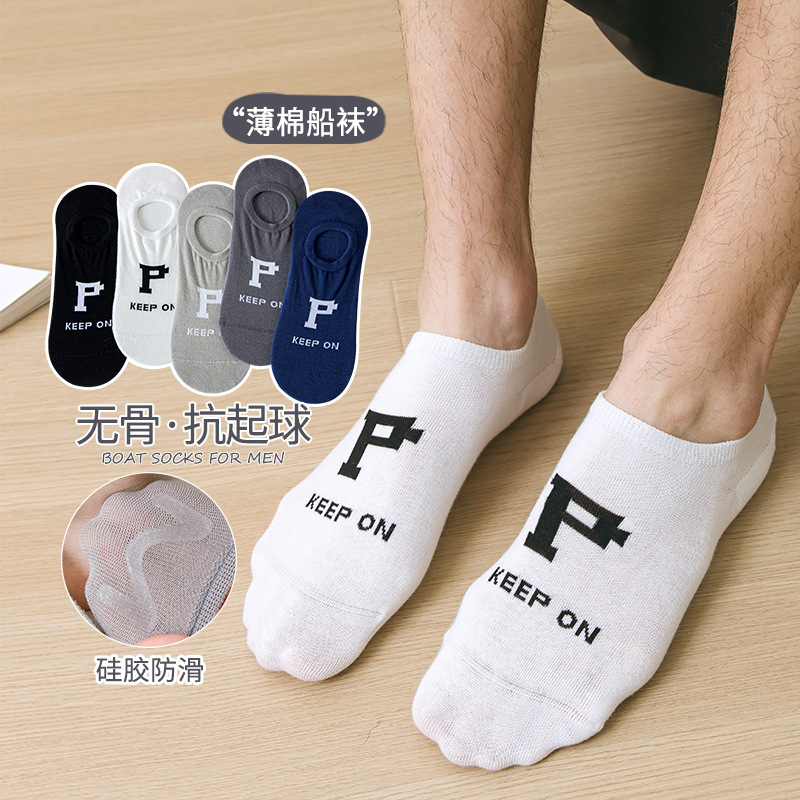 无骨男船袜抗起球隐形棉袜夏季薄款吸汗透气防滑防掉跟浅口短袜