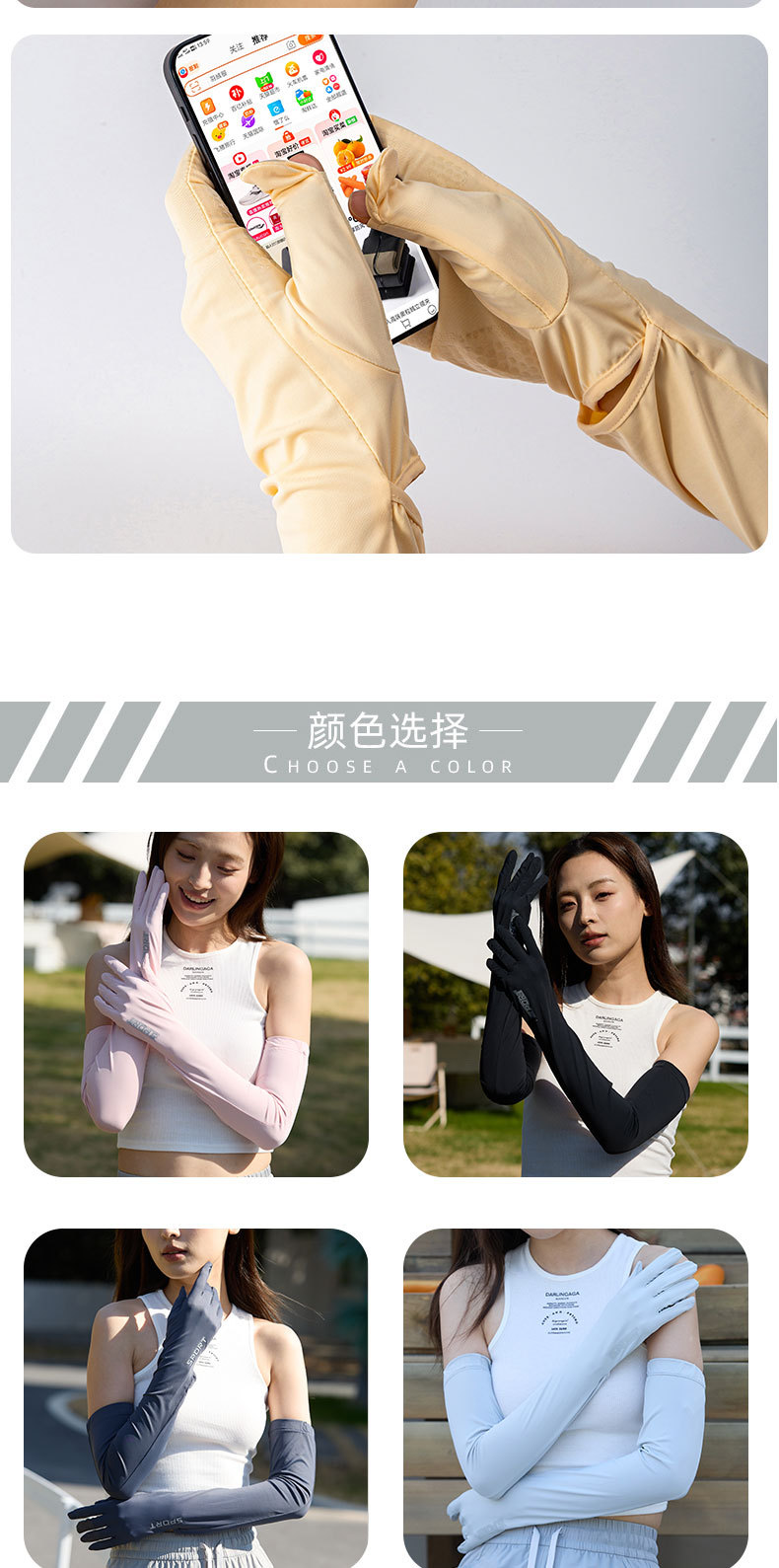 冰丝袖套防晒手套女长款护臂袖套防紫外线夏季薄运动骑行冰袖手套
