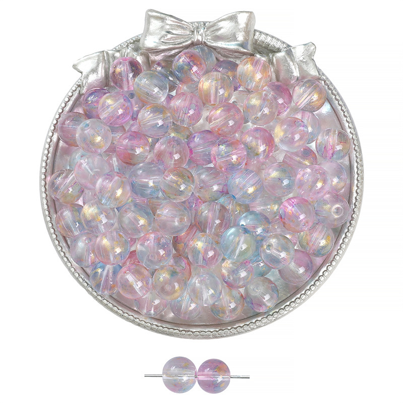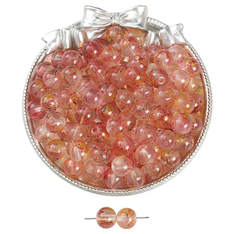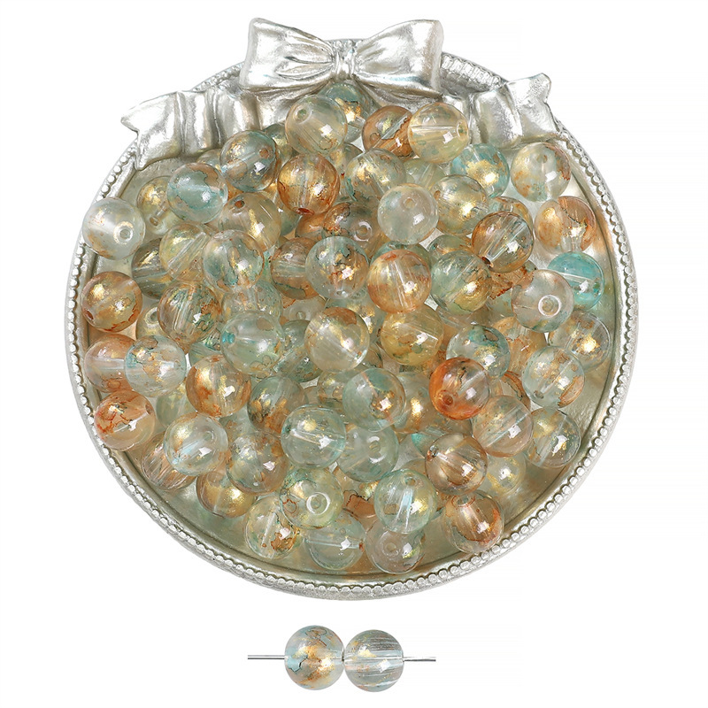 玻璃冰透水墨晕染洒金圆珠散珠子 DIY手工项链手串饰品配件速卖通