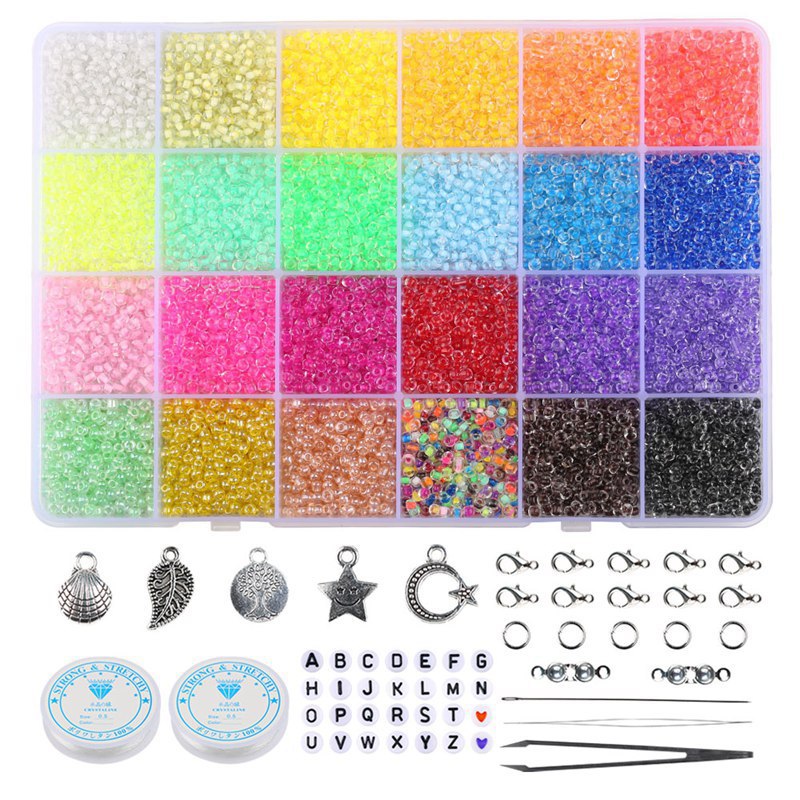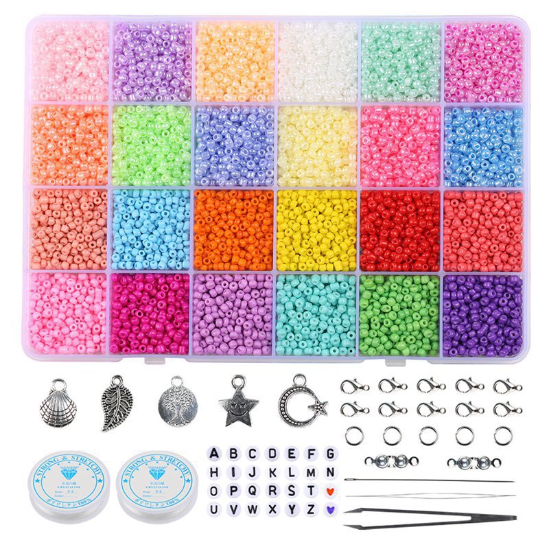 3mm玻璃米珠彩色散珠24色套盒实色奶油混系列字母珠饰品配件组合
