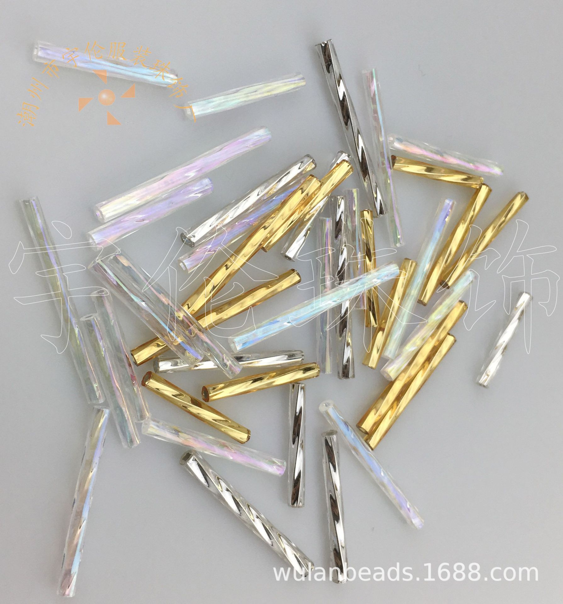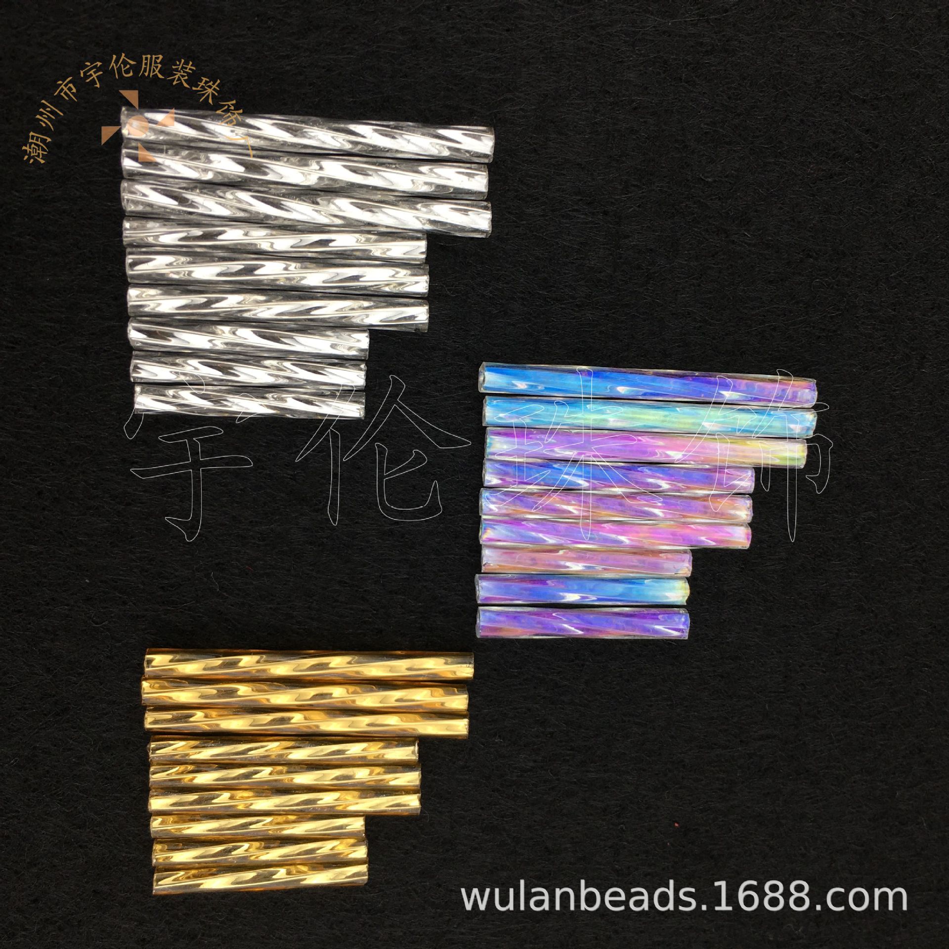 20mm 25mm 30mm长的螺旋玻璃管珠 幻彩AB 螺纹金色 银色 扭管