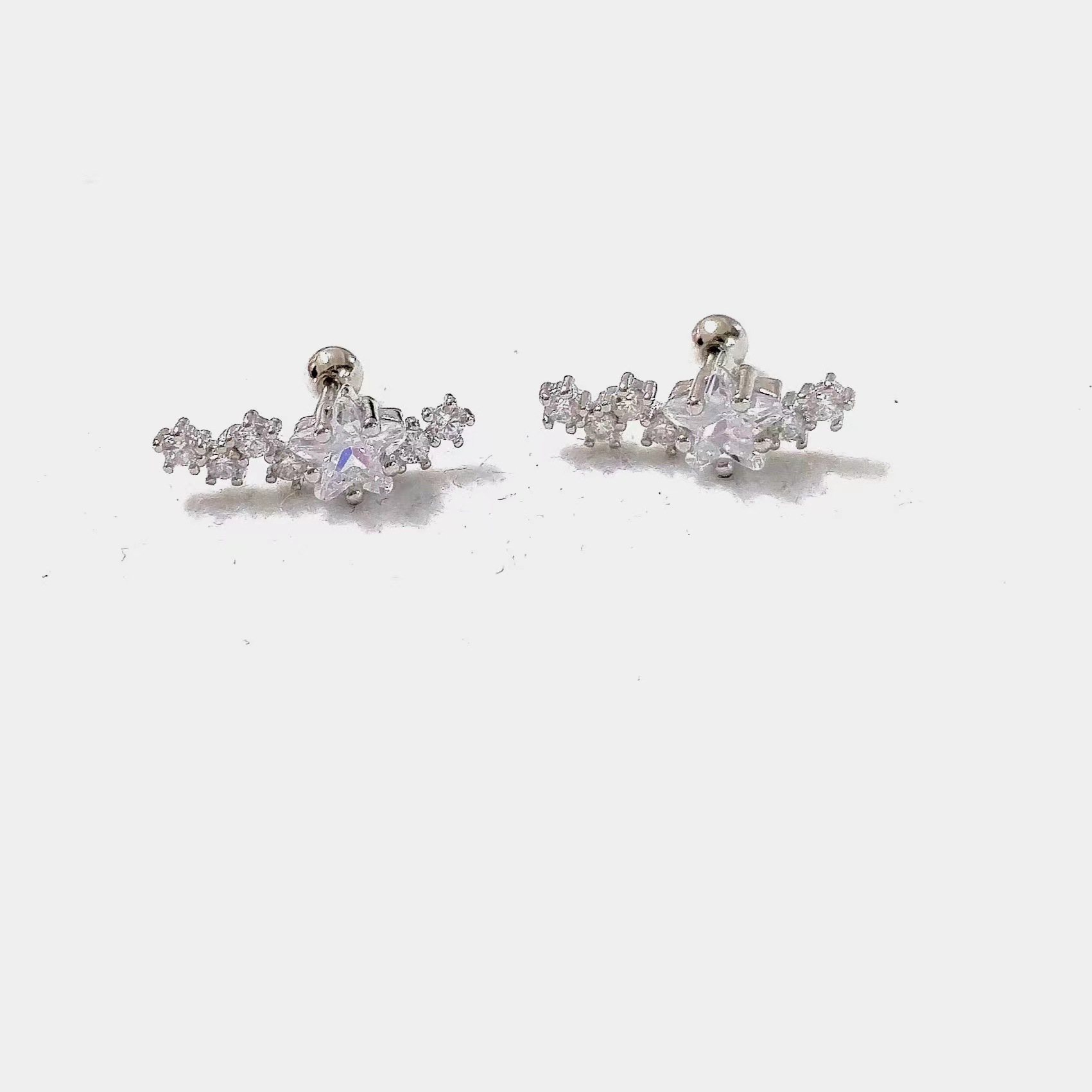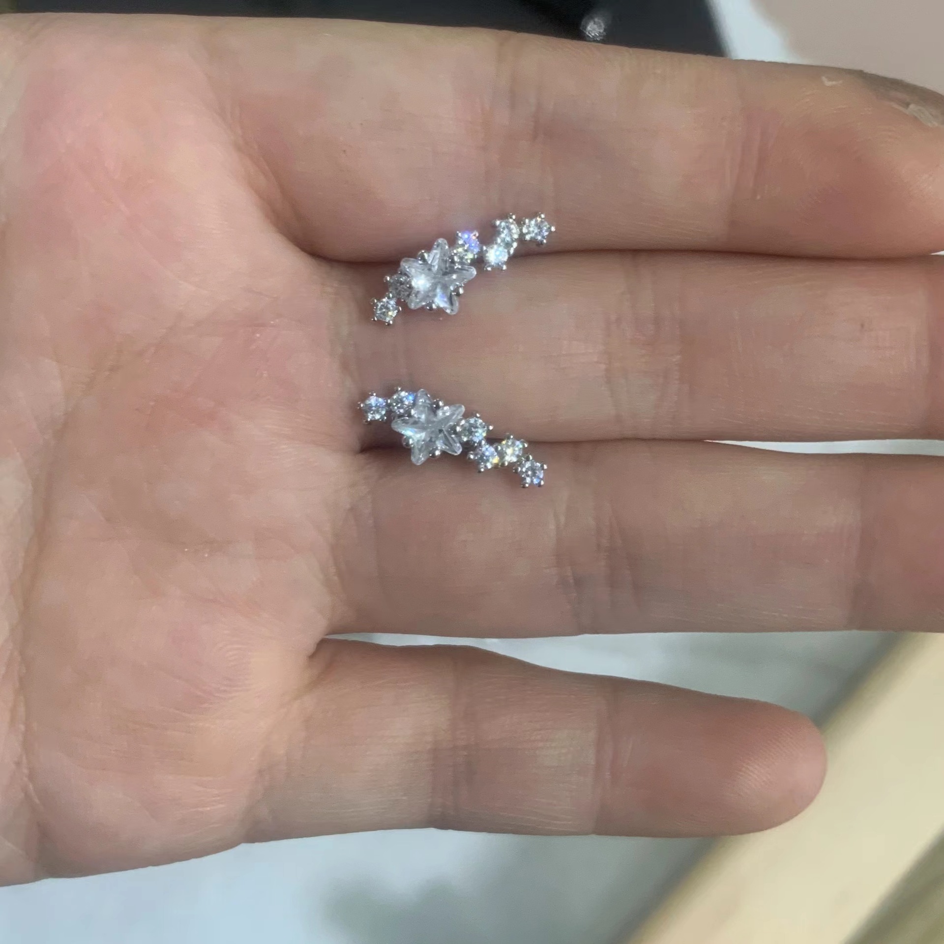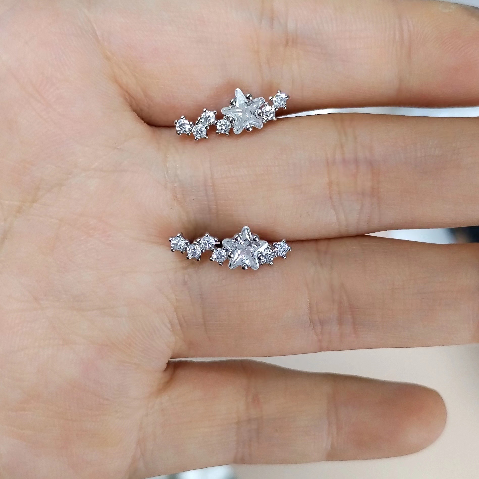 星星耳排耳钉新款时尚个性细针皓石拧螺丝气质耳骨钉耳环饰品
