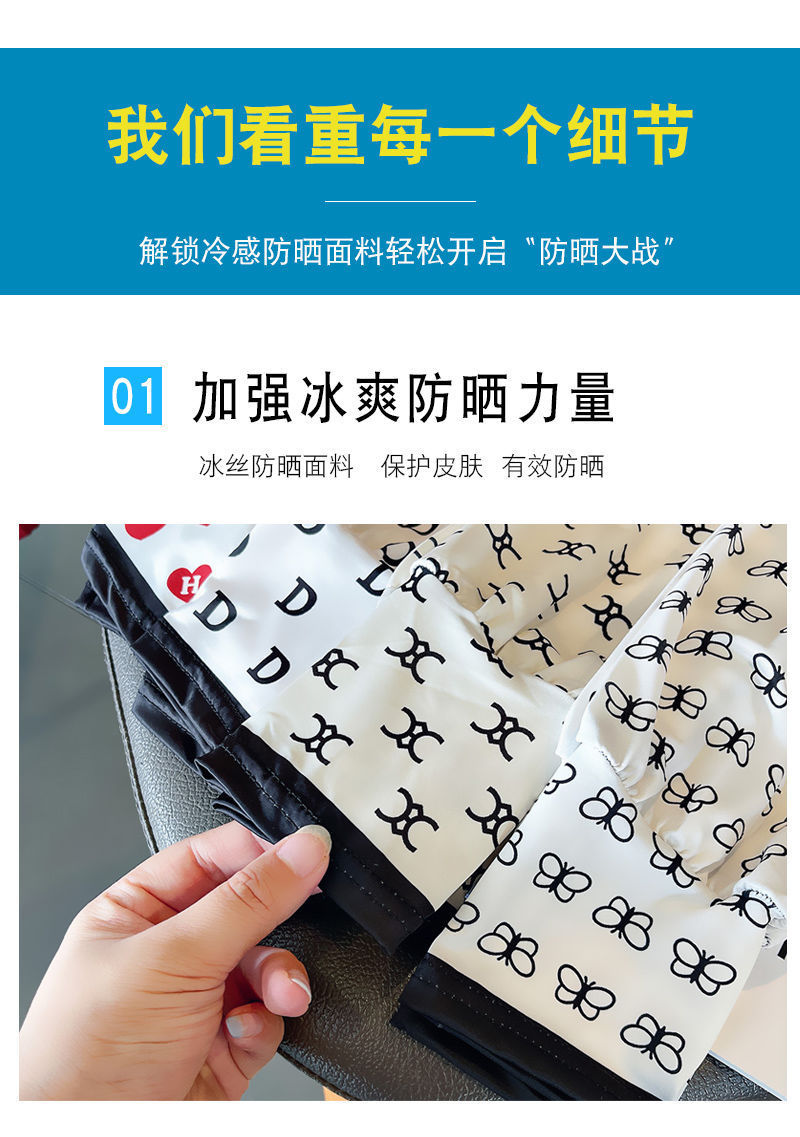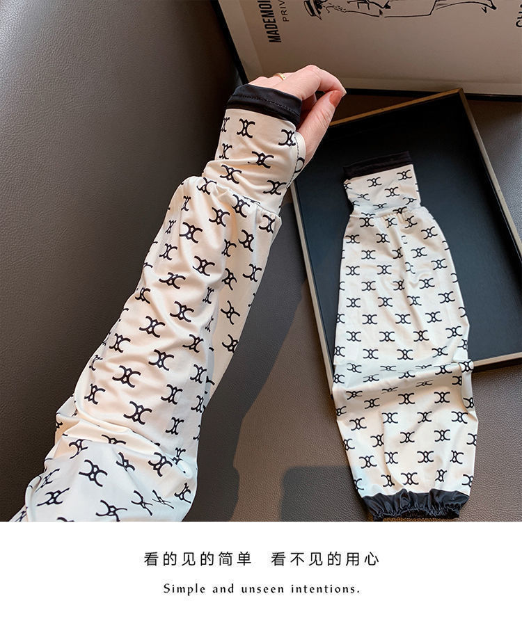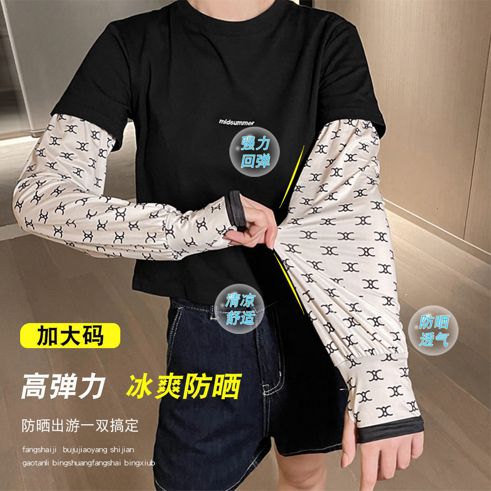 夏季户外防晒宽松图案冰丝袖套骑行防紫外线护臂韩版百搭字母冰袖
