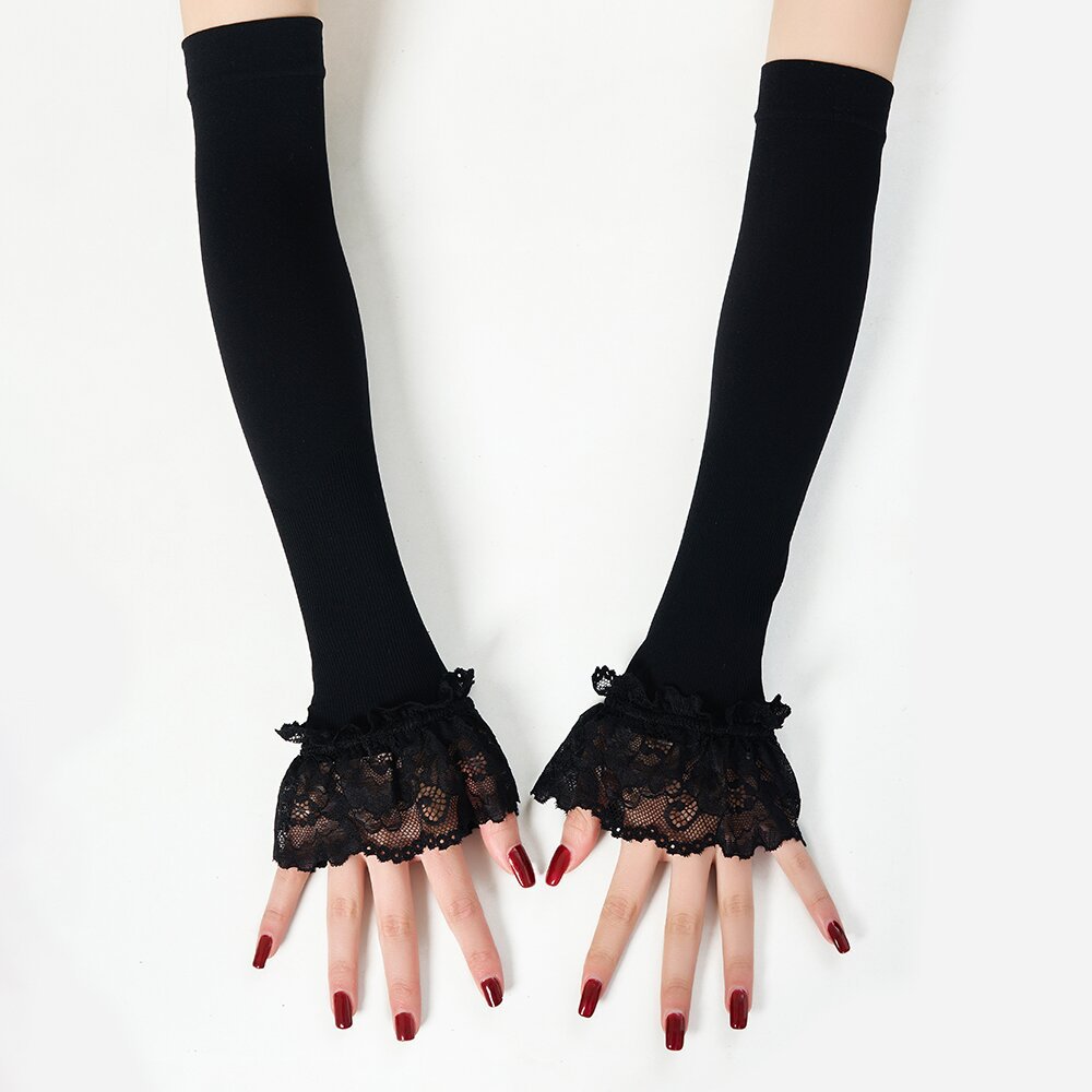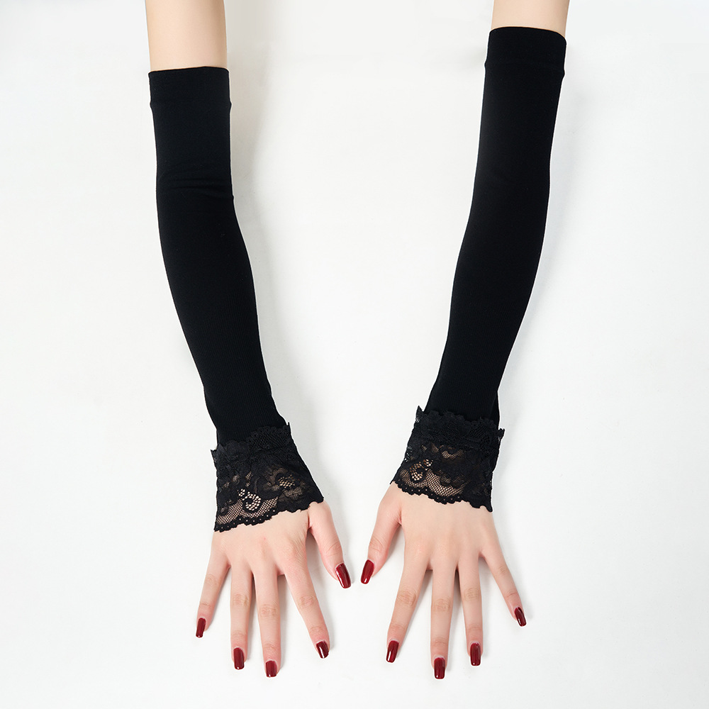 夏季女蕾丝冰丝袖套防晒网纱喇叭冰袖户外礼仪护臂透气时尚手袖套