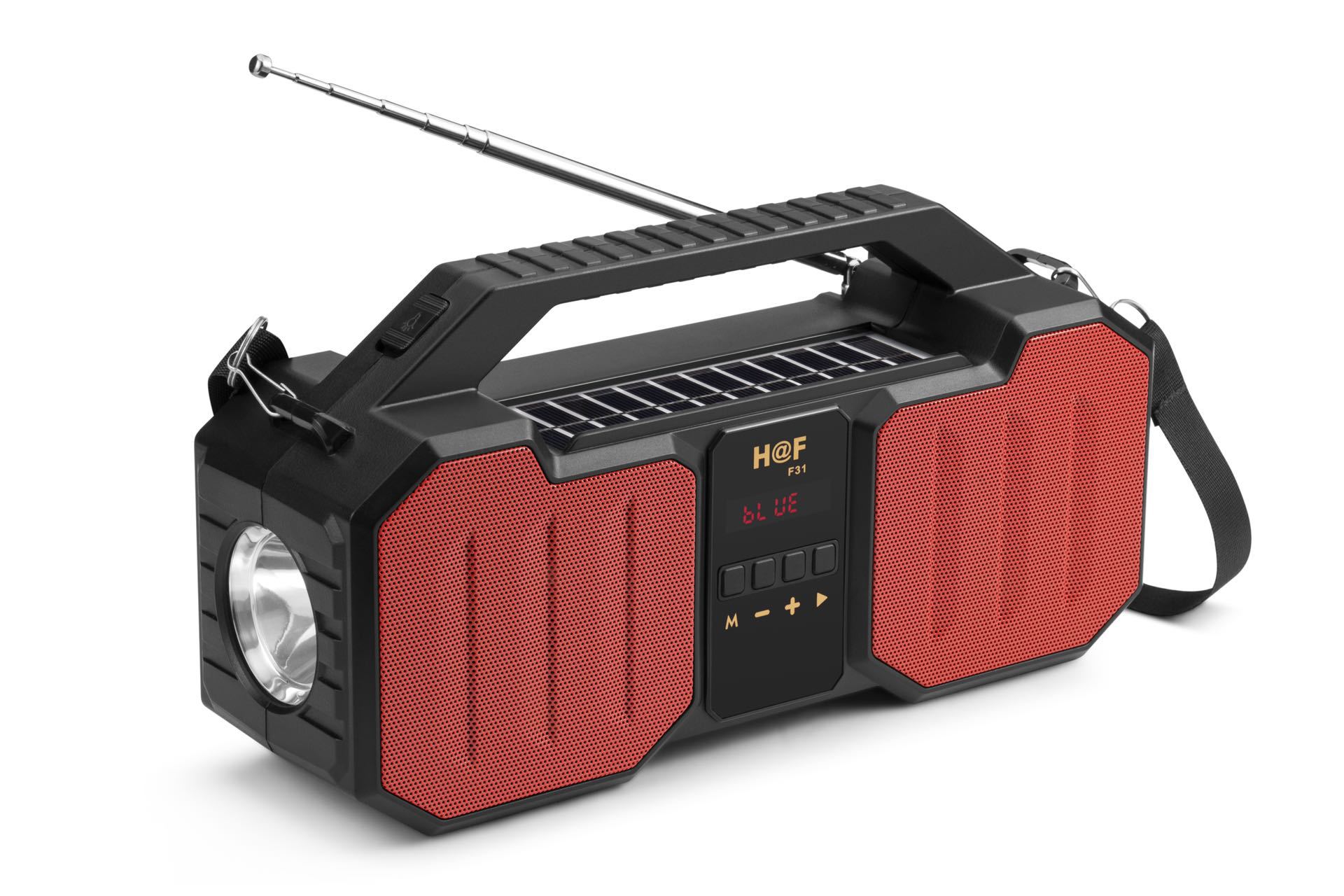 HF-F31新款非洲热卖带太阳能板充电 手电筒收音机天线蓝牙音箱