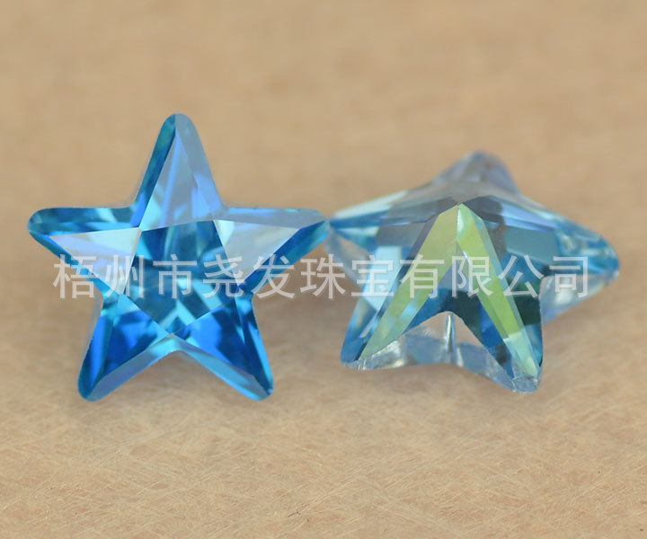 批发 海蓝色五角星形人造锆石 星星形蓝色合成立方氧化锆宝石裸石
