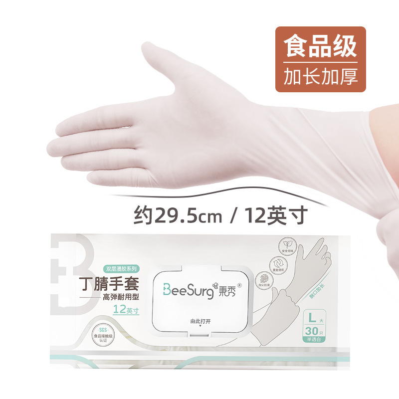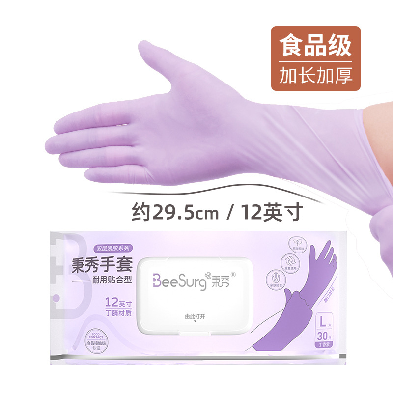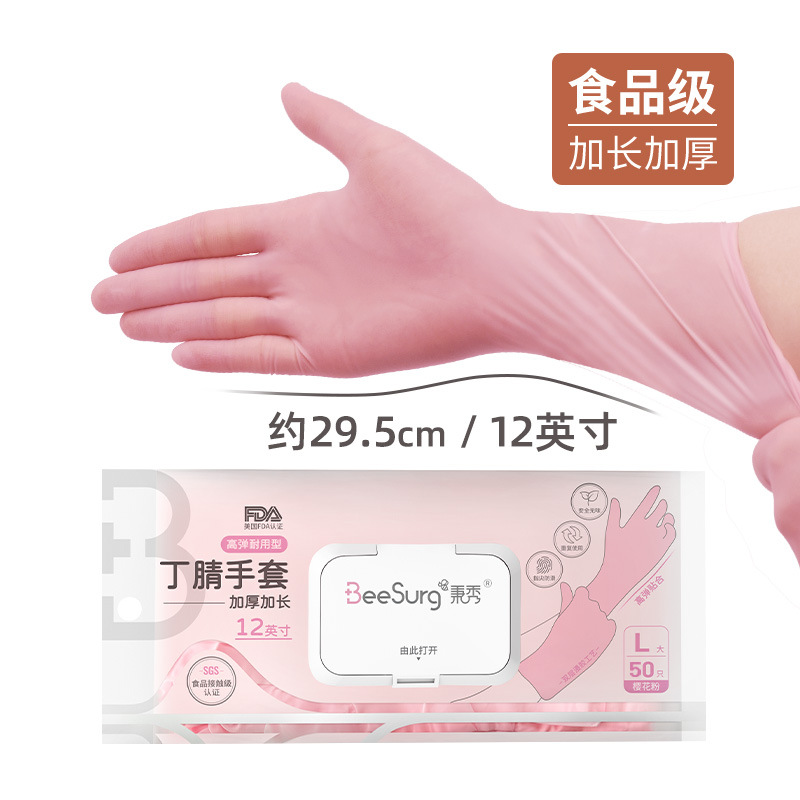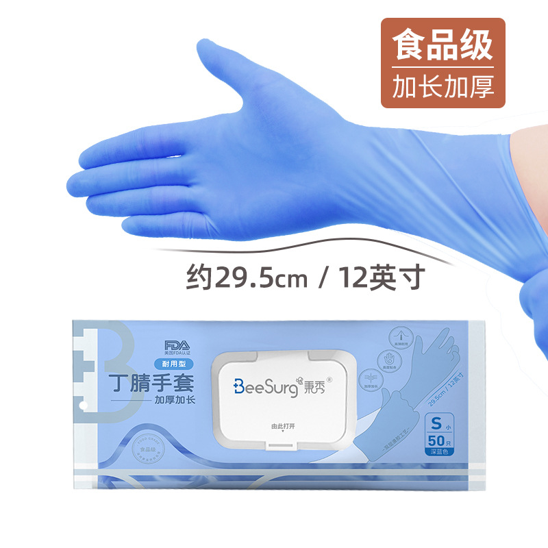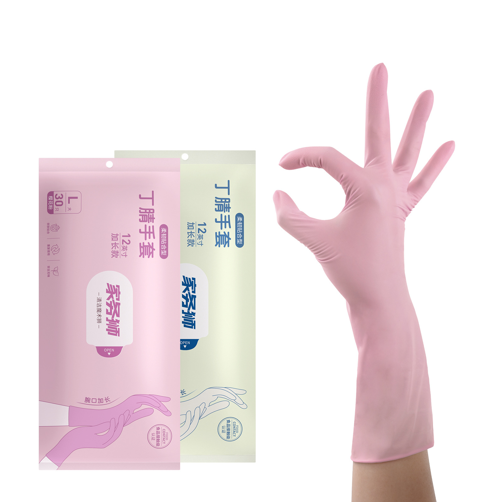 秉秀厨房家务洗碗丁腈手套 批发耐用周抛女款长筒抽取式丁腈手套