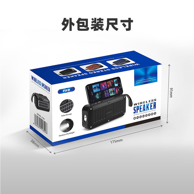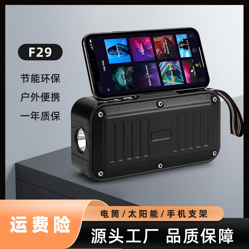 F29户外便捷式蓝牙音响无线立体声手提太阳能音箱带收音手电筒支