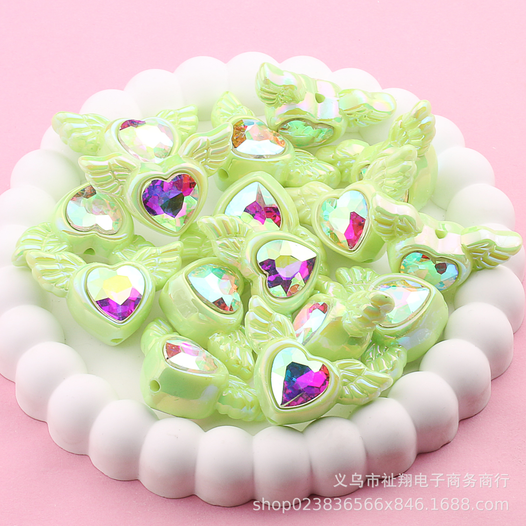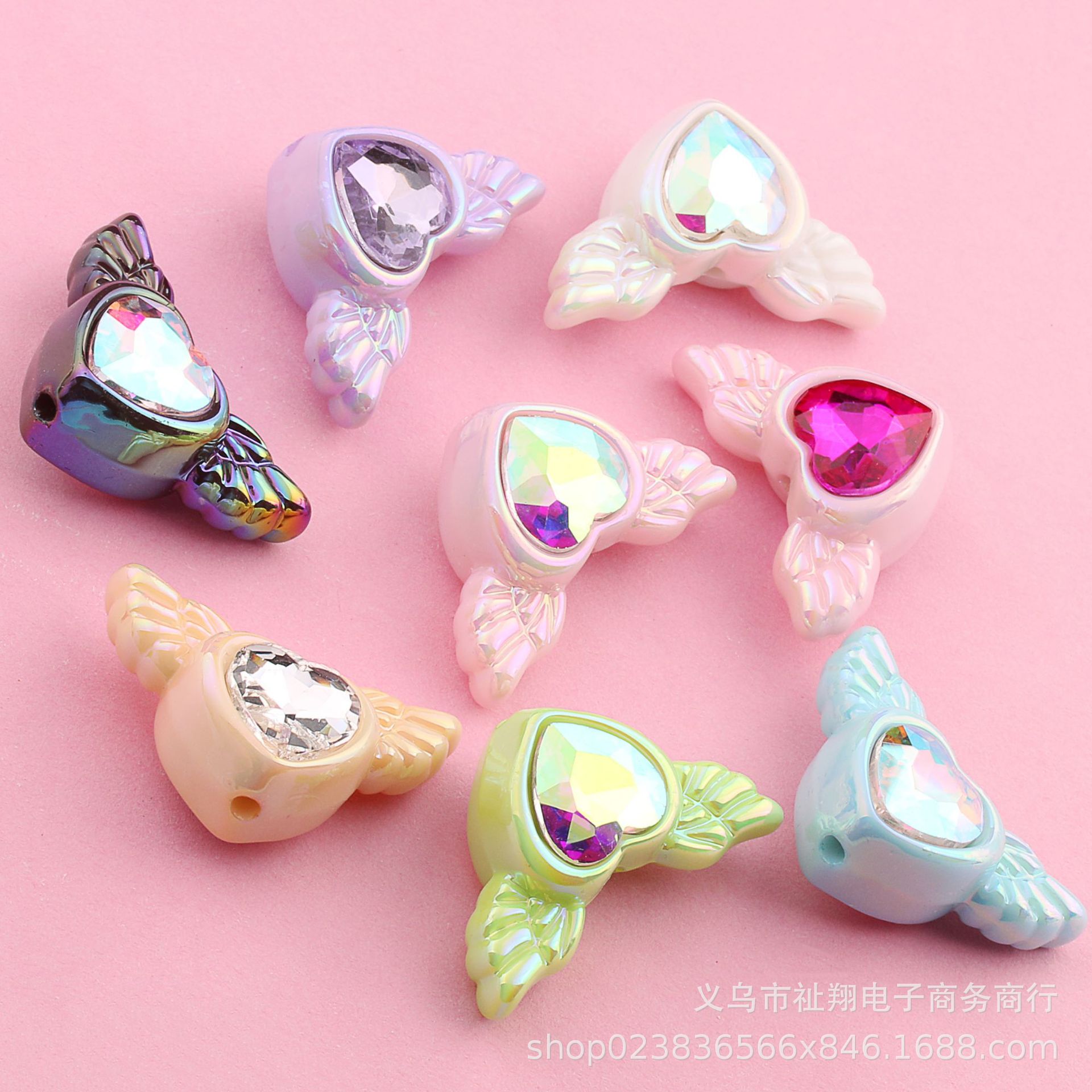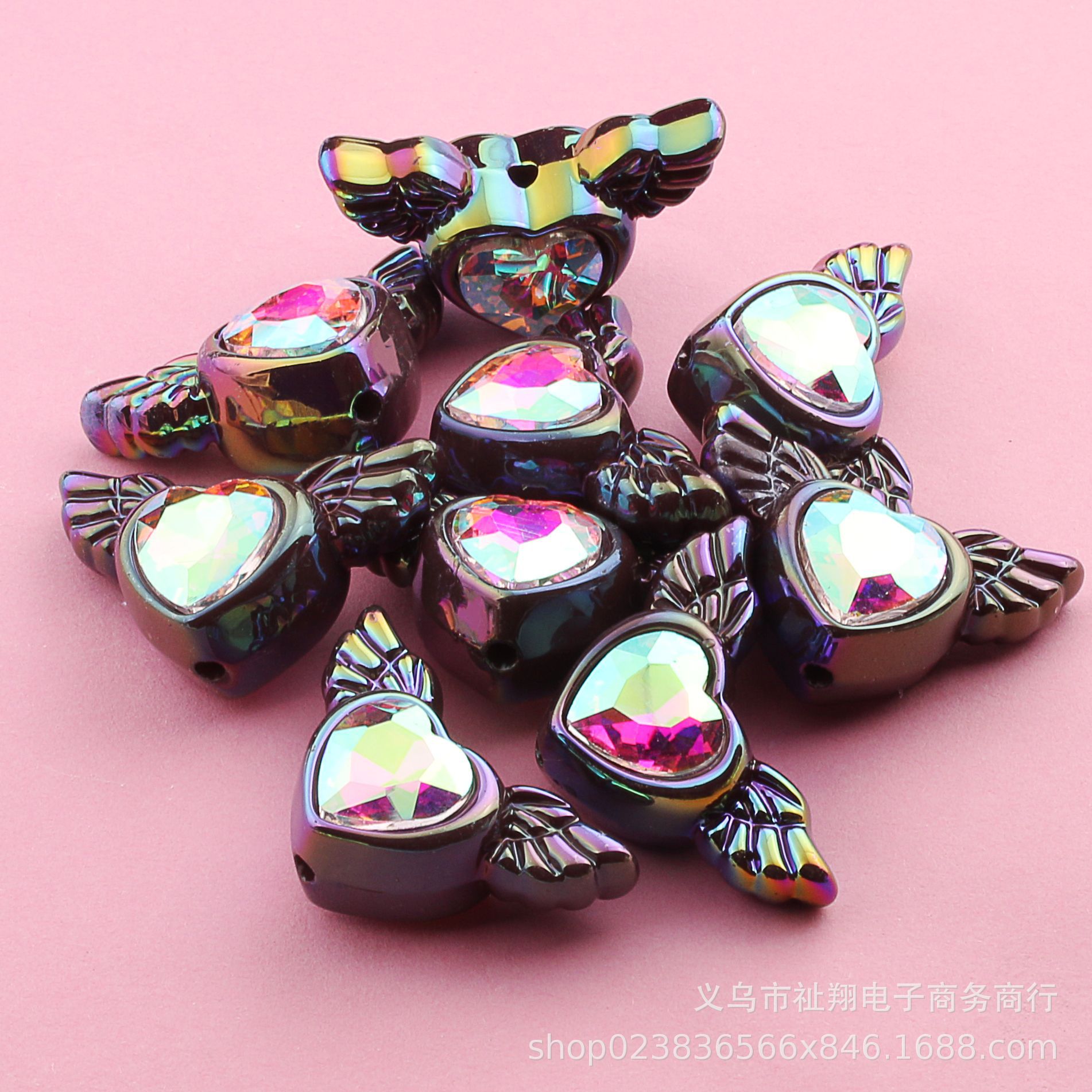 亚克力镀彩爱心翅膀双面ab彩锆石直孔串珠DIY手机链串珠笔饰品配