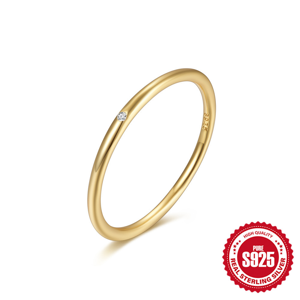日韩简约风锆石细环基础款18K金 s925纯银小众设计时尚细戒指