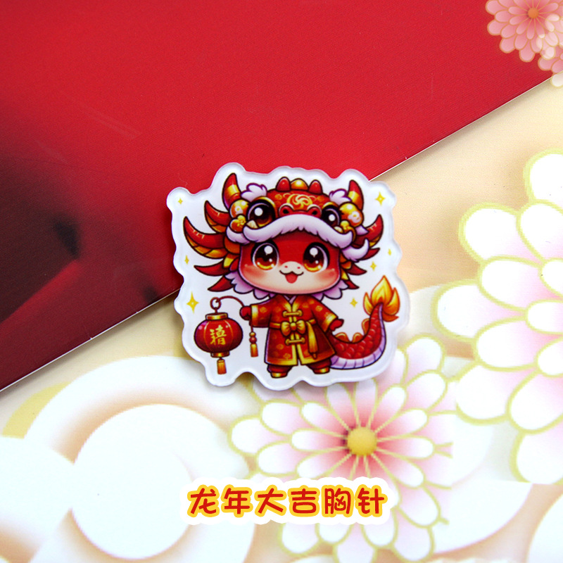 可爱小红龙亚克力胸针批发卡通龙年徽章别针书包挂件装饰配饰贴片