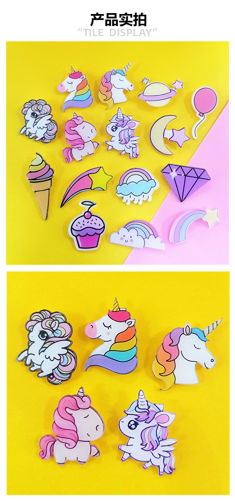 跨境盒装独角兽亚克力胸针 可爱女生背包卡通动画配饰别针