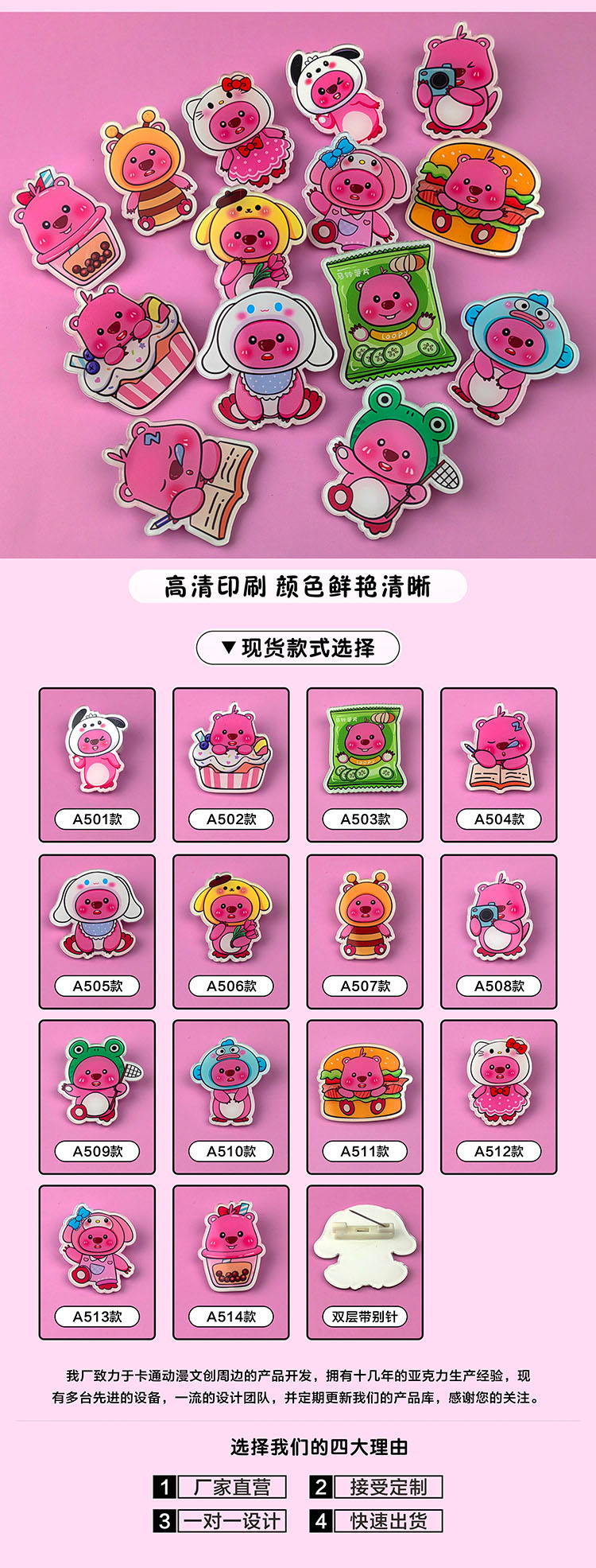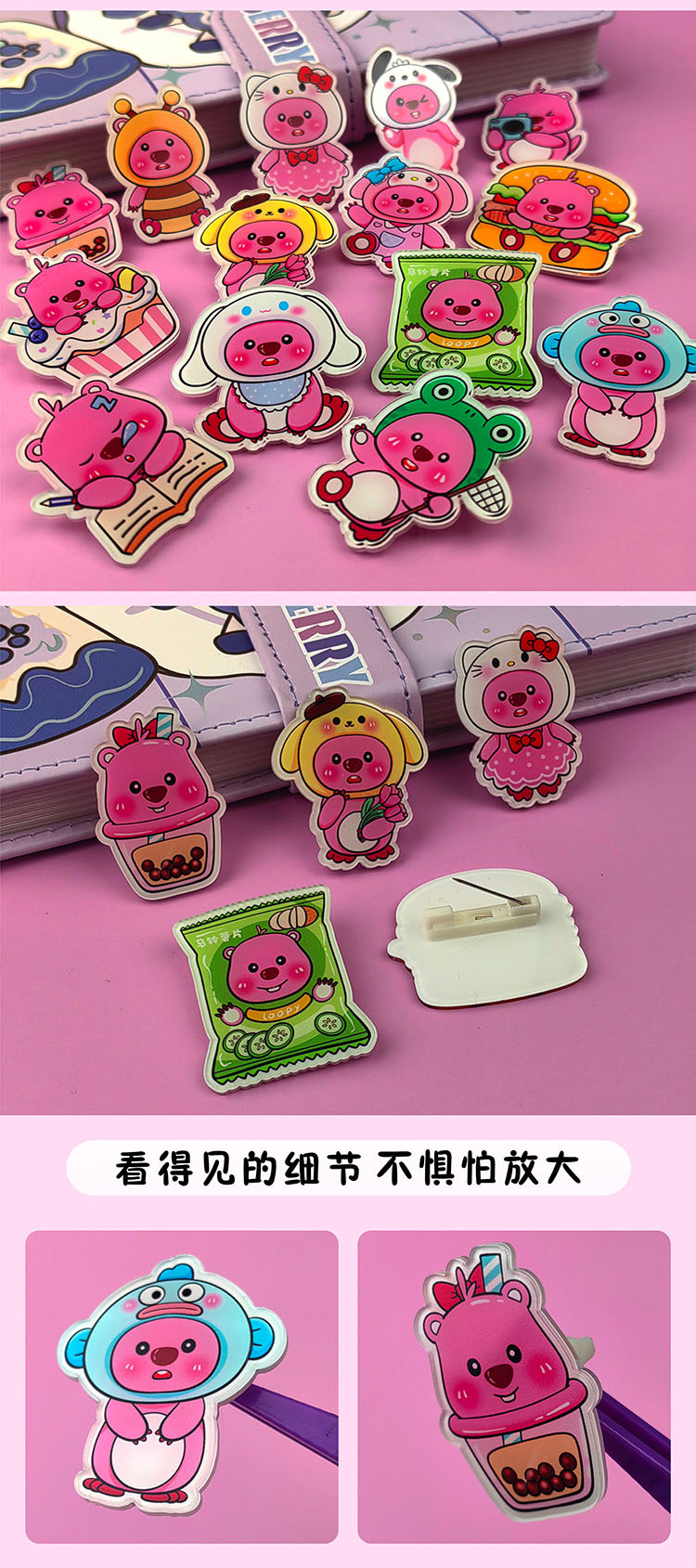 韩系loopy小海狸可爱ins亚克力胸针儿童书包卡通别针徽章挂件饰品