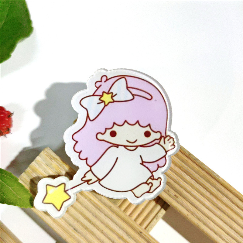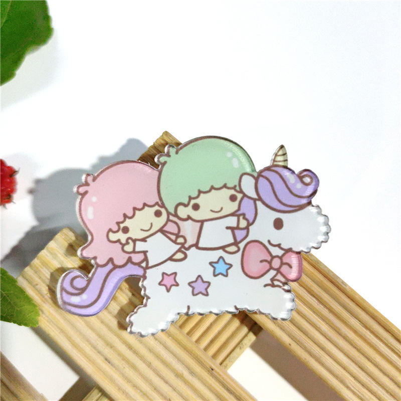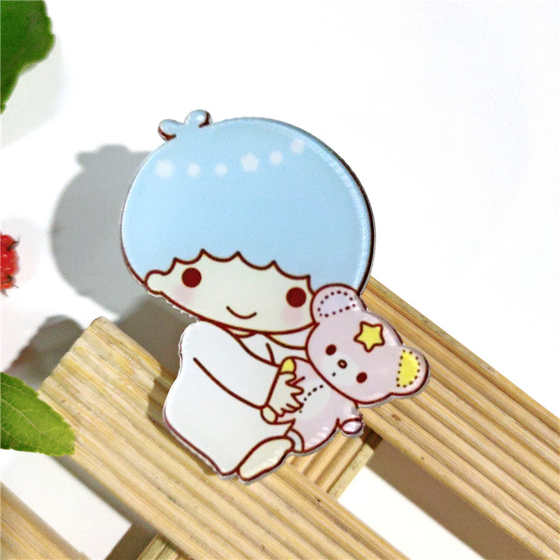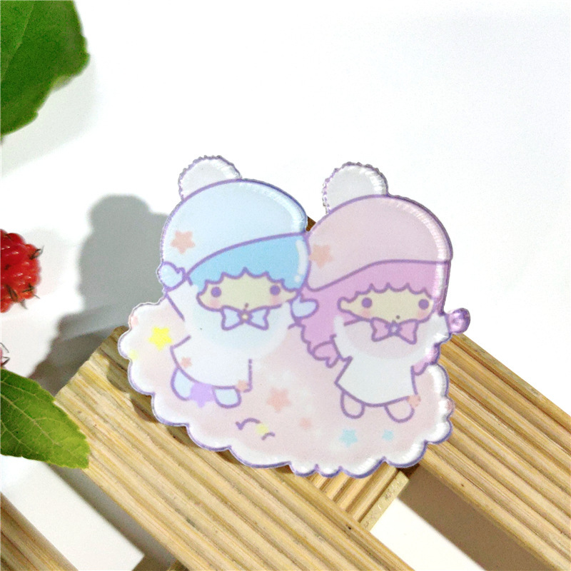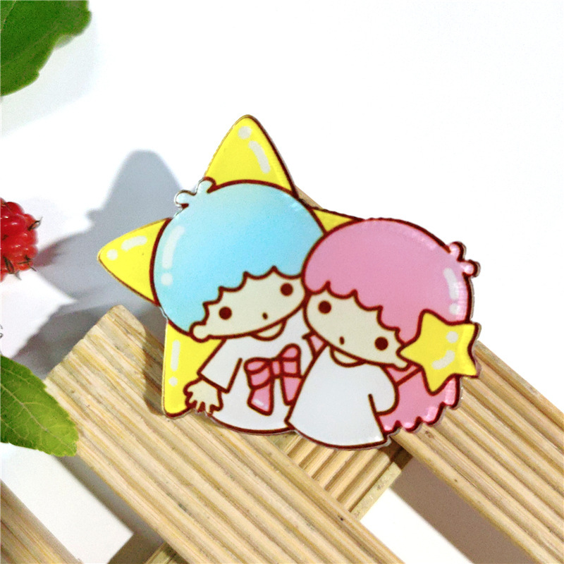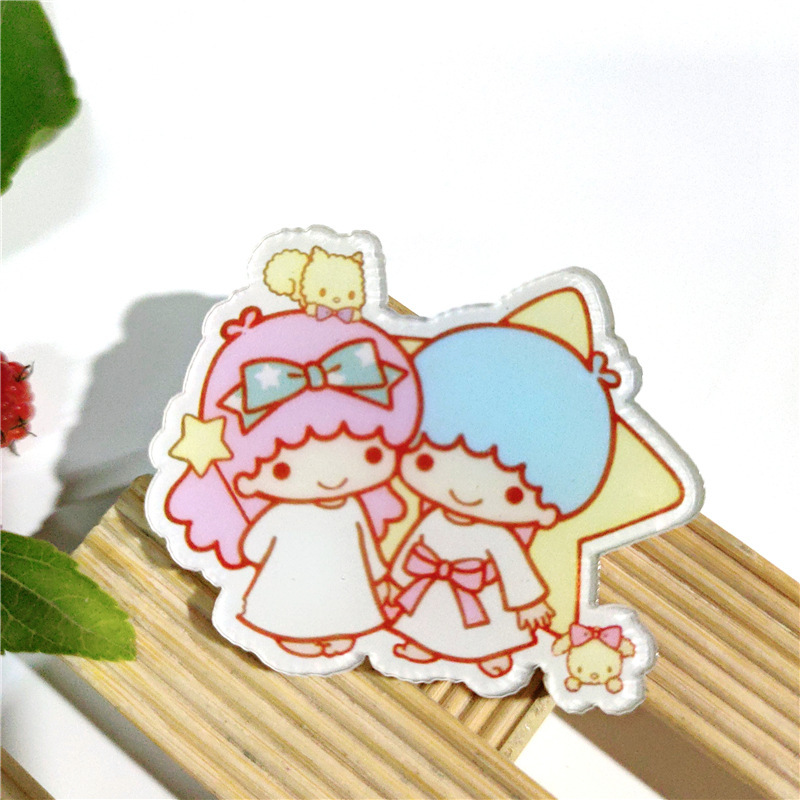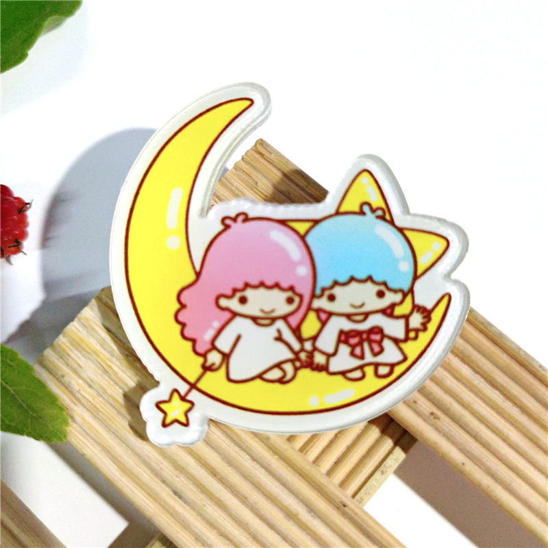 日系原宿卡通双子星亚克力胸针学生徽章衣服包包别针DIY贴片配饰