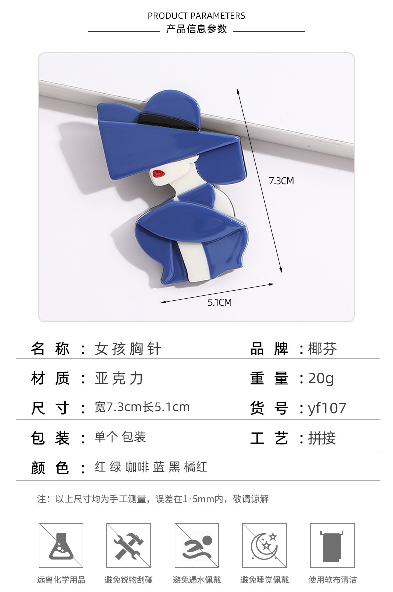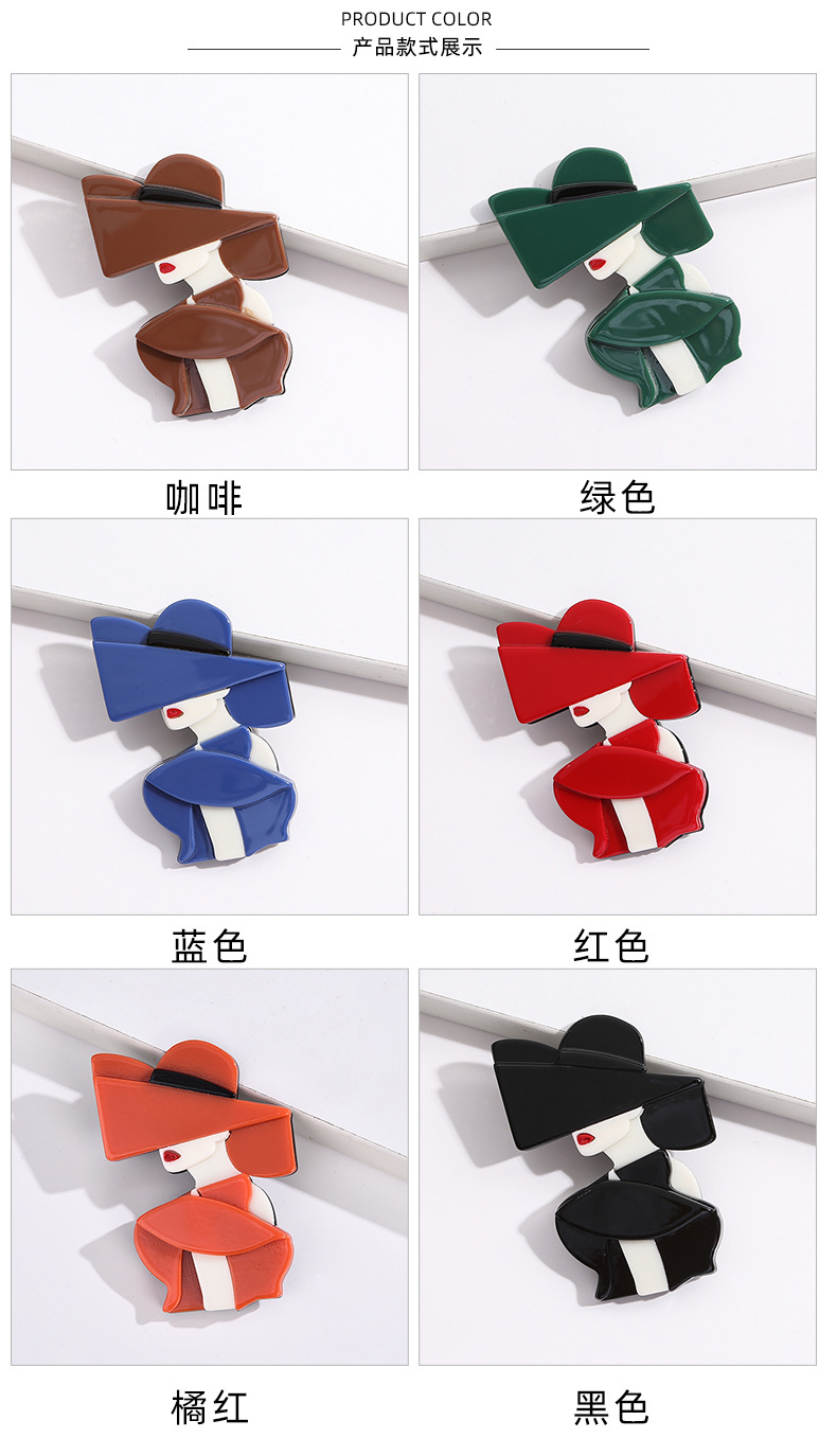 亚克力醋酸板材时尚女郎肖像别针高档服饰配饰外贸内销款个性胸花