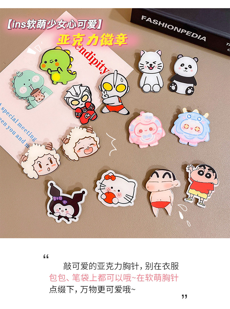 儿童卡通小胸针可爱日系别针创意书包挂件徽章女童亚克力胸牌装饰