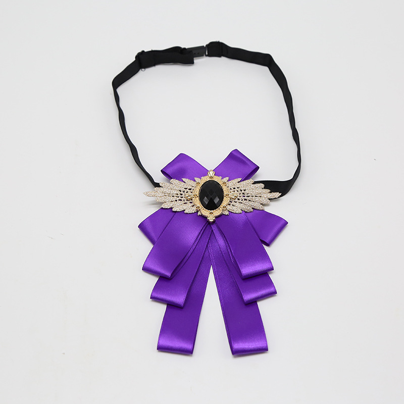 2023新款晚宴风镶宝石绸缎领结英伦多层蝴蝶结领花 职业西装衣饰