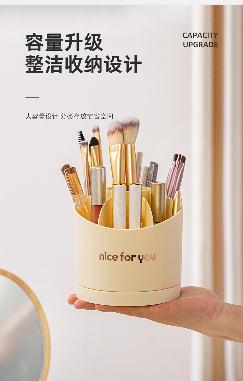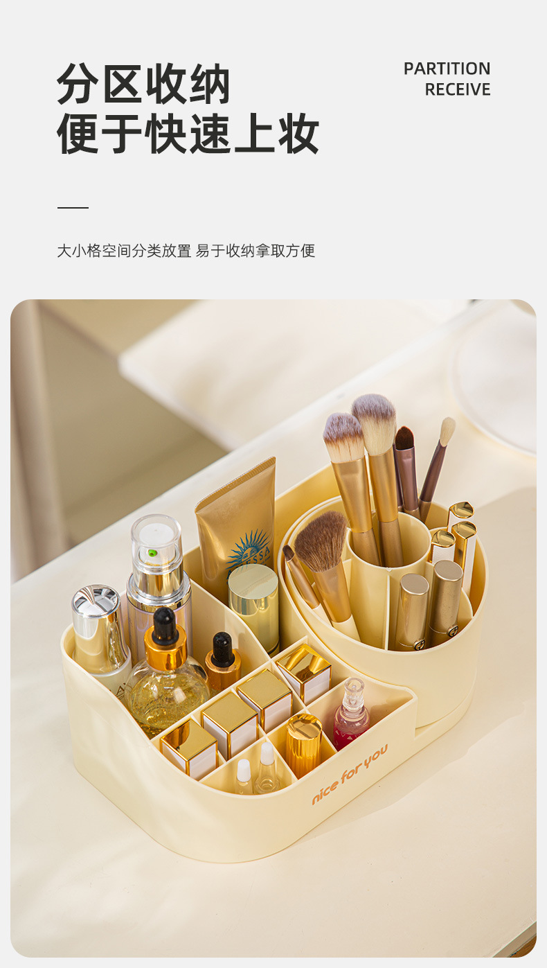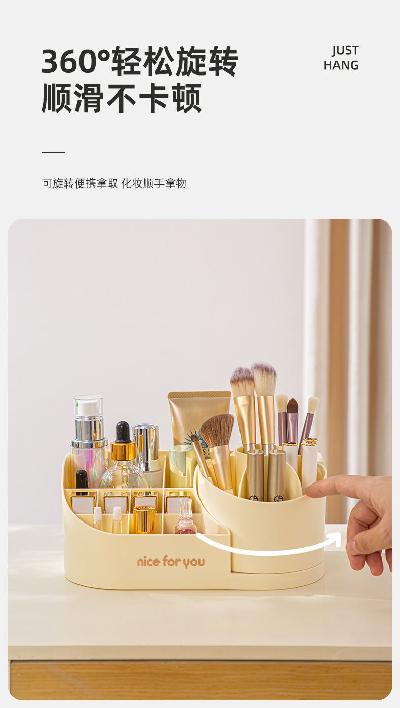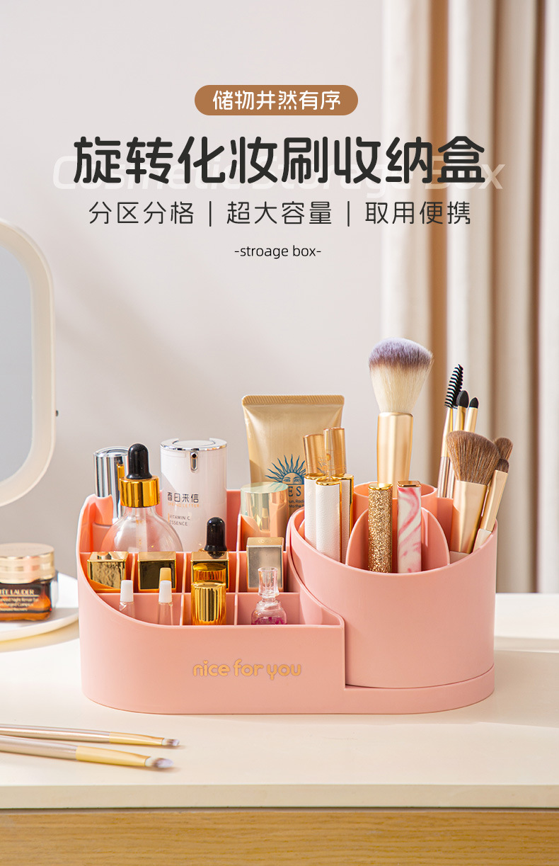 跨境旋转护肤品化妆品收纳盒高级感分格化妆盒桌面口红化妆刷桶筒