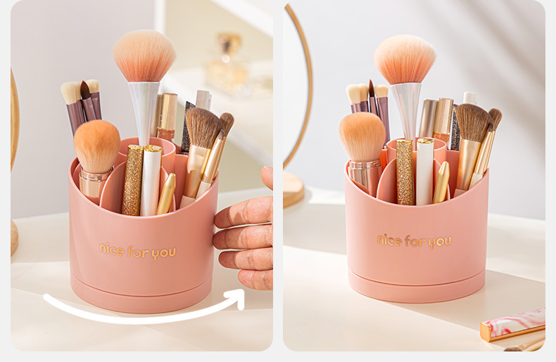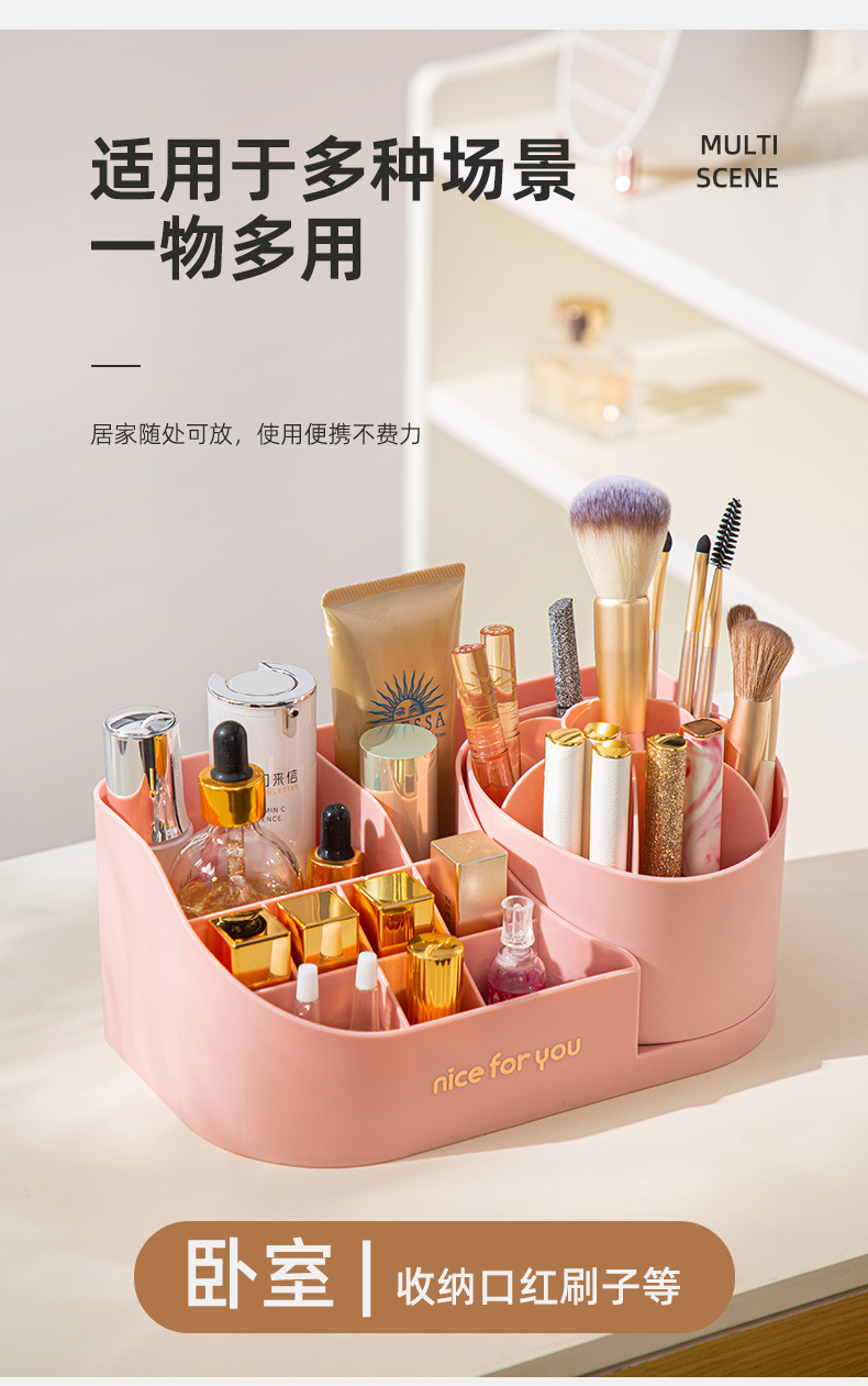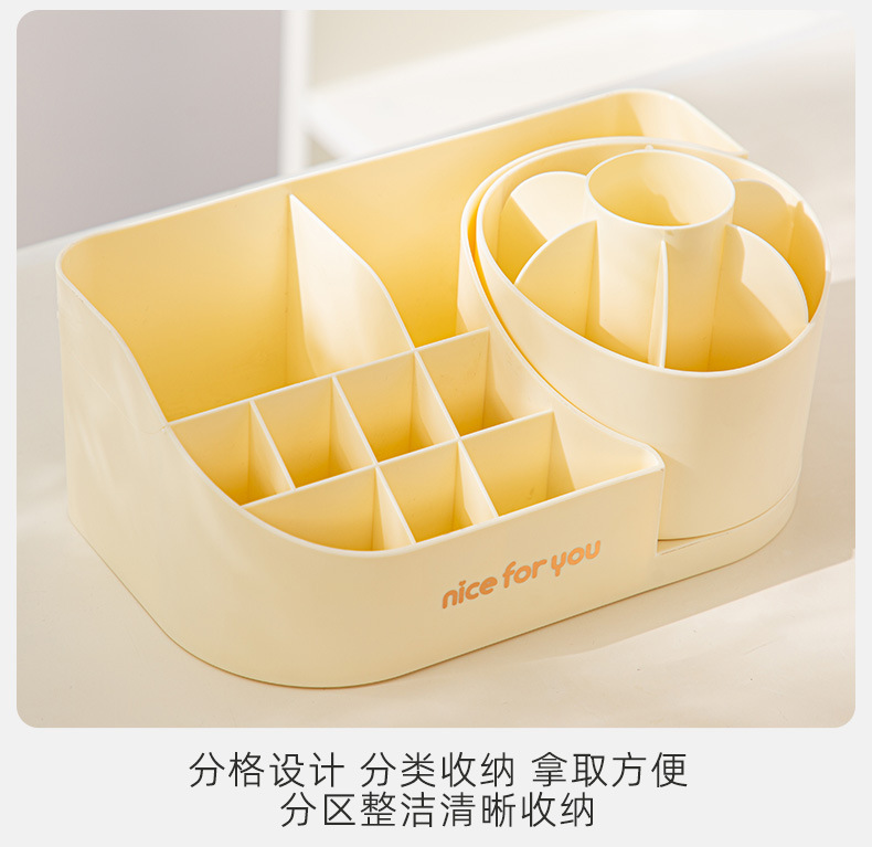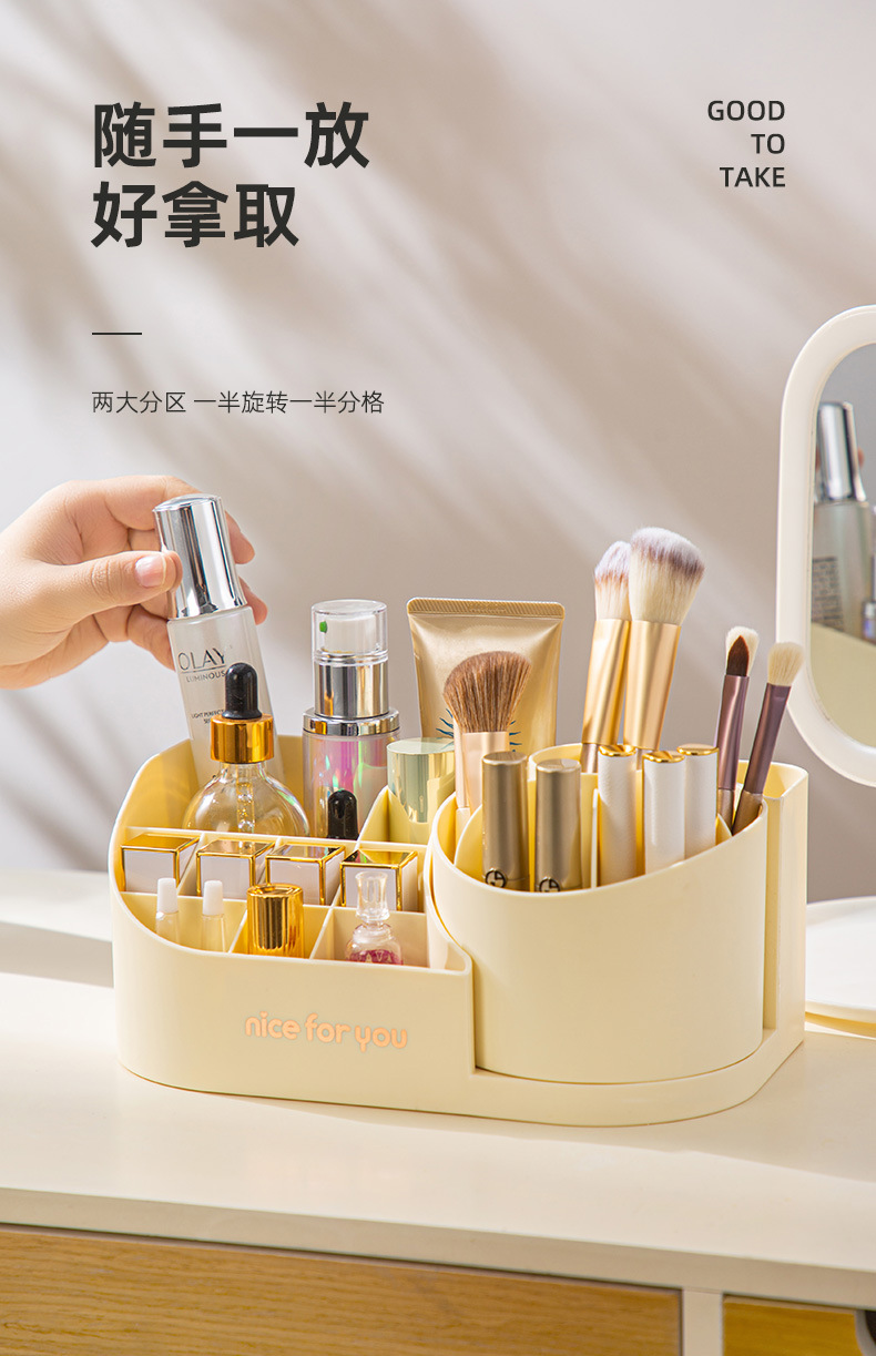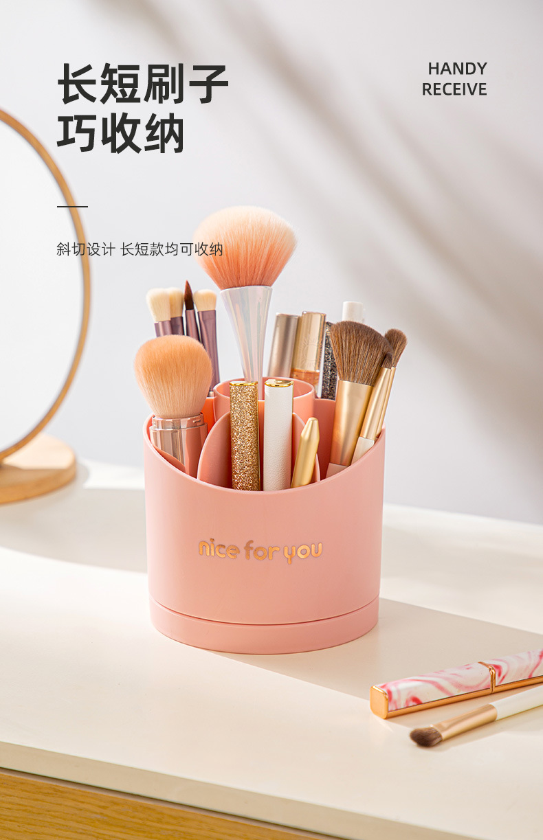 跨境旋转护肤品化妆品收纳盒高级感分格化妆盒桌面口红化妆刷桶筒