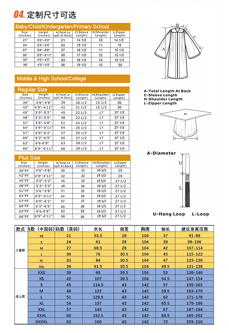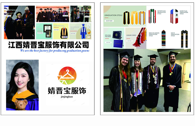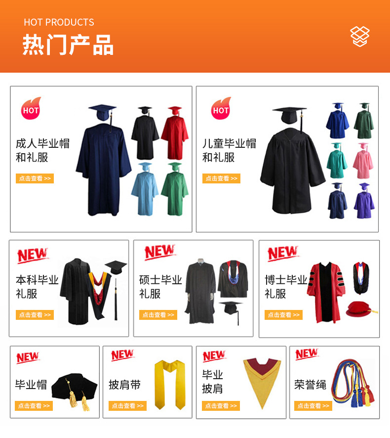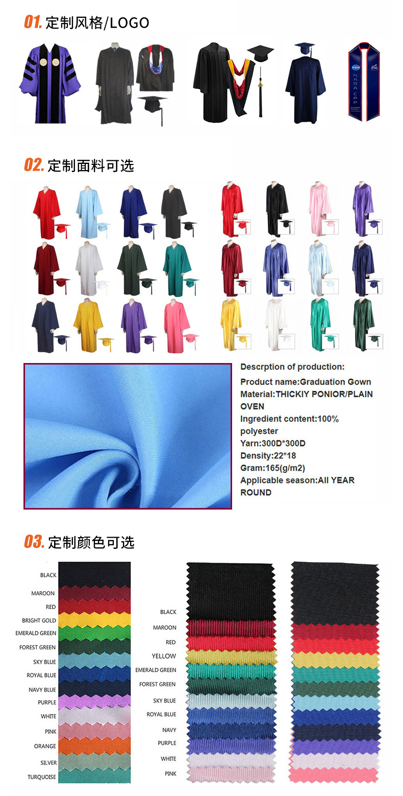 跨境欧美批发豪华版本科欧美学士服+帽子毕业礼服学位服