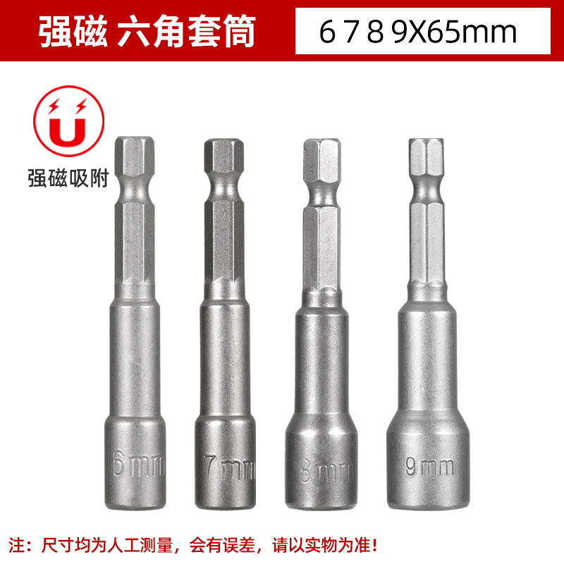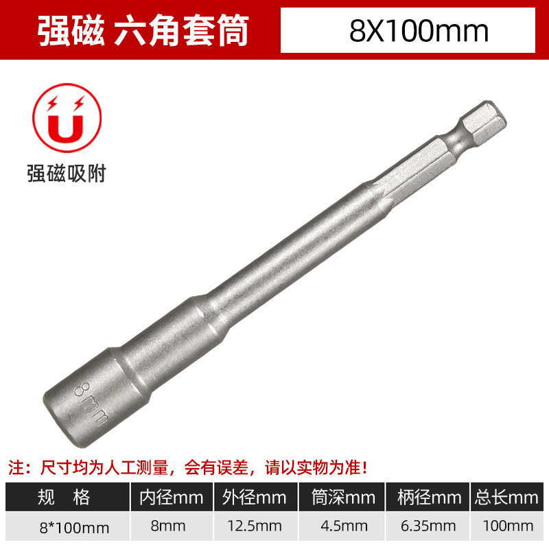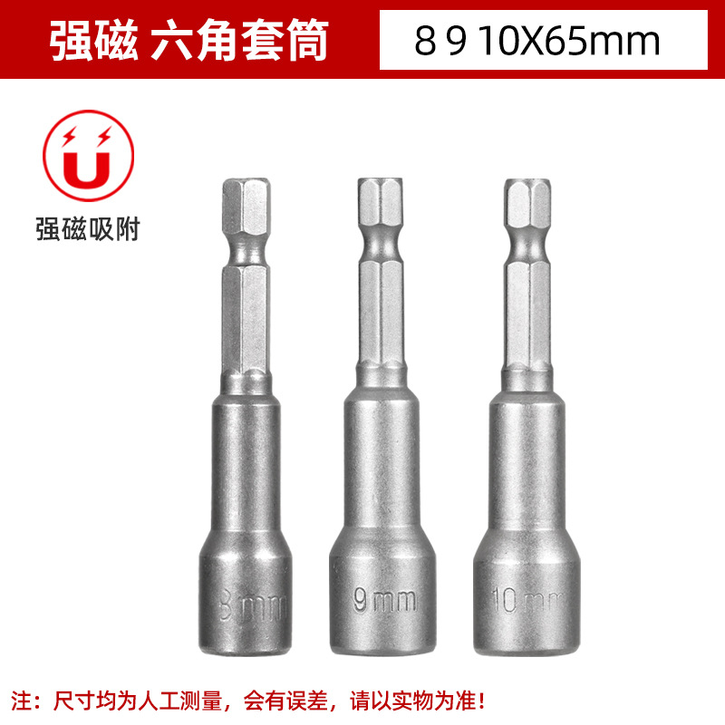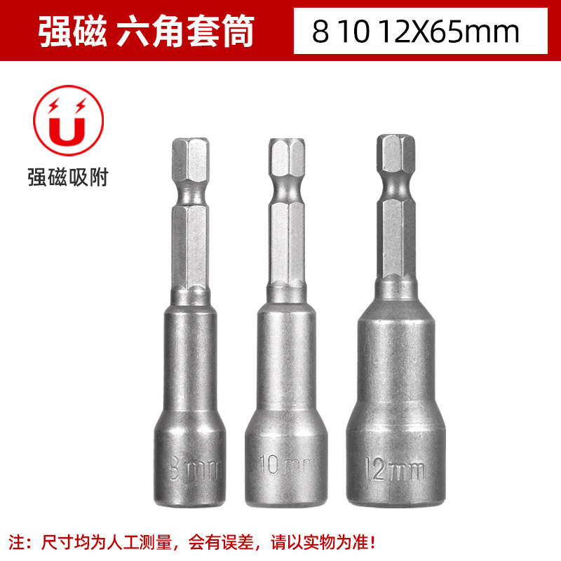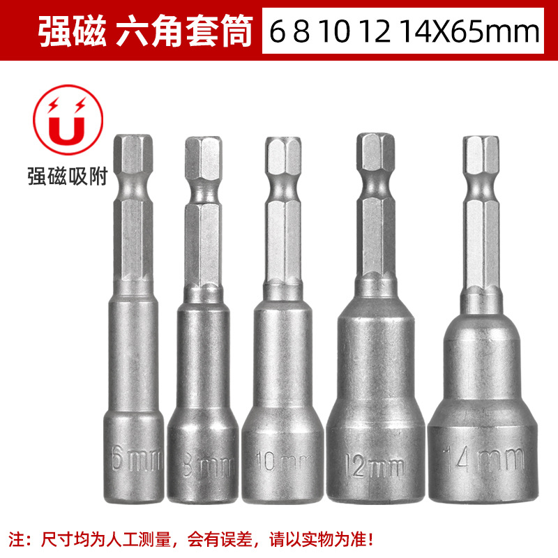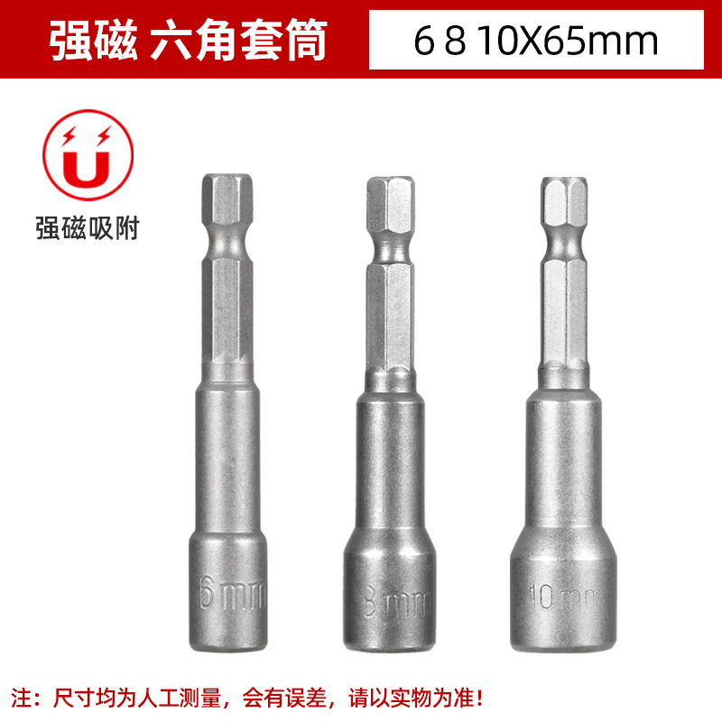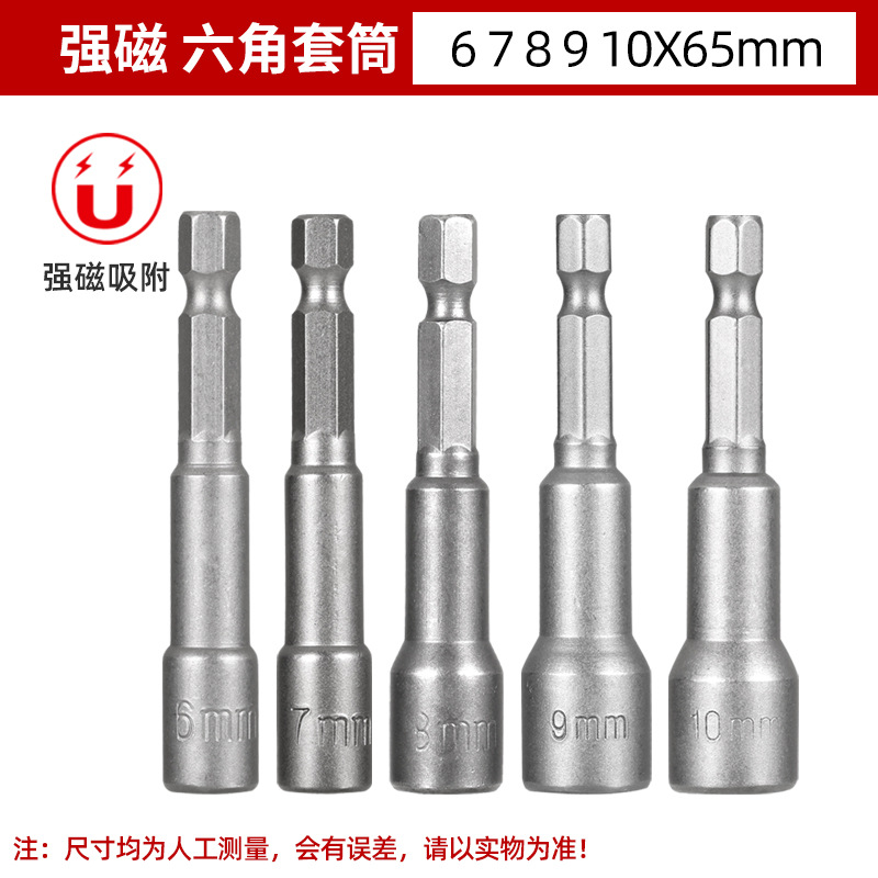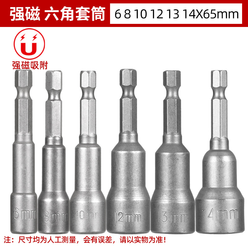 铬钒钢加长外六角强磁性套筒头气动起子头电动磁力内六角批头8mm