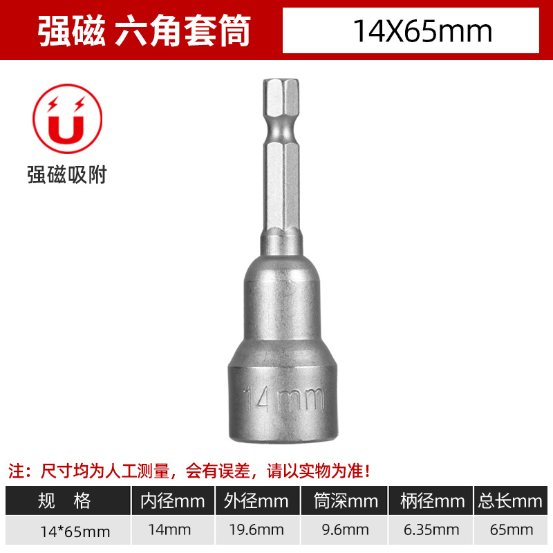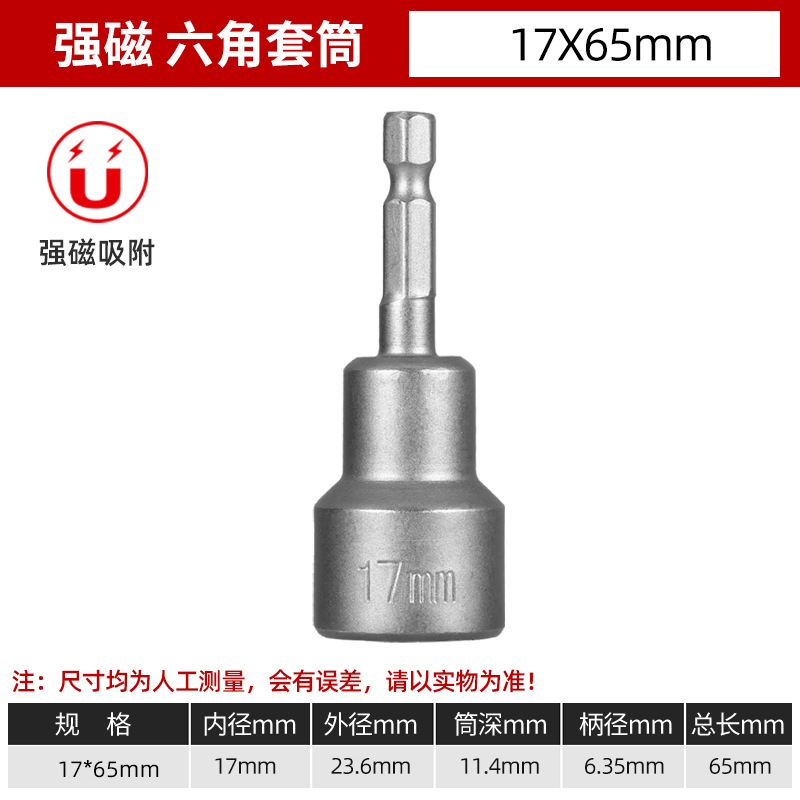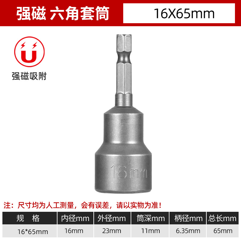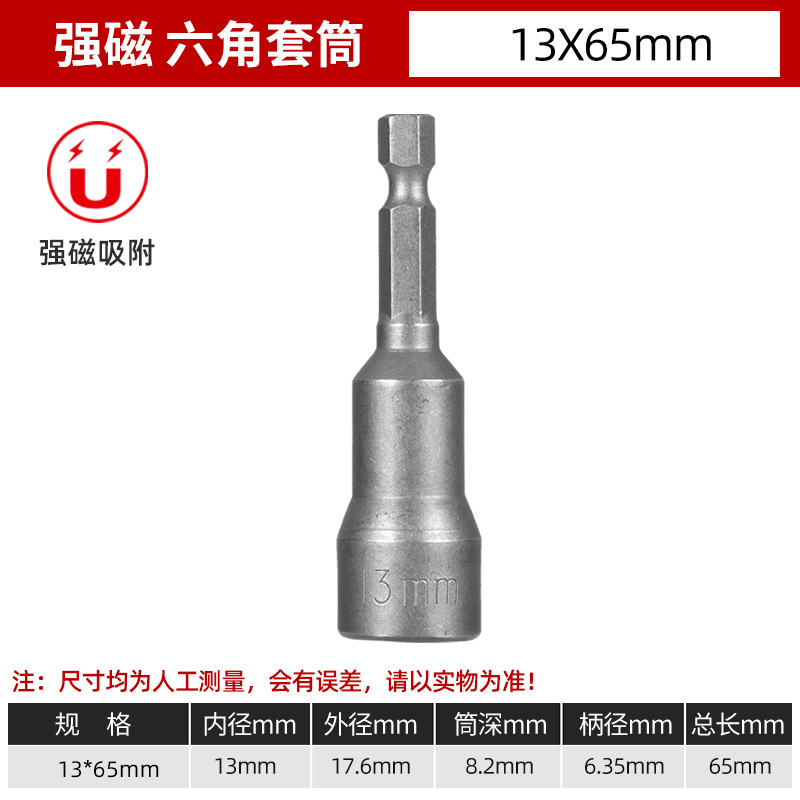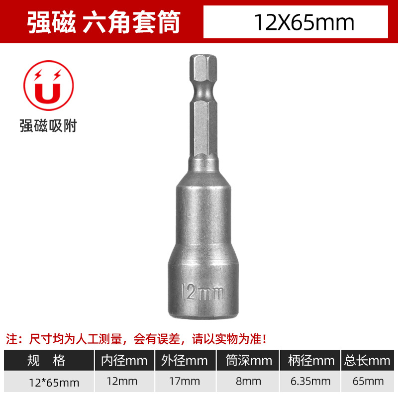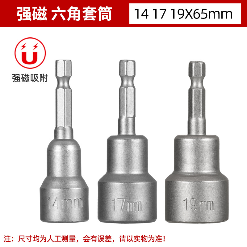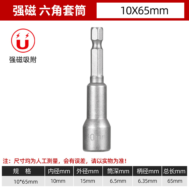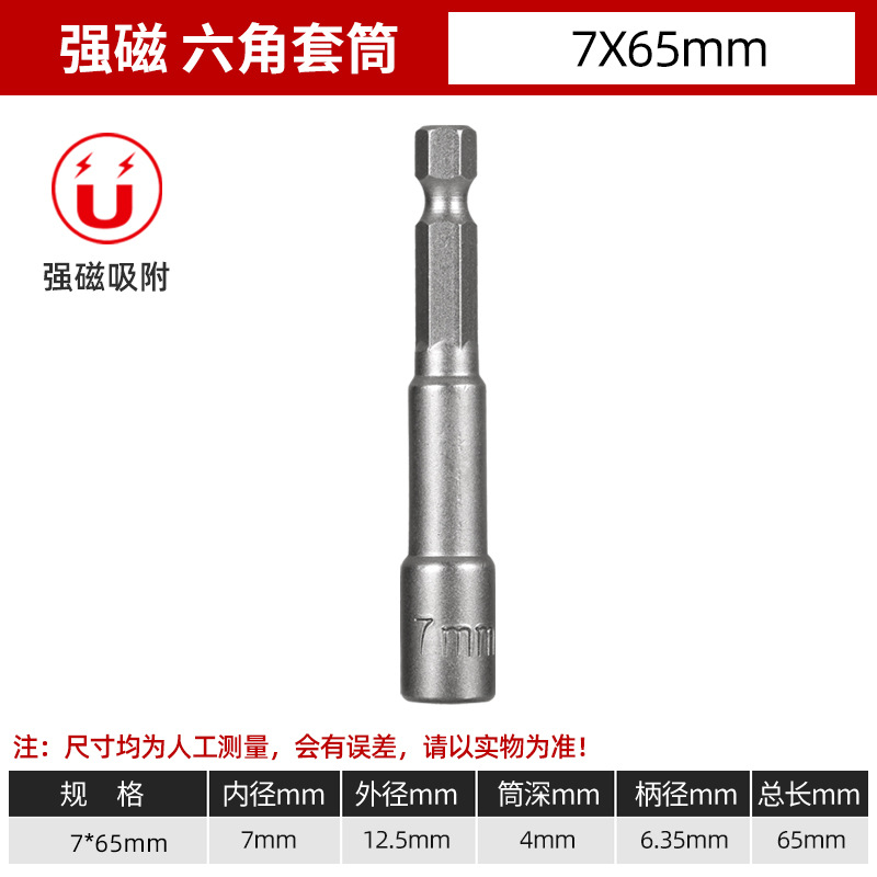 铬钒钢加长外六角强磁性套筒头气动起子头电动磁力内六角批头8mm