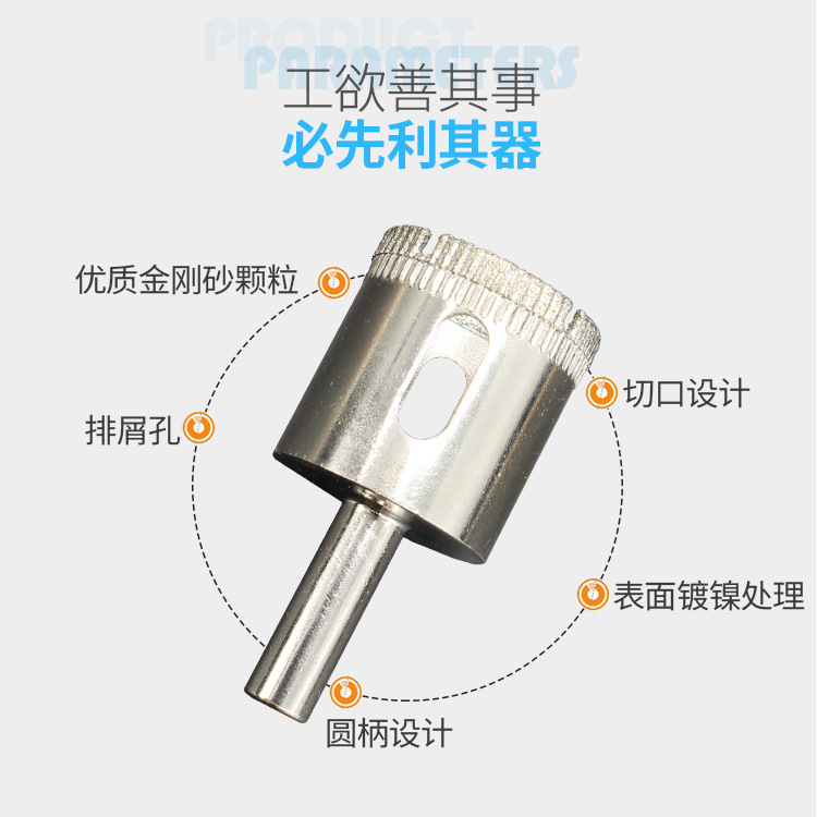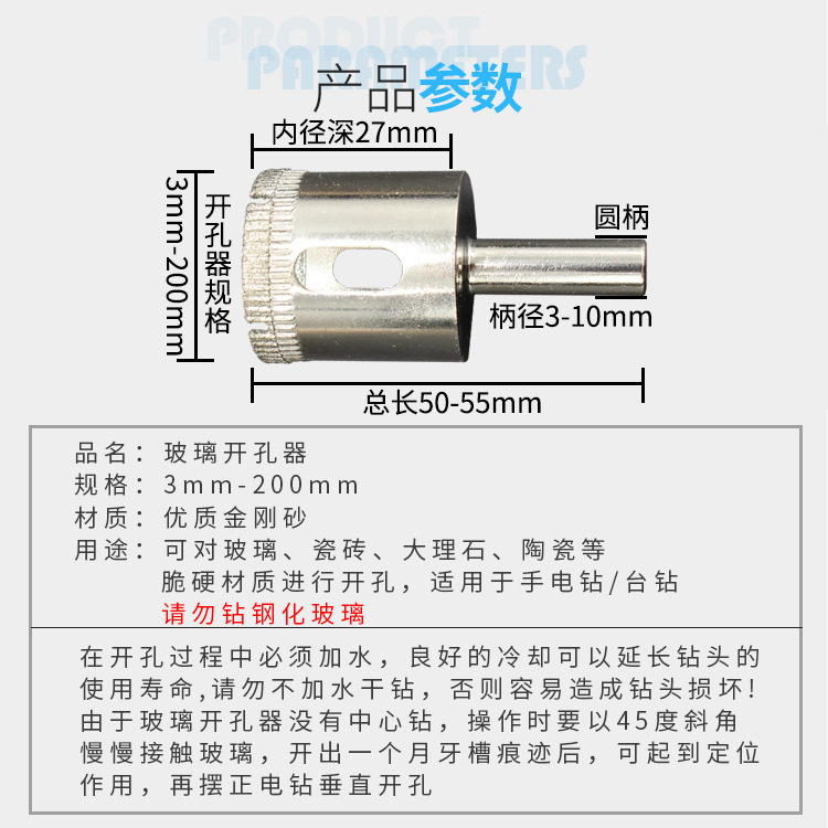 玻璃开孔器钻头金钢砂瓷砖陶瓷大理石扩孔器6mm佛珠打磨修圆工具