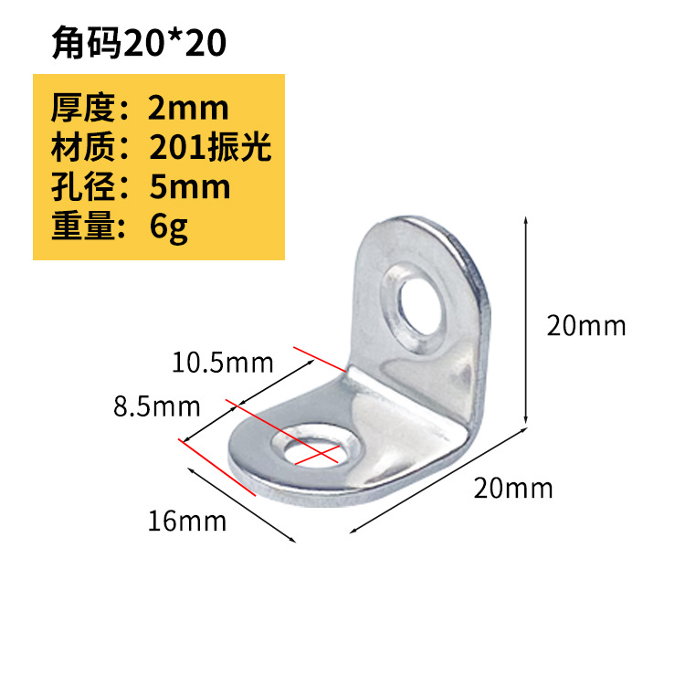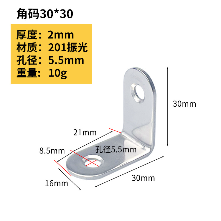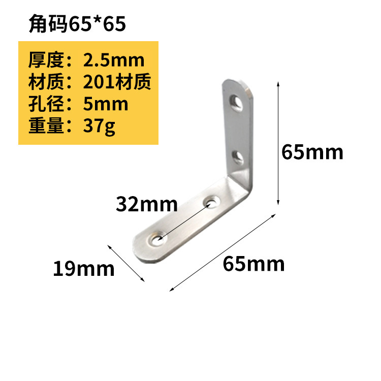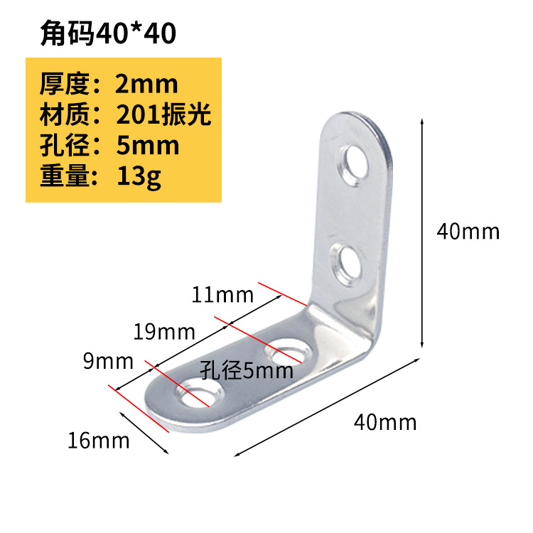 多规格家具配件不锈钢角码 L型固定连接件 直角90度层板托加厚201