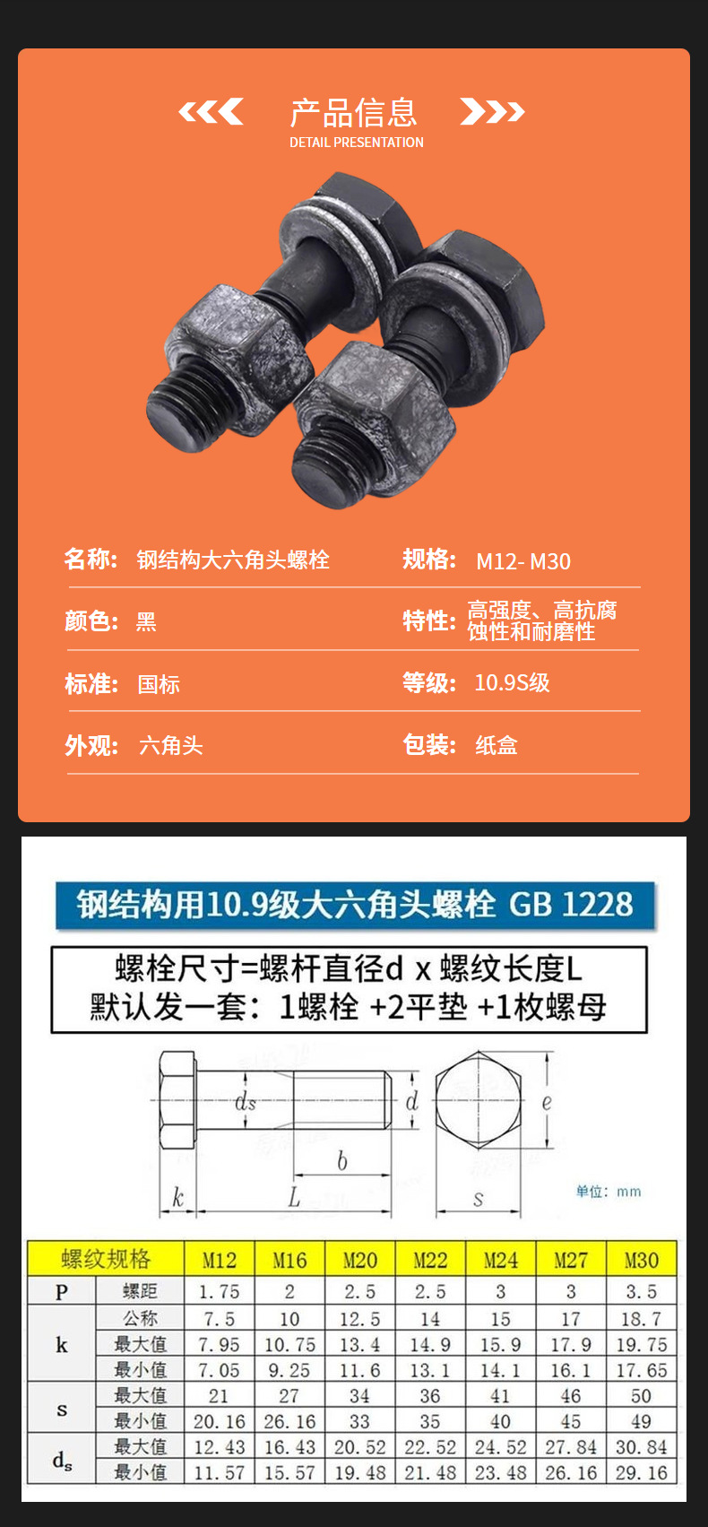 现货钢结构螺栓 钢结构大六角螺栓 10.9级高强度螺栓 钢结构螺栓