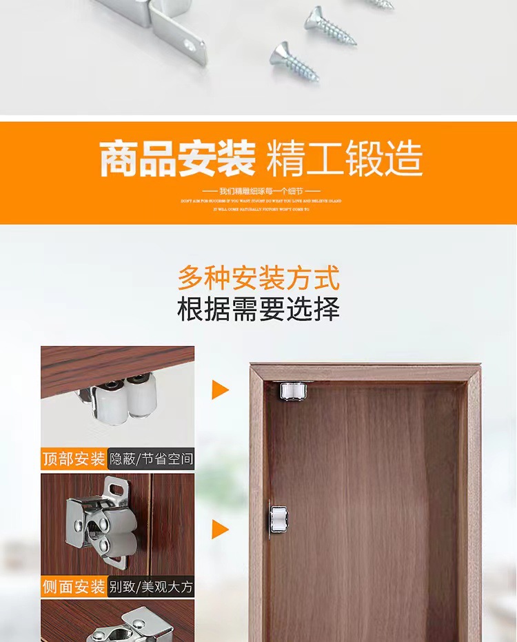 按压家居衣柜门碰珠磁力门吸双轮弹簧卡扣固定锁扣矮脚橱柜门夹扣