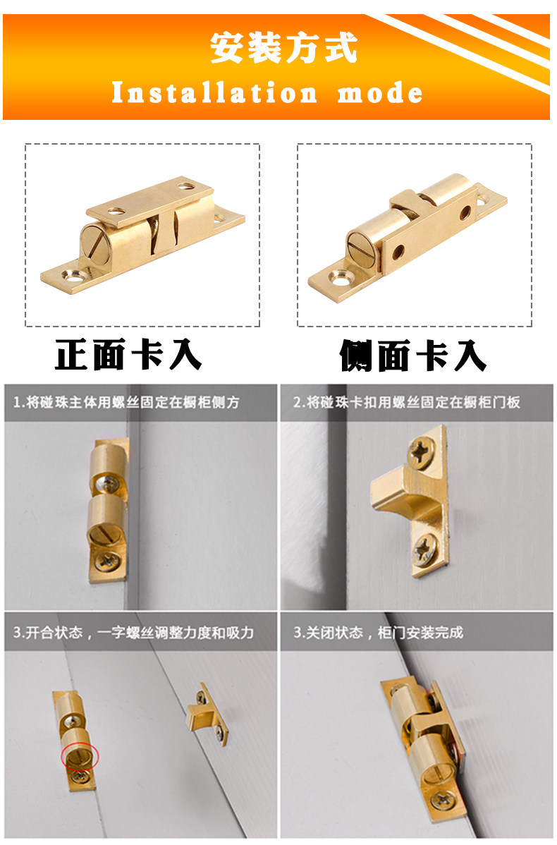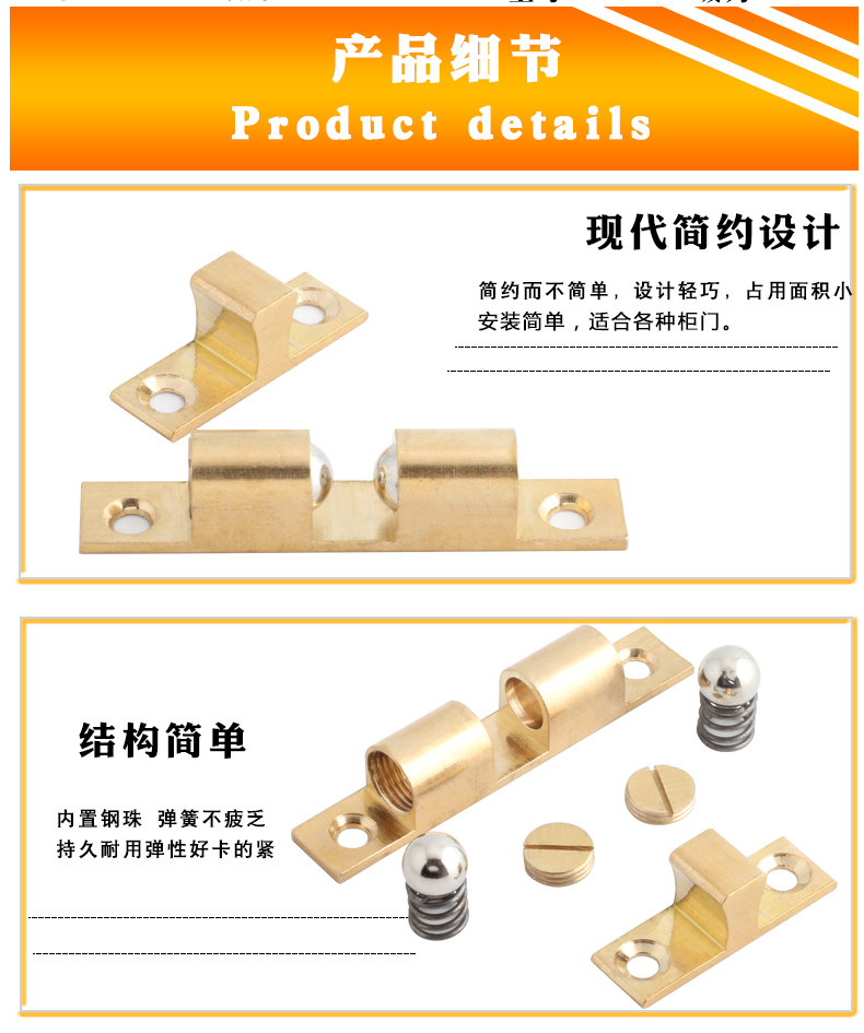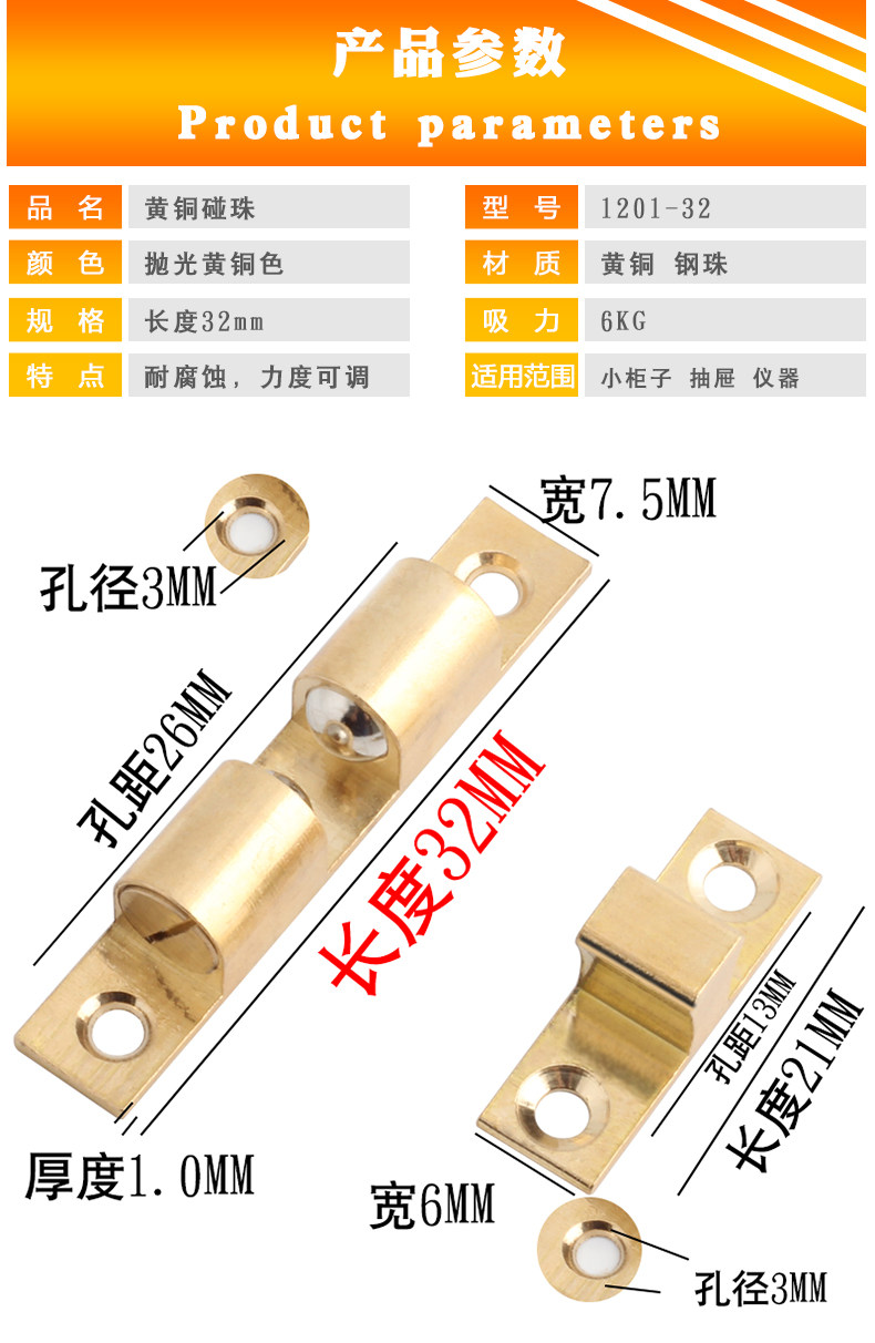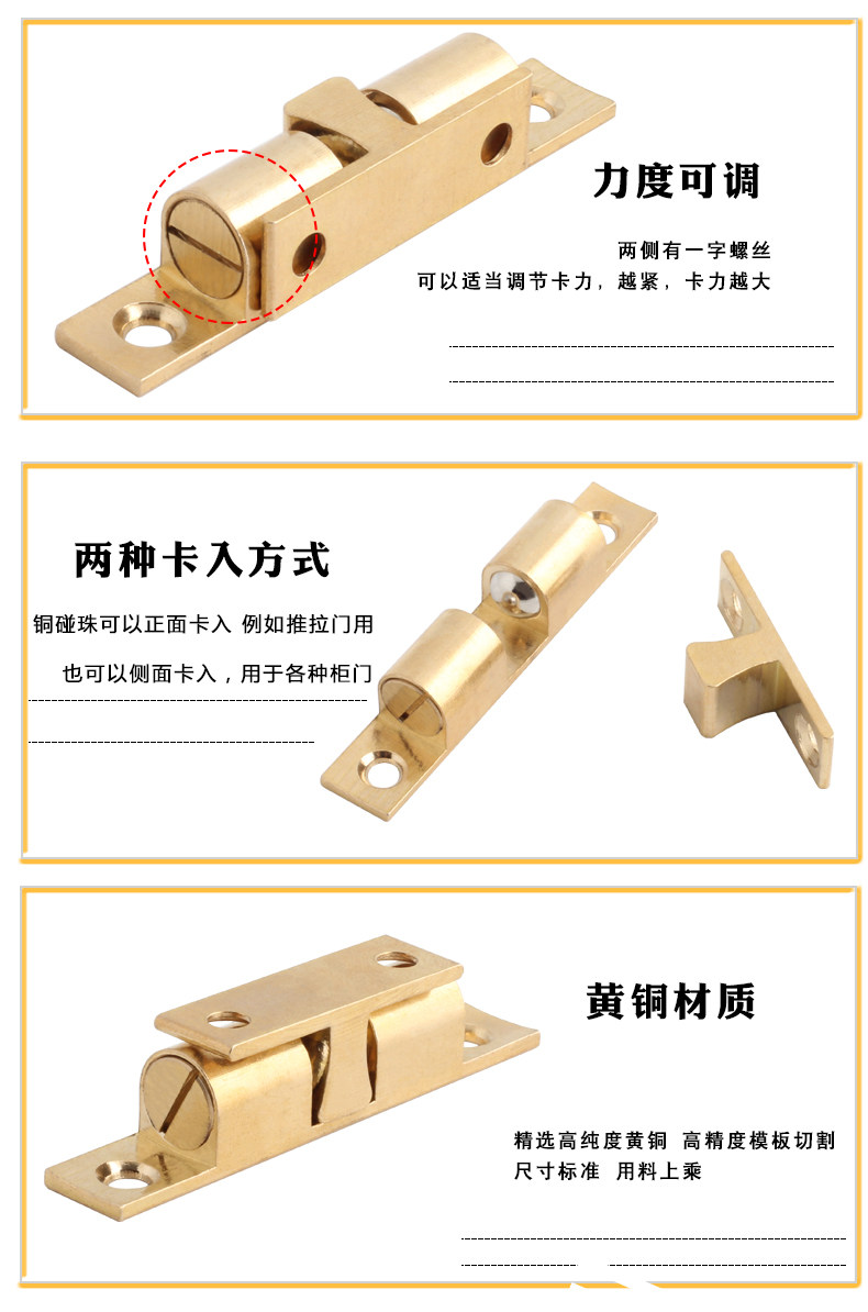 柜门铜碰珠抽屉卡扣橱衣柜门卡扣锁卡入式红木柜子黄铜开关扣32mm