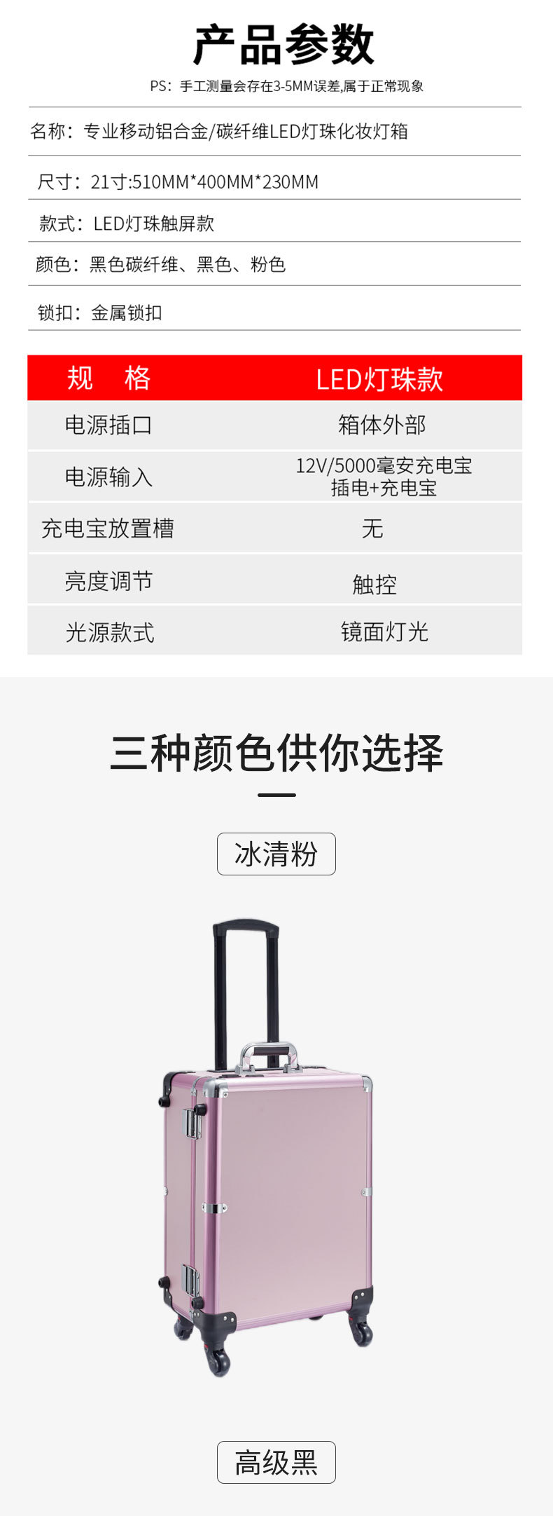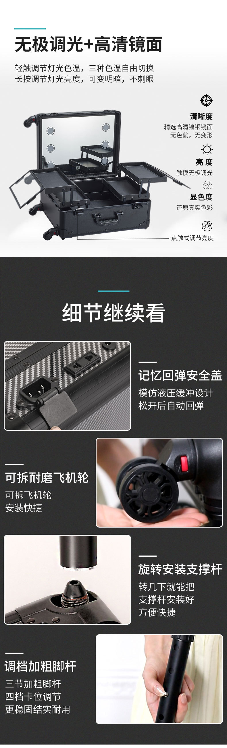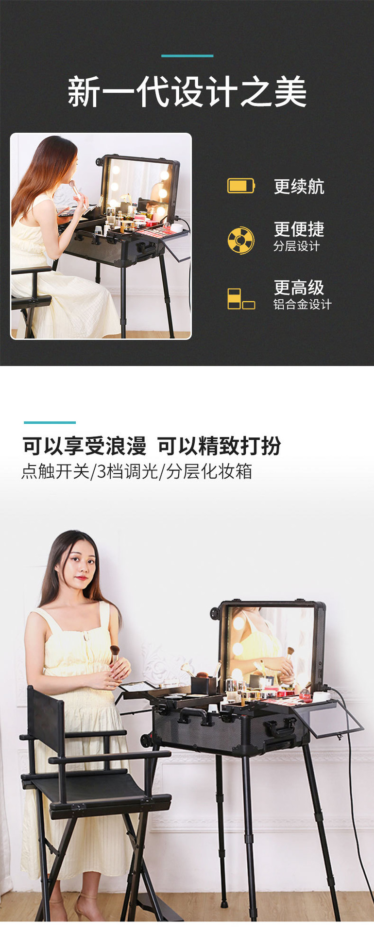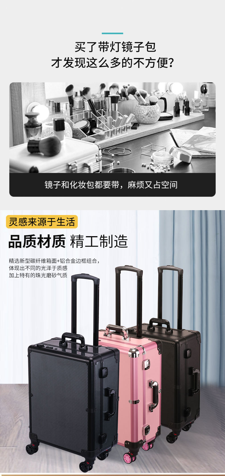 22寸大容量专业带灯拉杆化妆箱美甲美妆收纳箱彩妆跟妆师行李箱