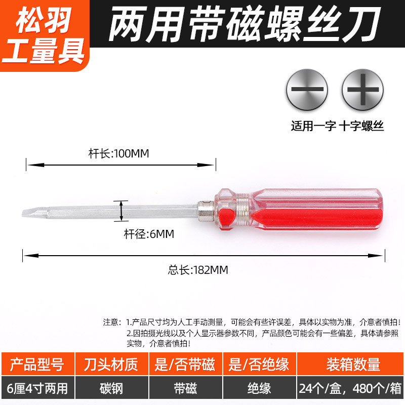 水晶柄萝卜头螺丝刀一字十字两用带磁螺丝批碳钢改锥梅花起子批发