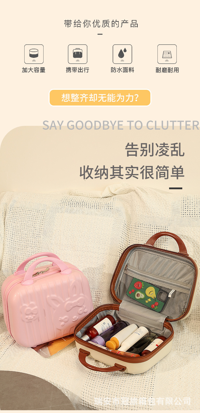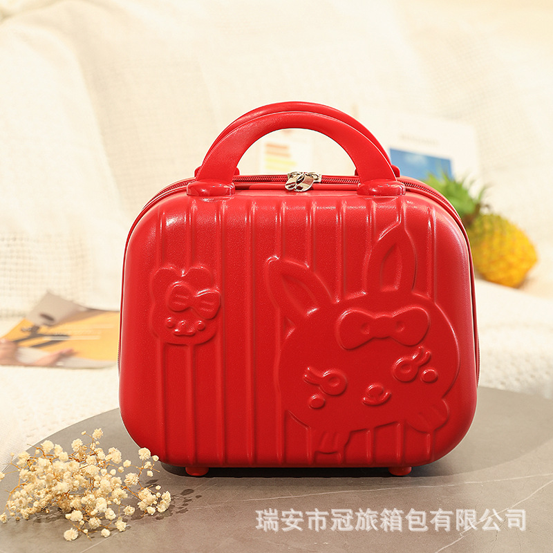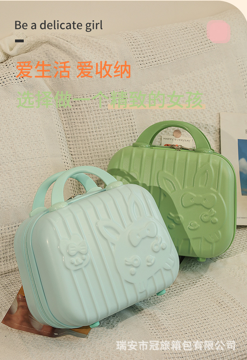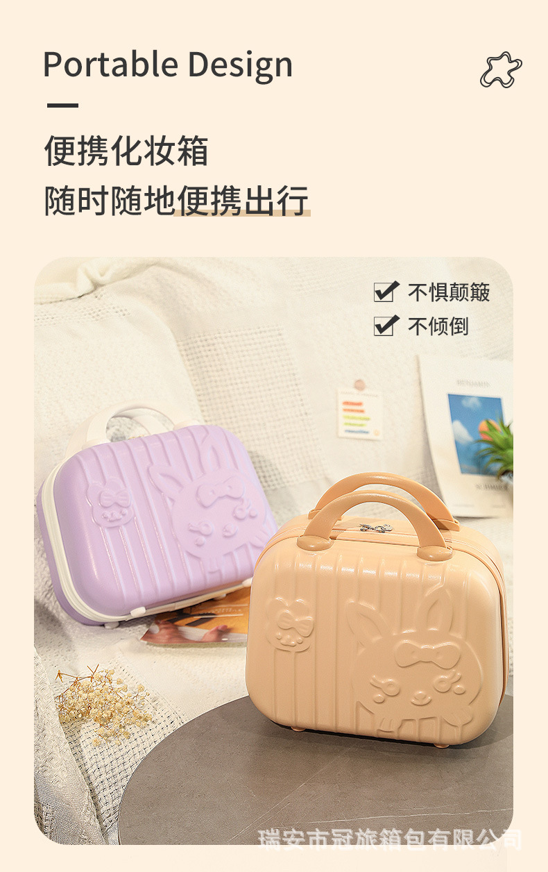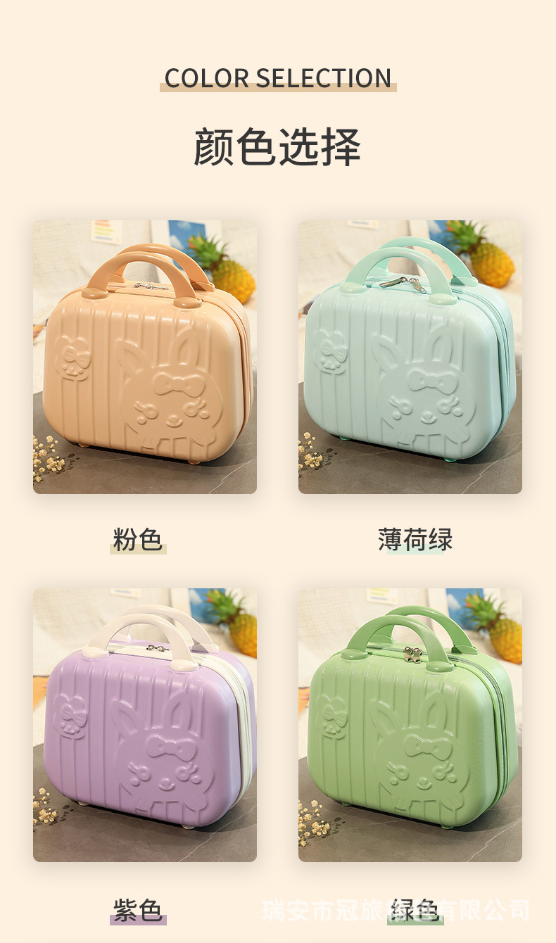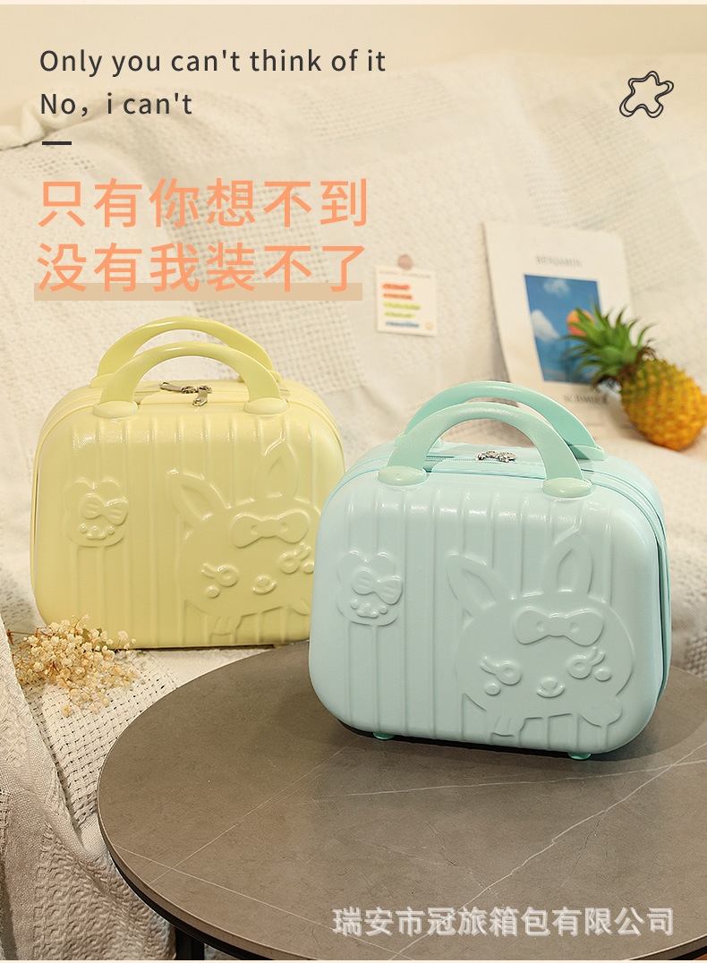 新款兔子手提化妆箱14寸儿童卡通伴手礼包装糖果色手提箱