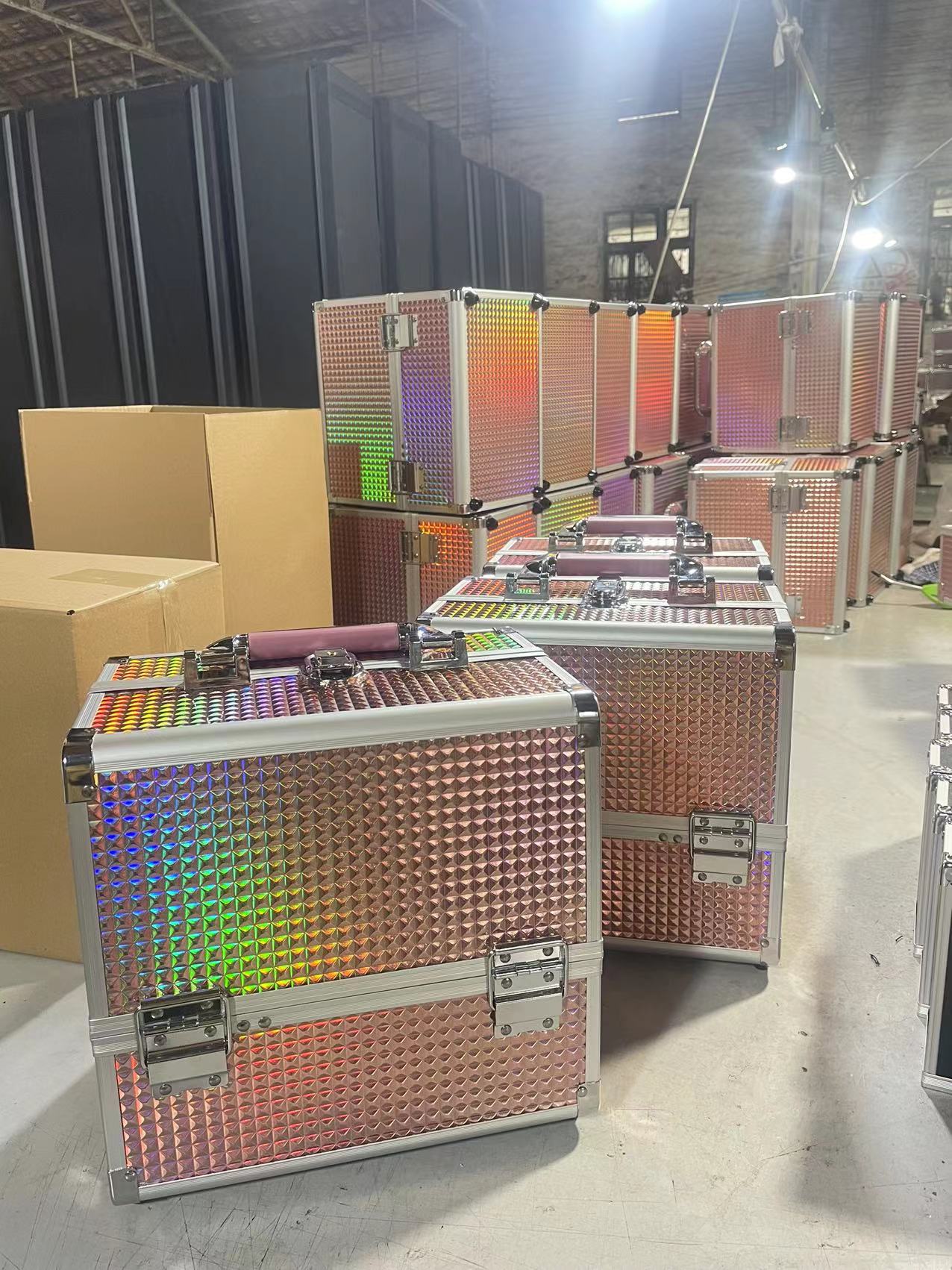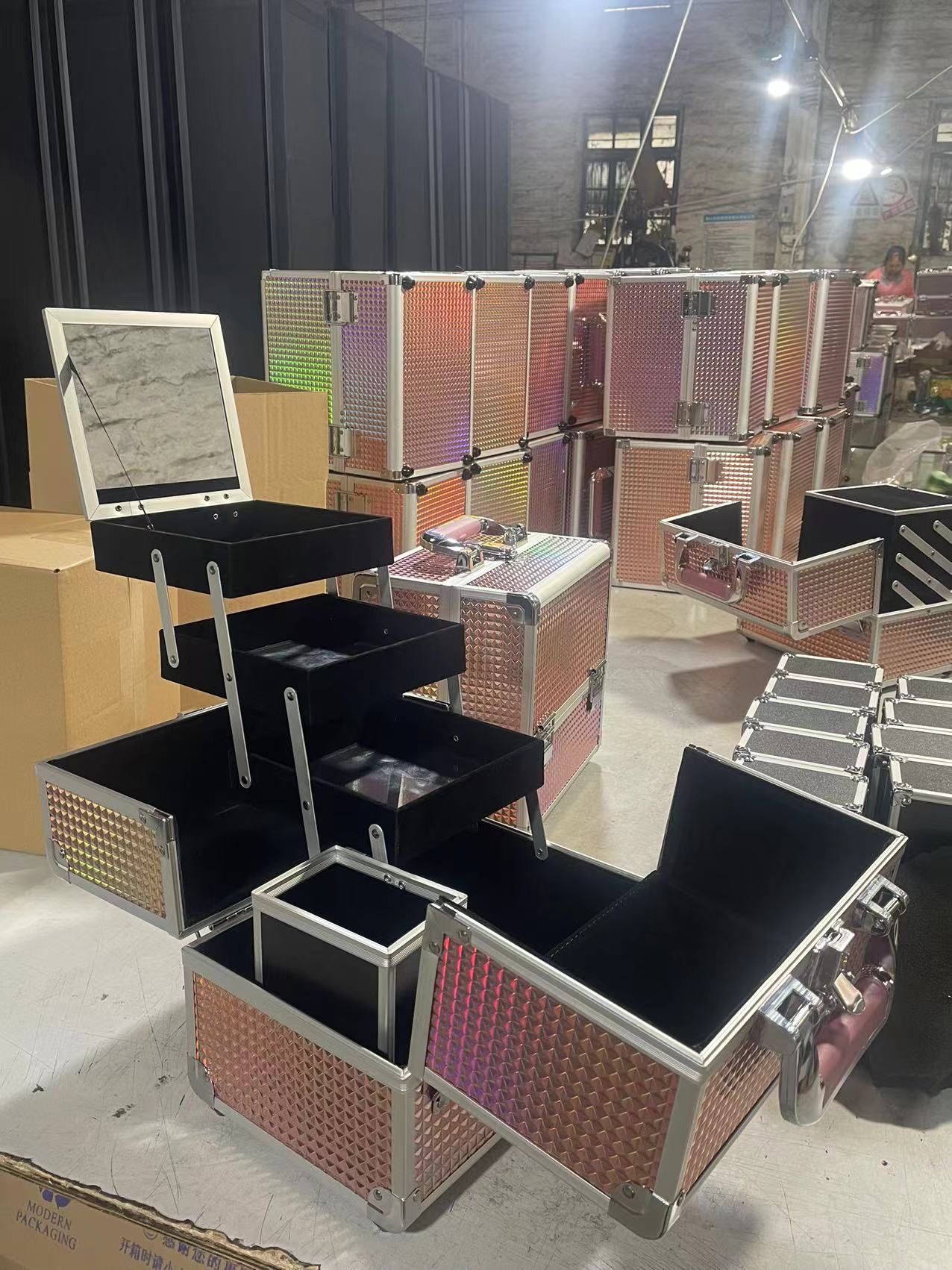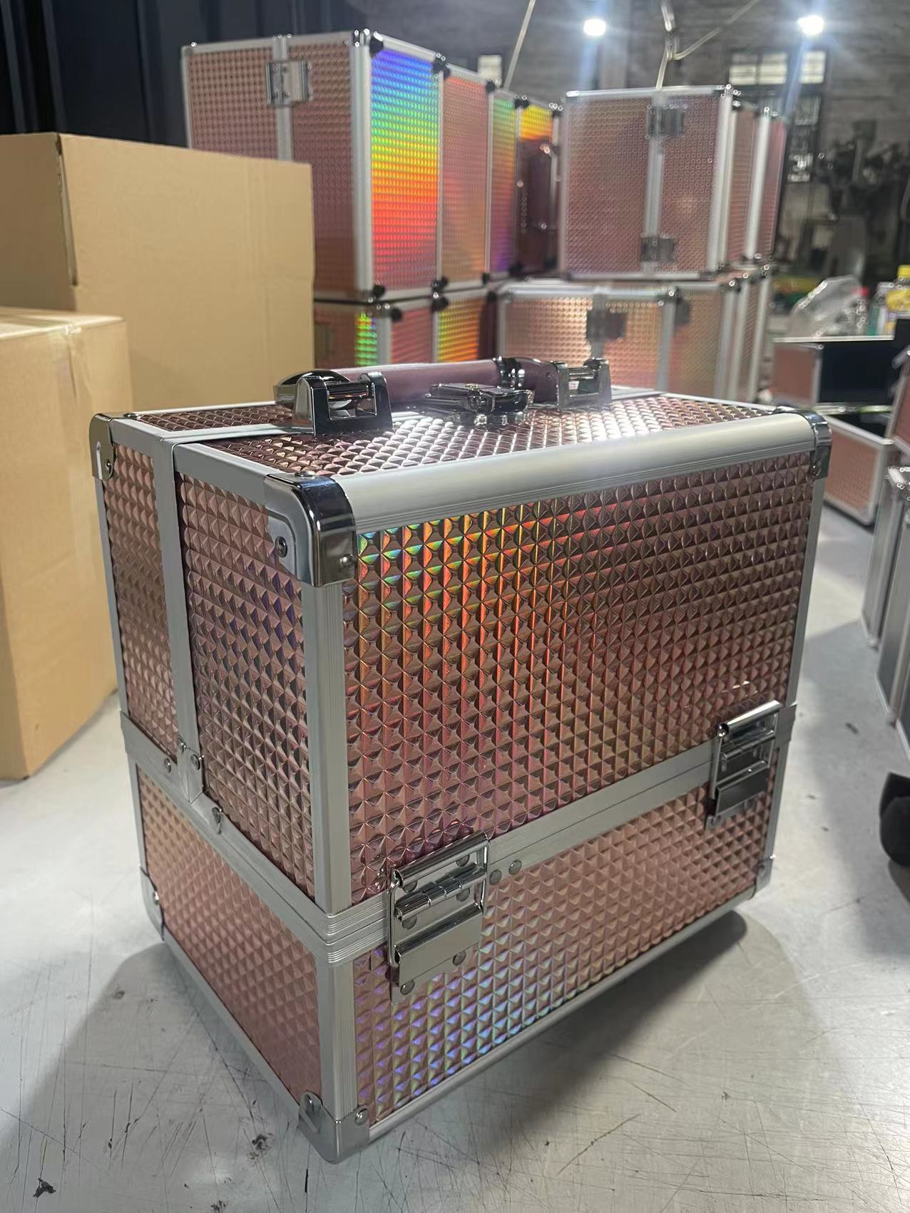 跨境热销七彩小水立方化妆箱三个托盘化妆品收纳工具箱带镜子