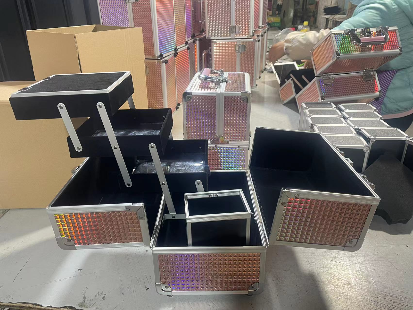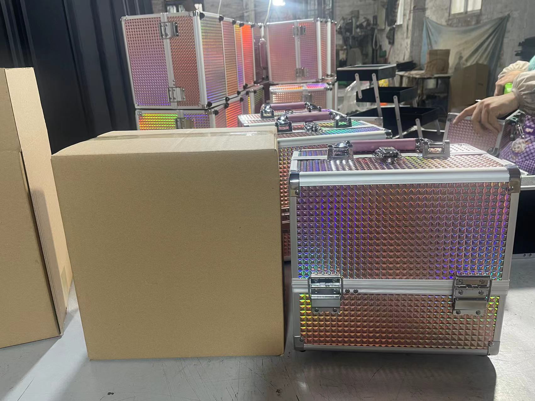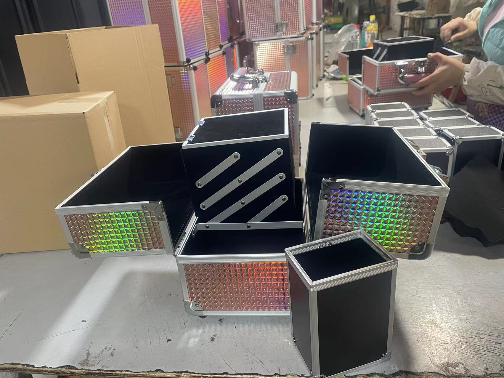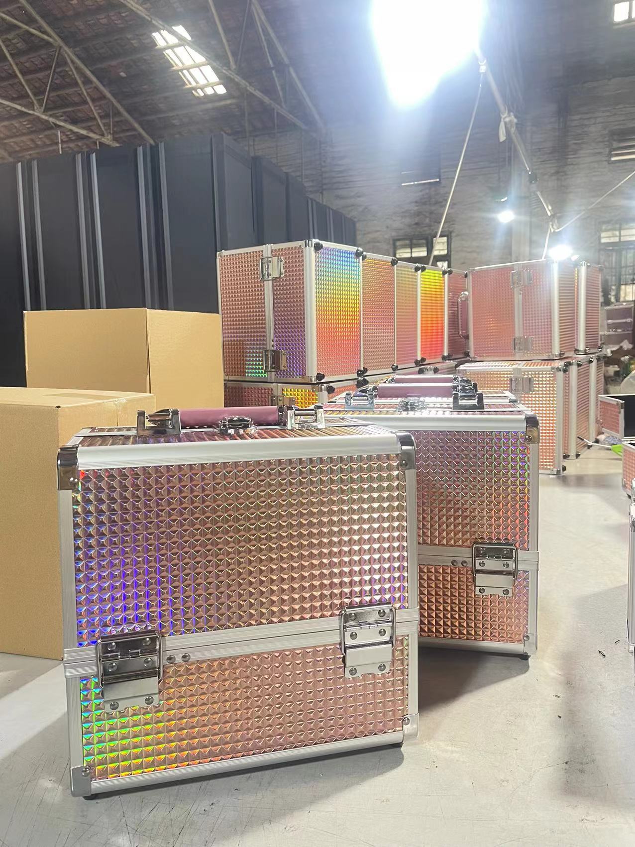 跨境热销七彩小水立方化妆箱三个托盘化妆品收纳工具箱带镜子