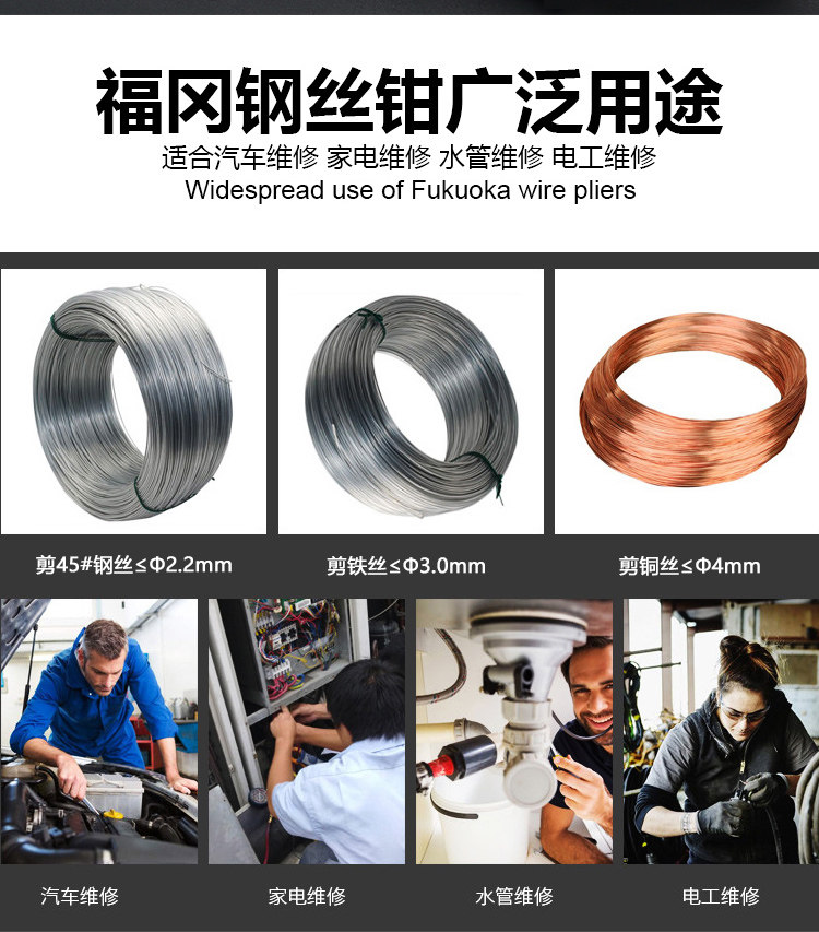 日本福冈老虎钳钢丝钳工业级德国款万用多功能进口6寸8寸老虎钳子