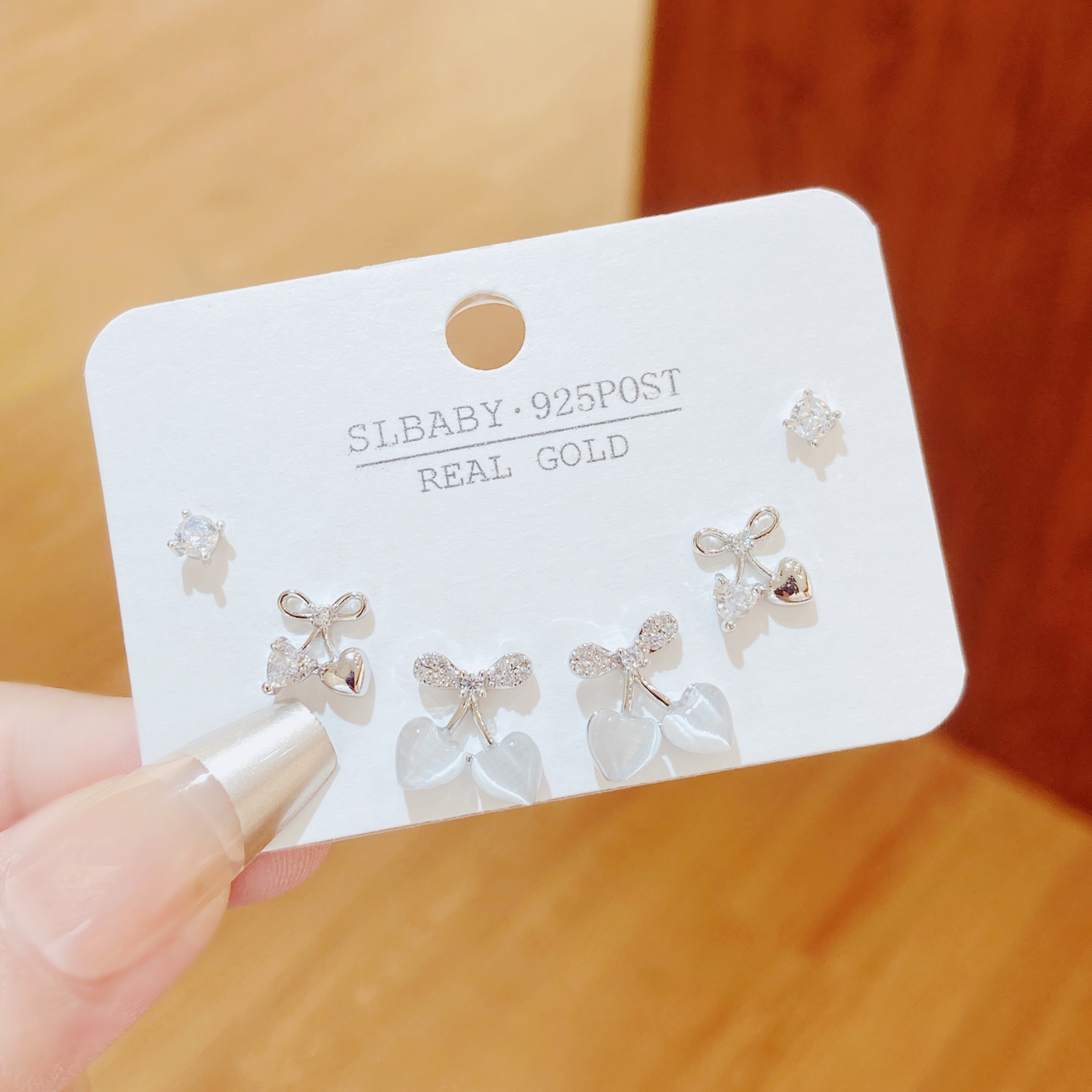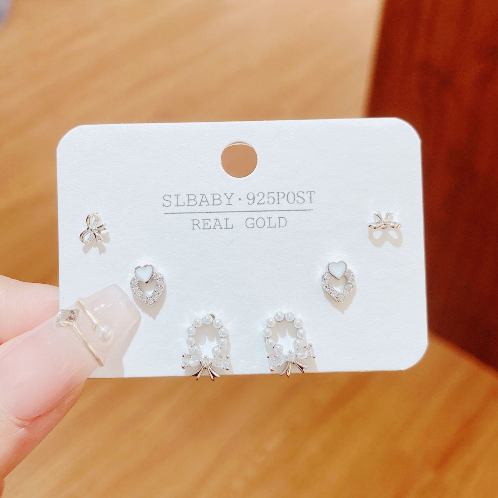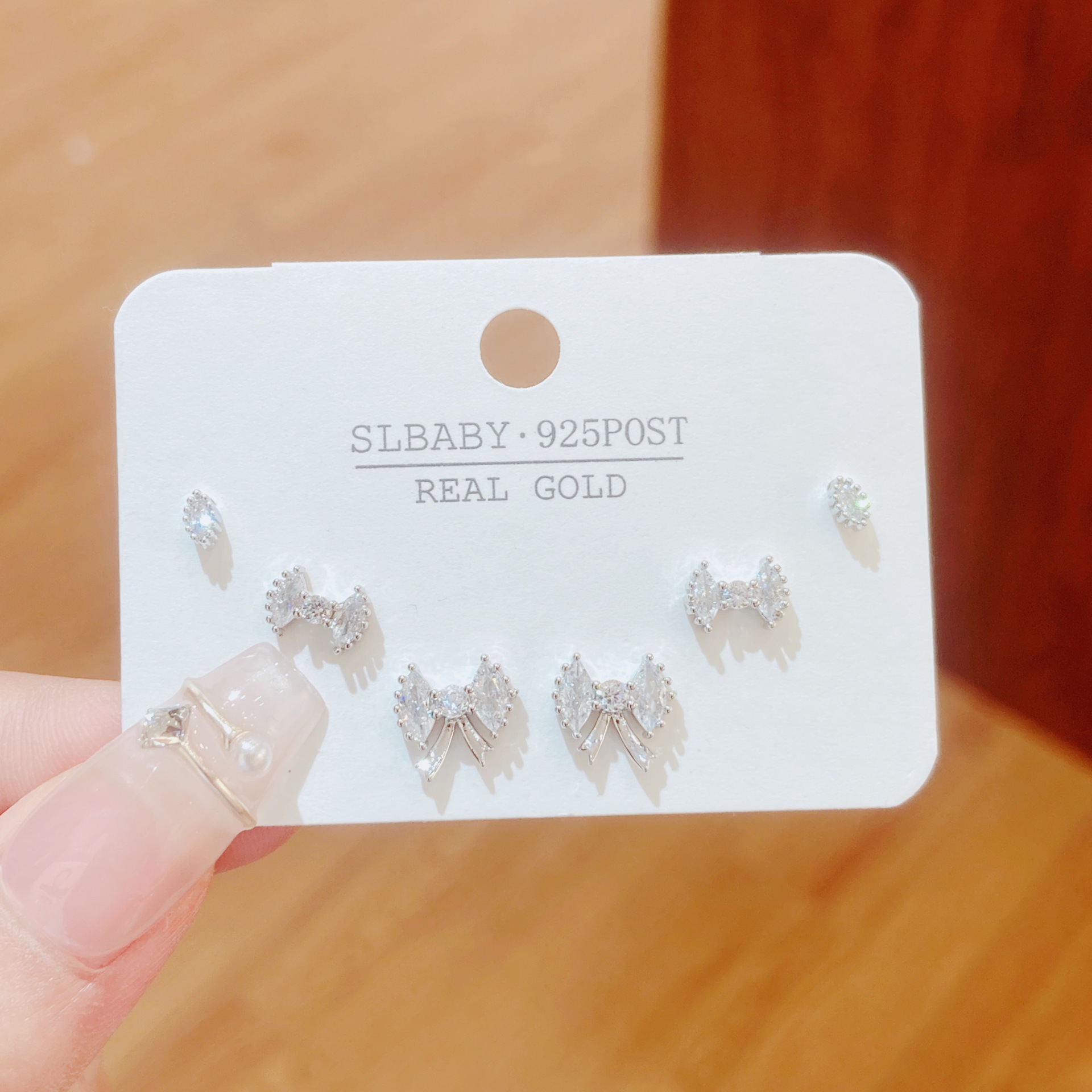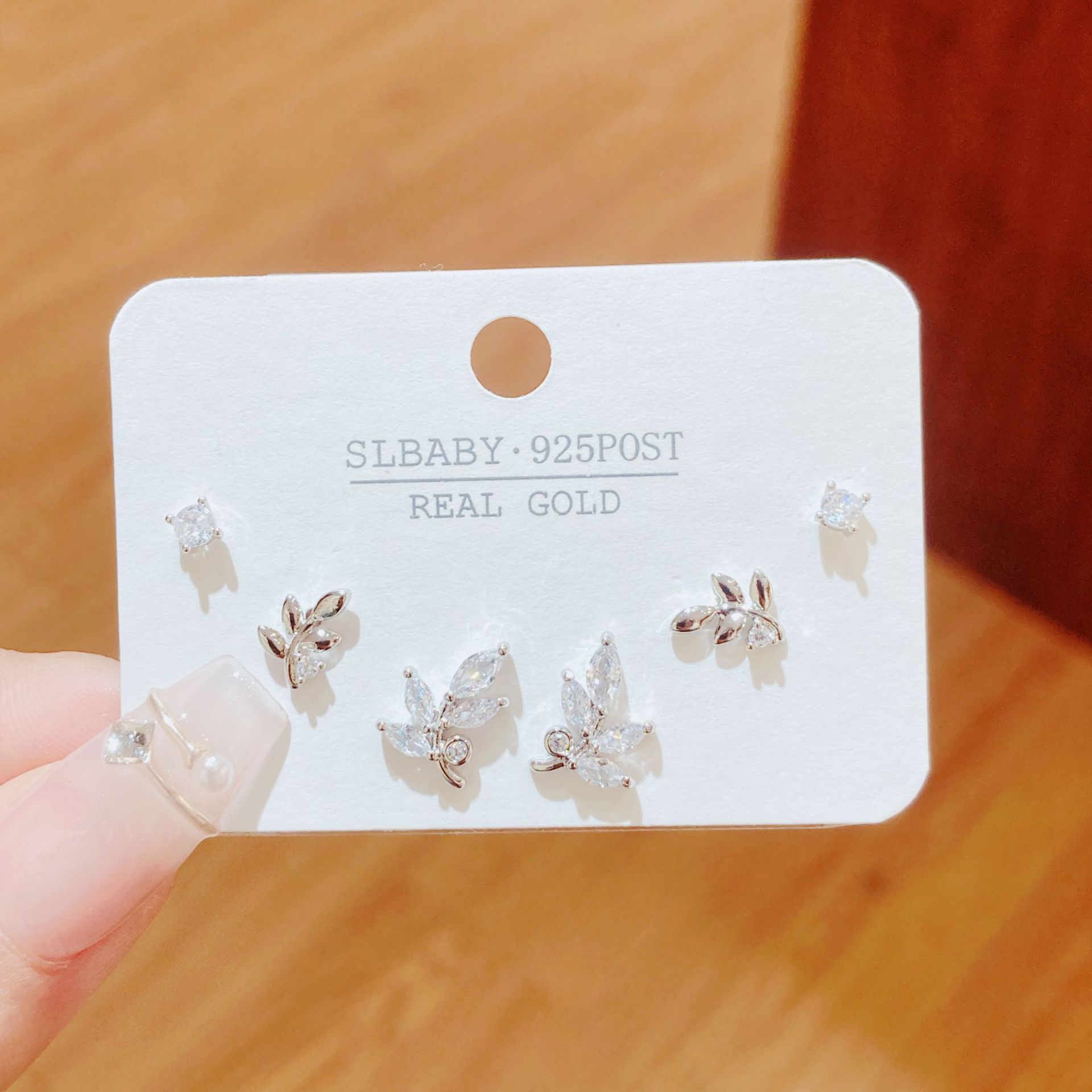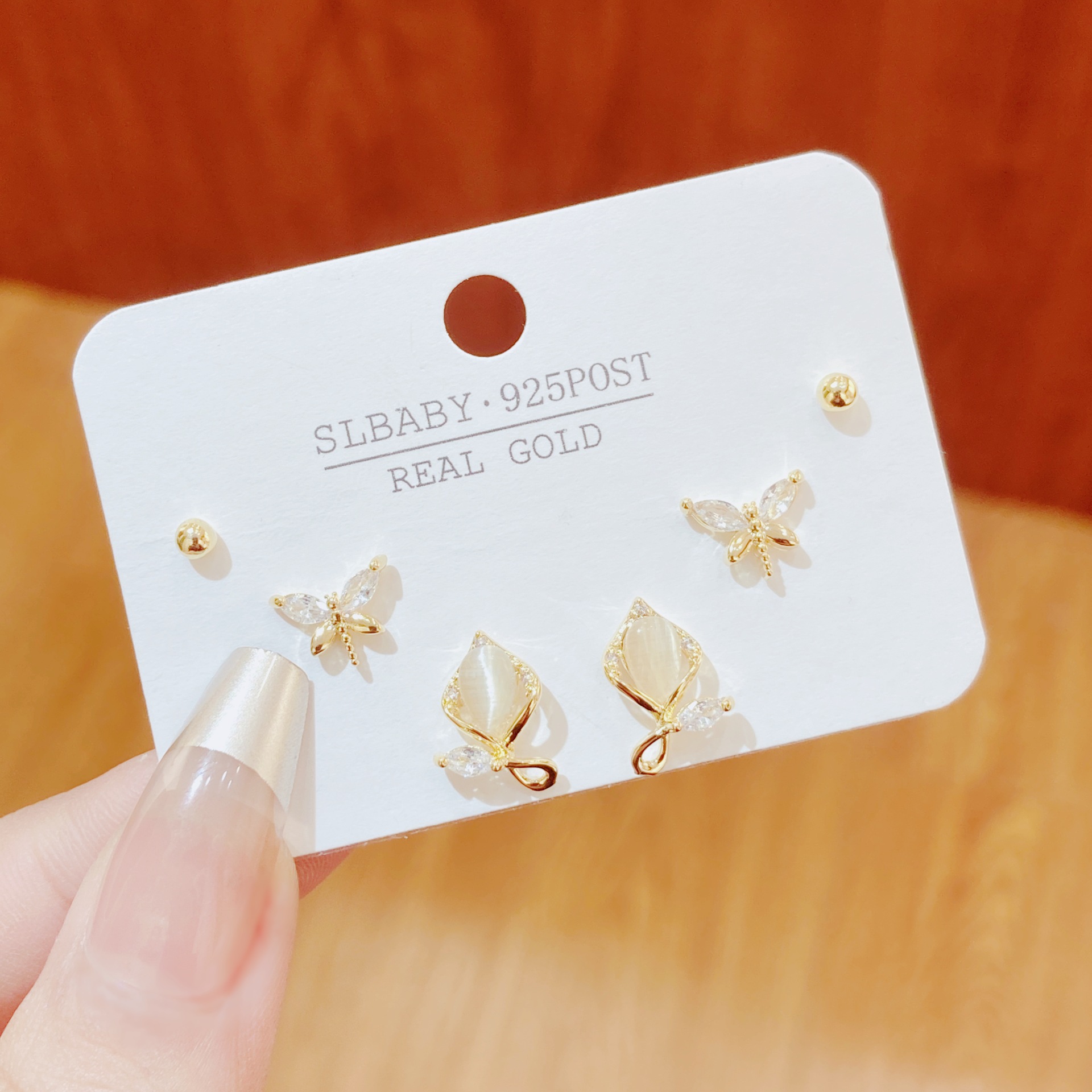 新款蝴蝶耳钉套装银针耳饰简约一周三对韩国高级感纯银耳环女批发