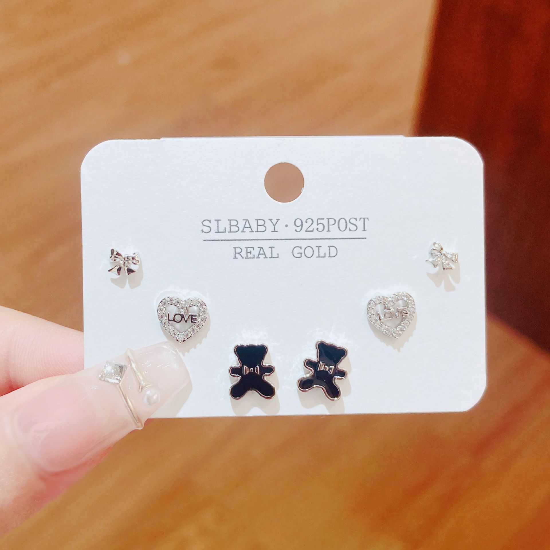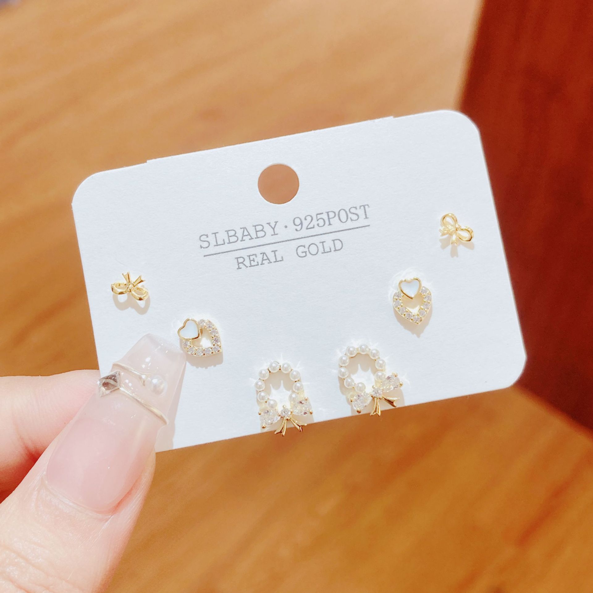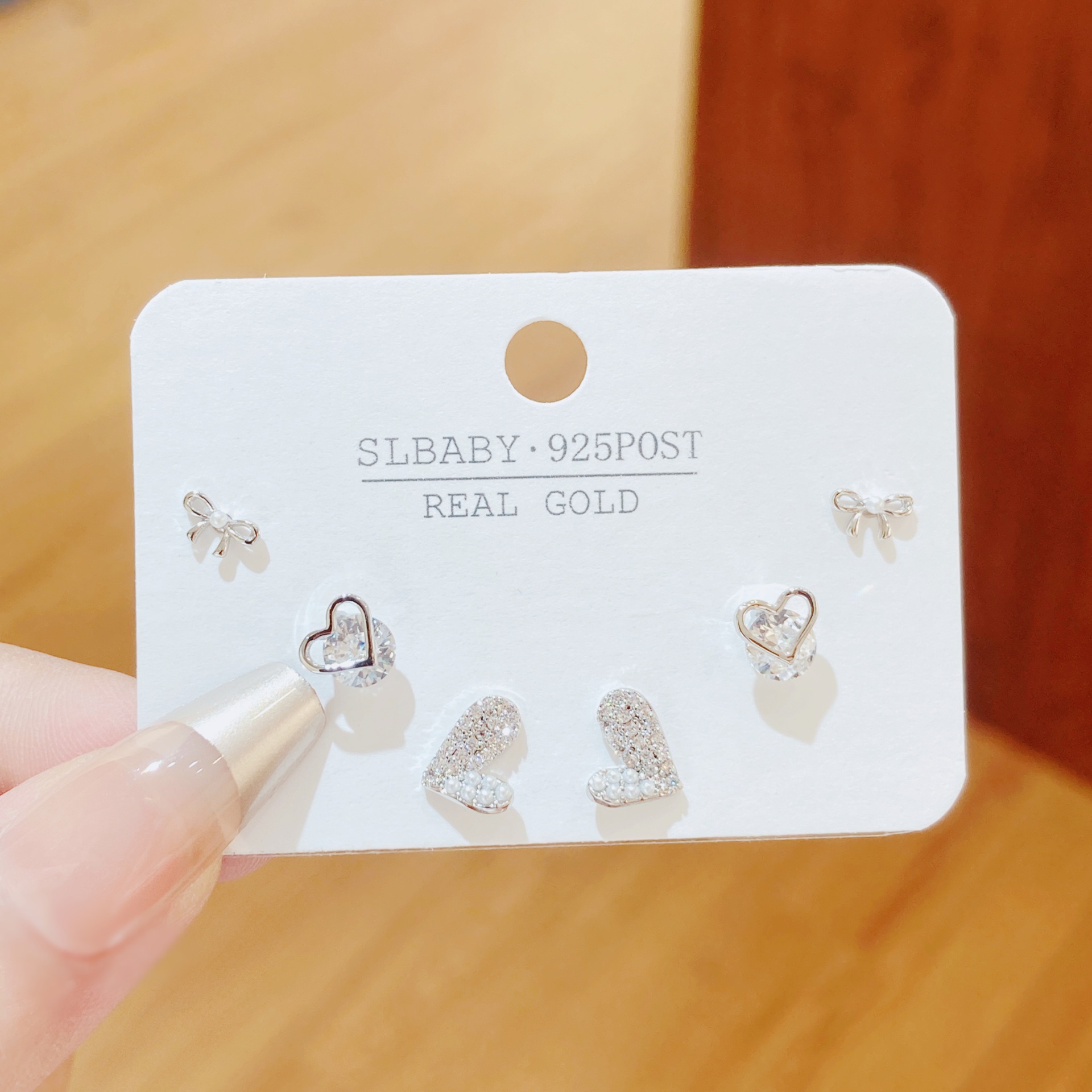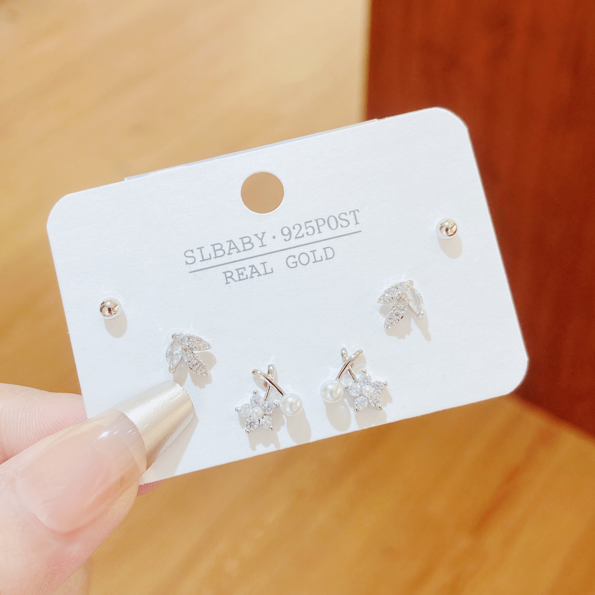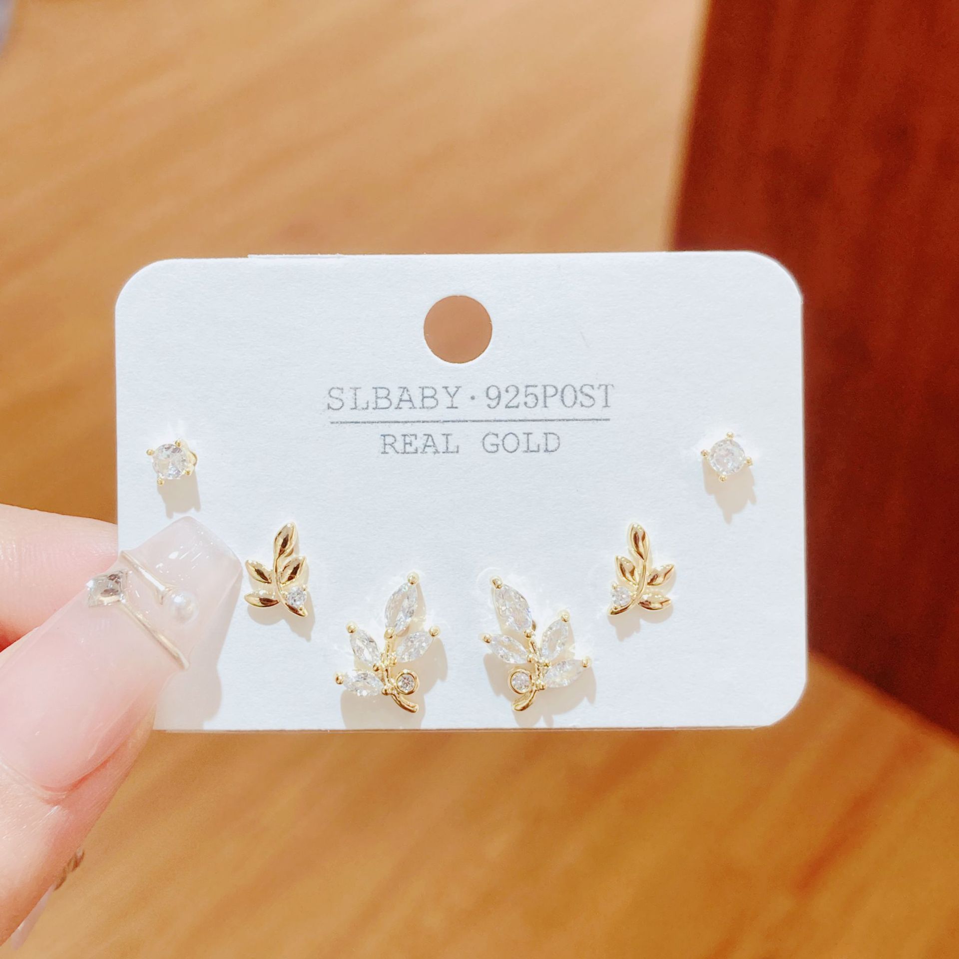 新款蝴蝶耳钉套装银针耳饰简约一周三对韩国高级感纯银耳环女批发