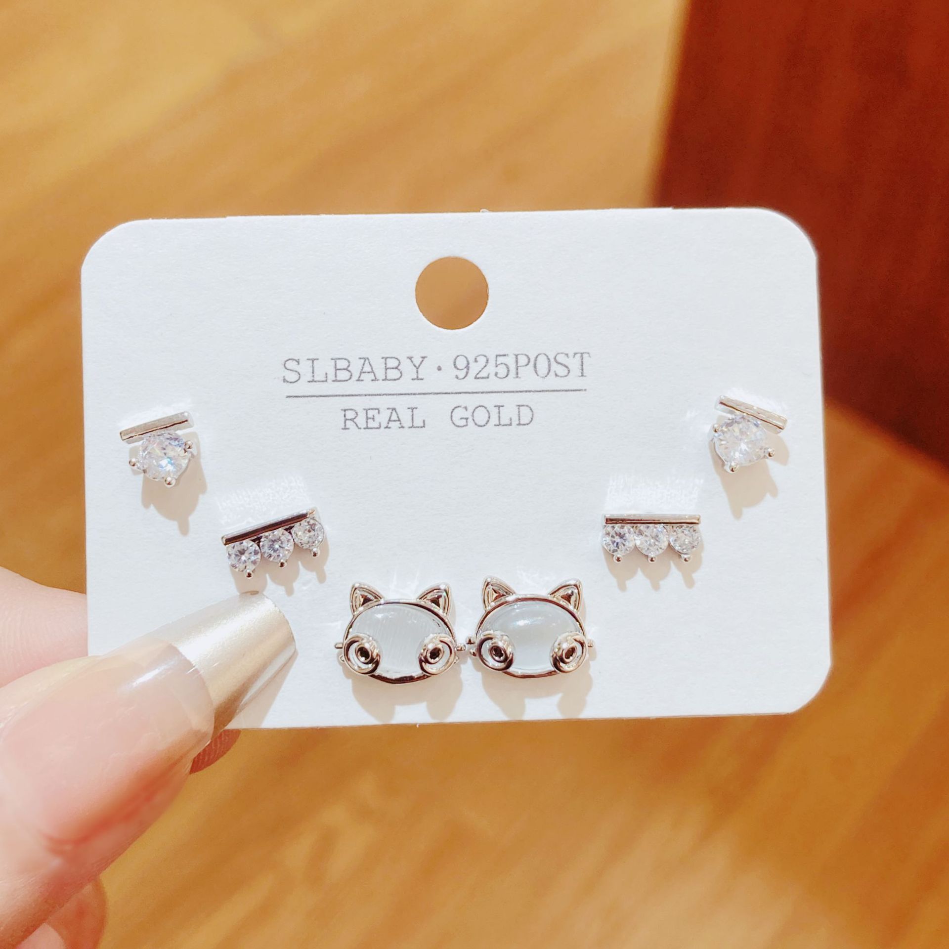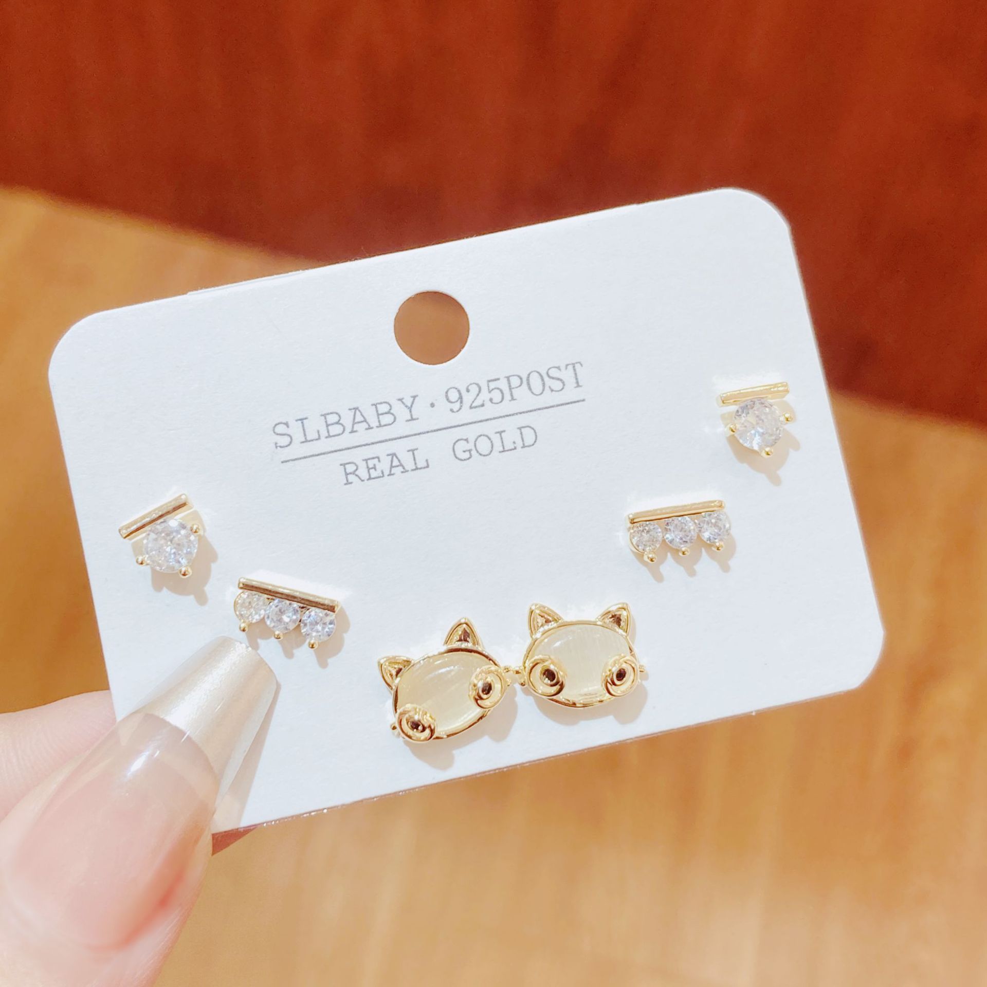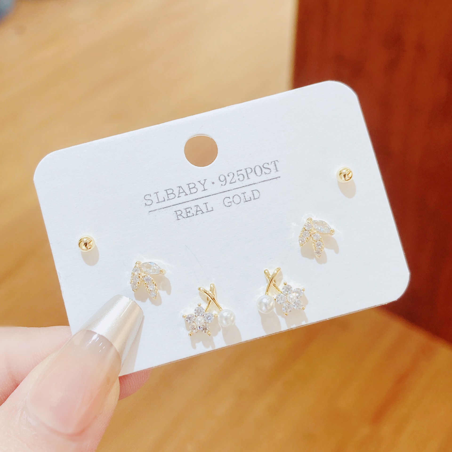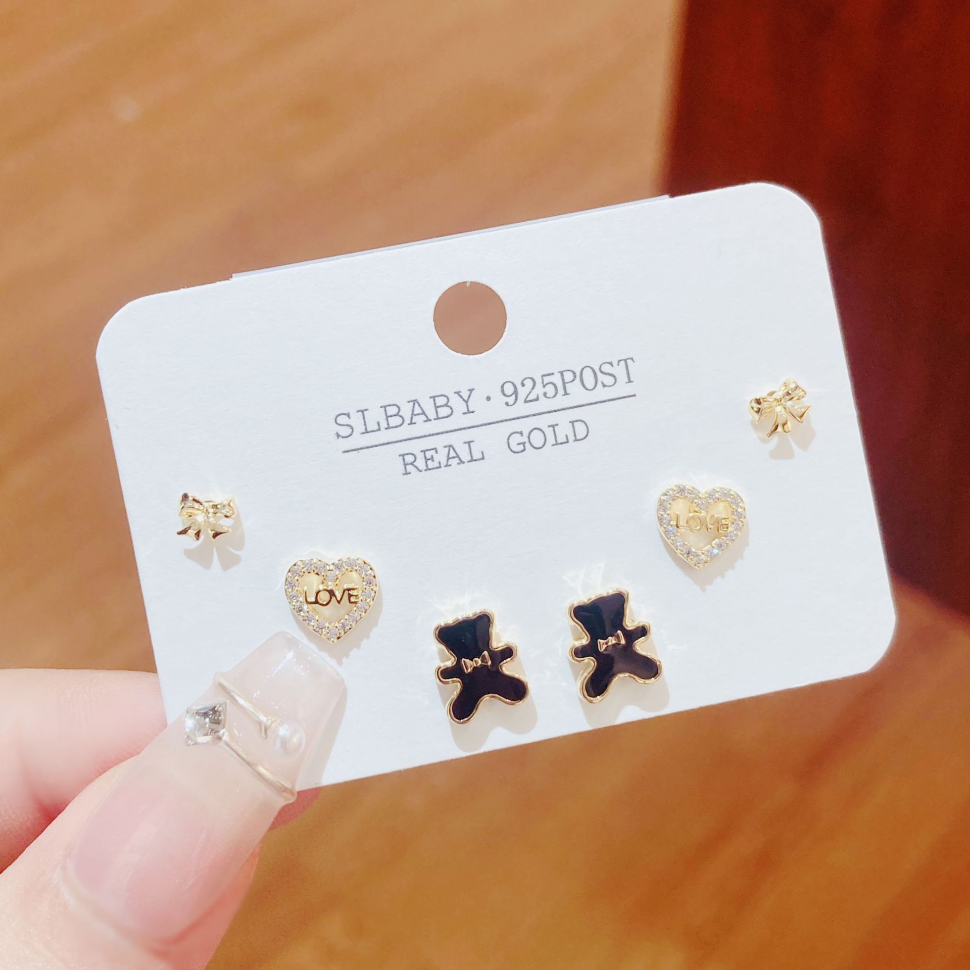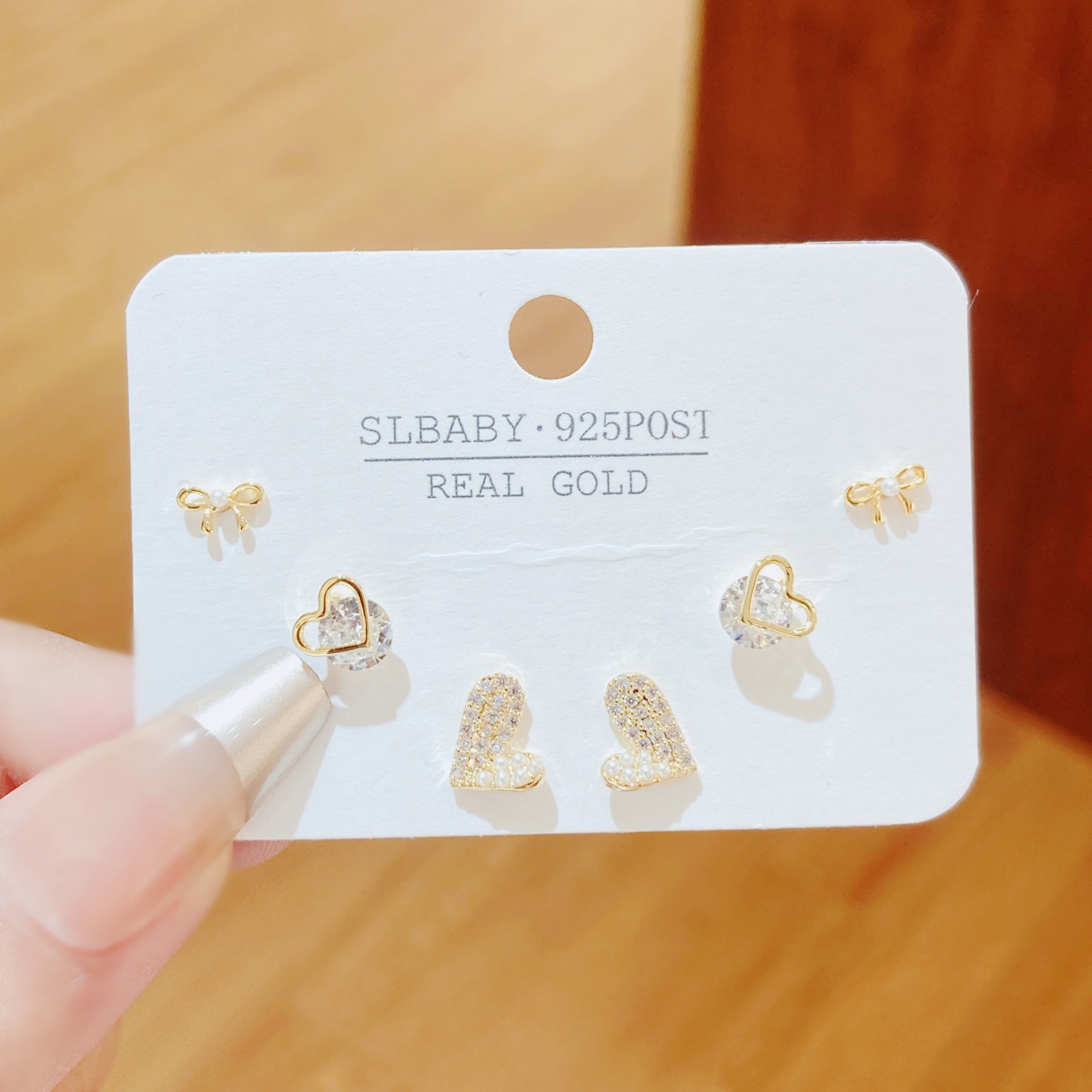 新款蝴蝶耳钉套装银针耳饰简约一周三对韩国高级感纯银耳环女批发