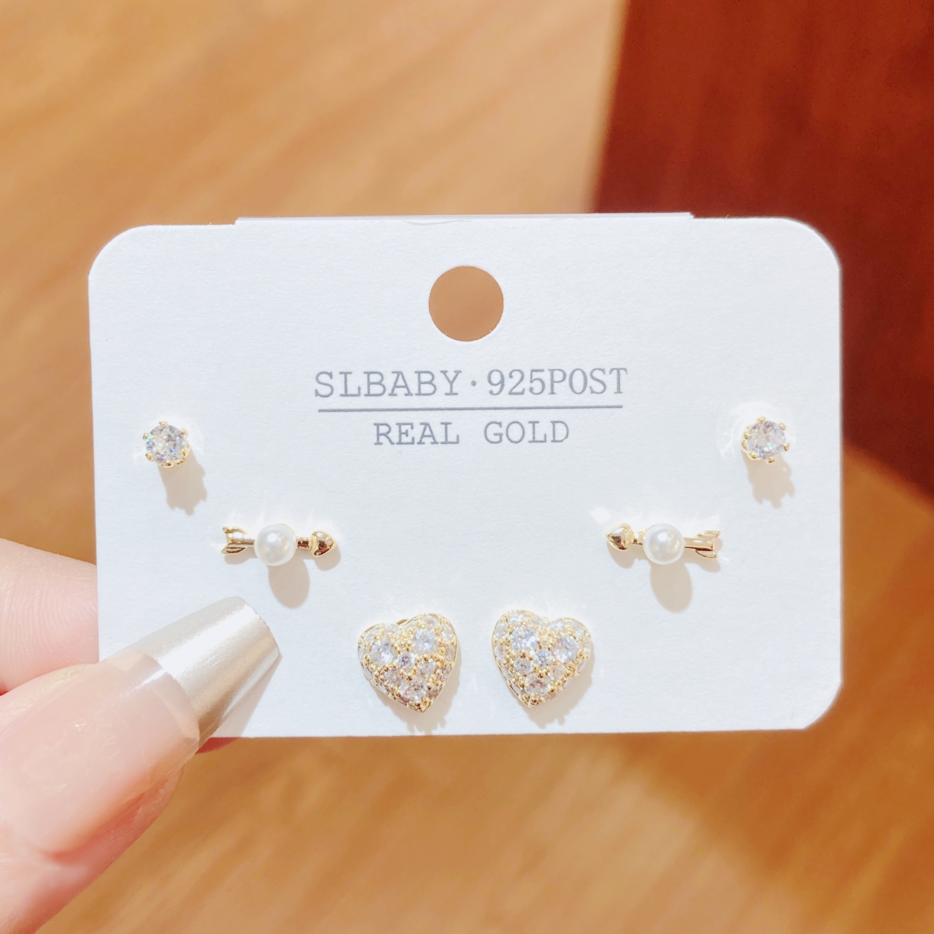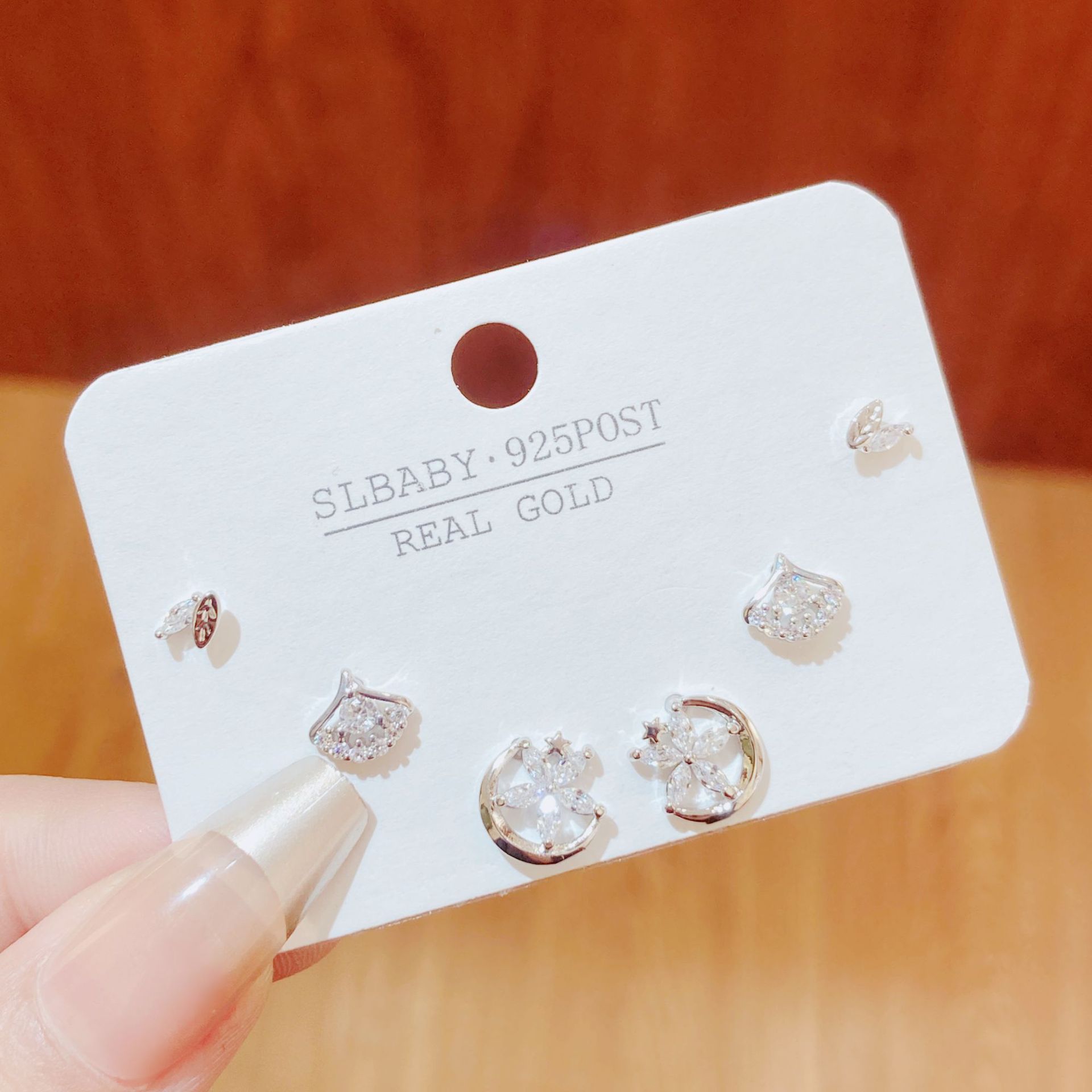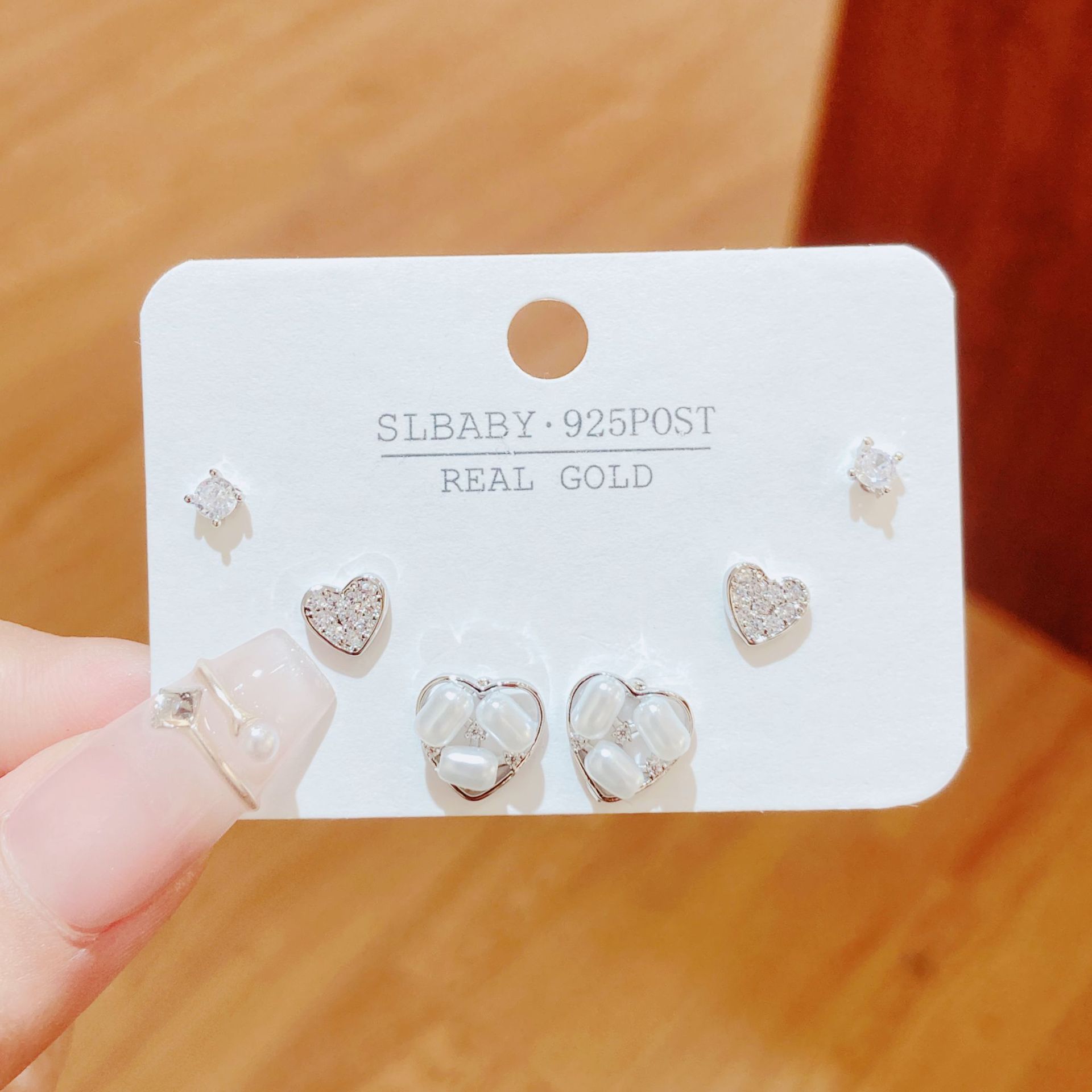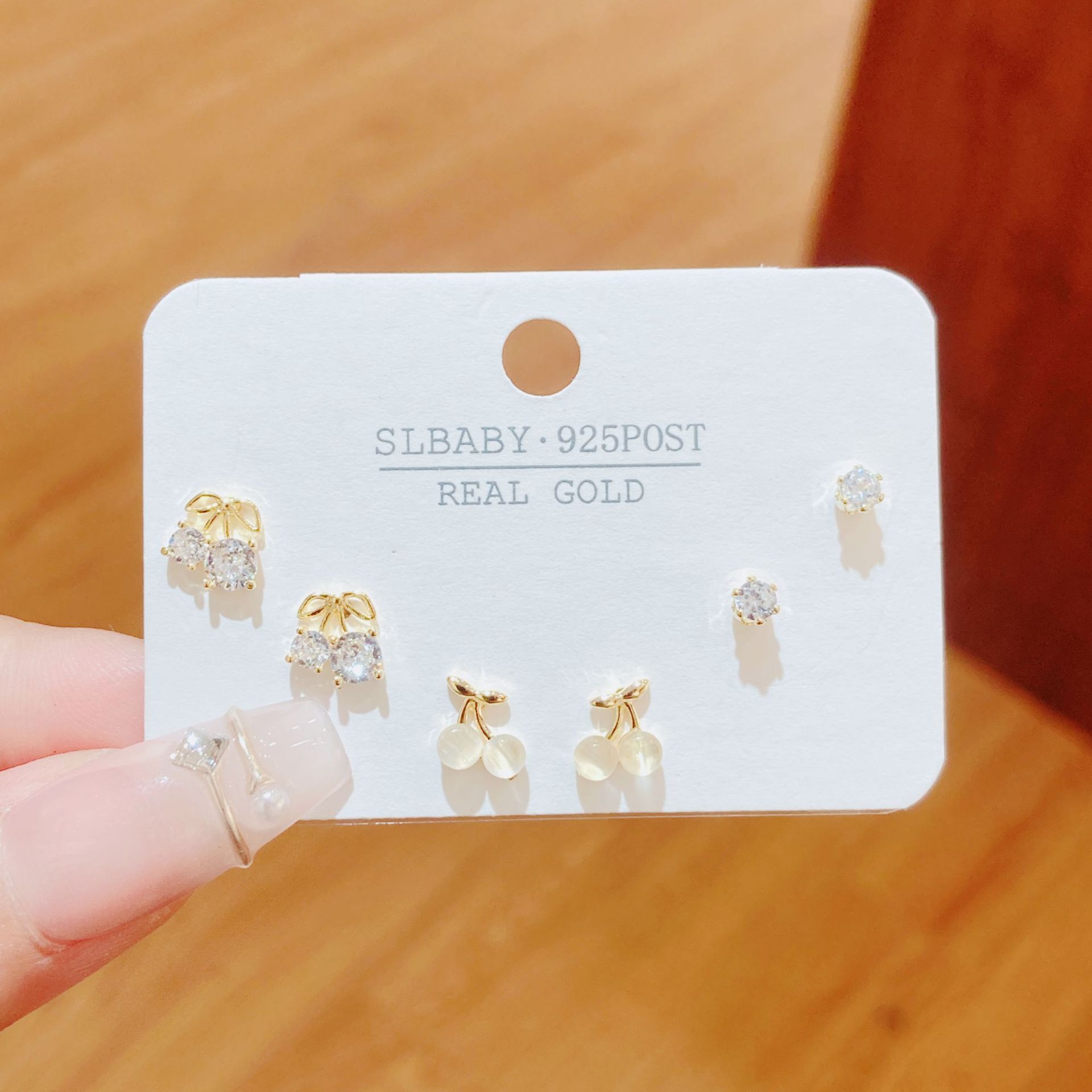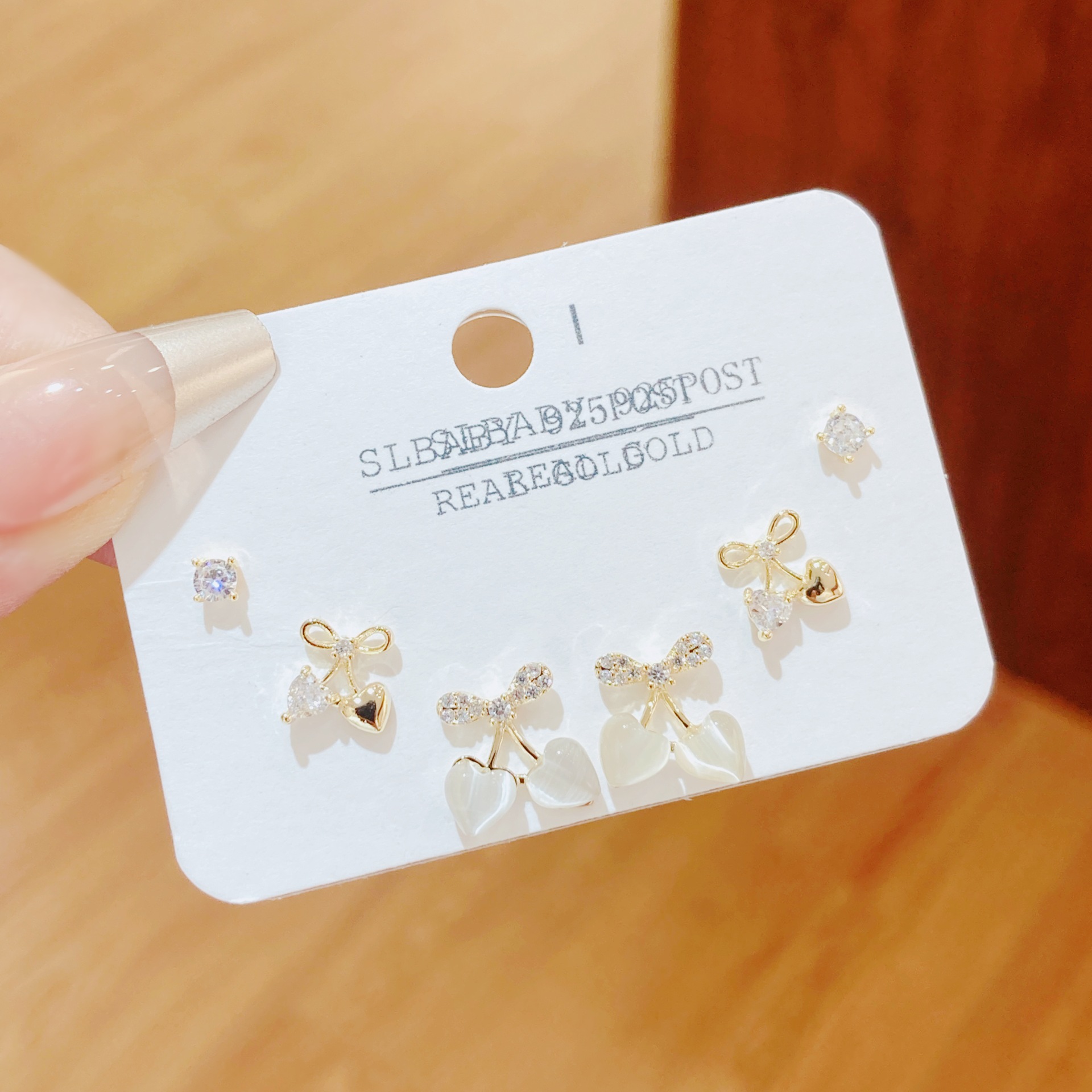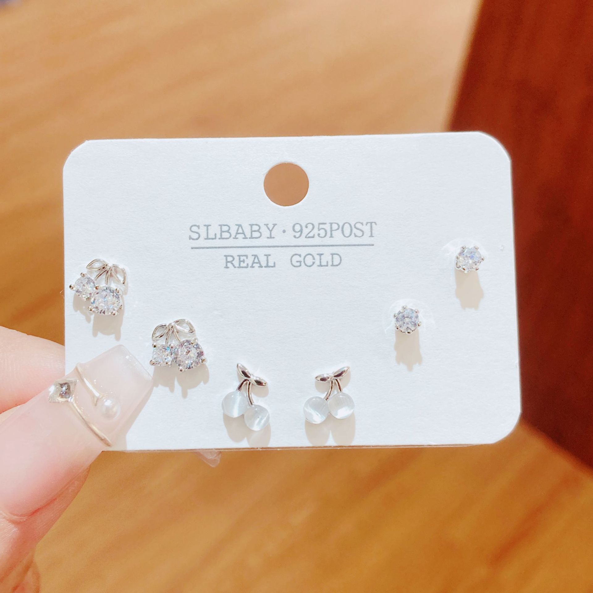 新款蝴蝶耳钉套装银针耳饰简约一周三对韩国高级感纯银耳环女批发