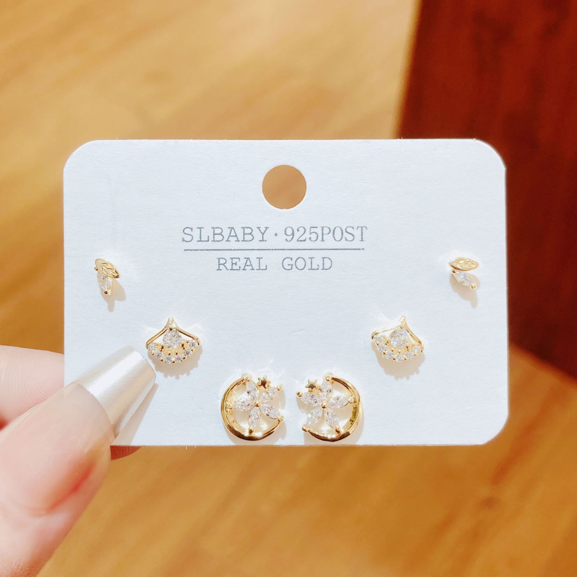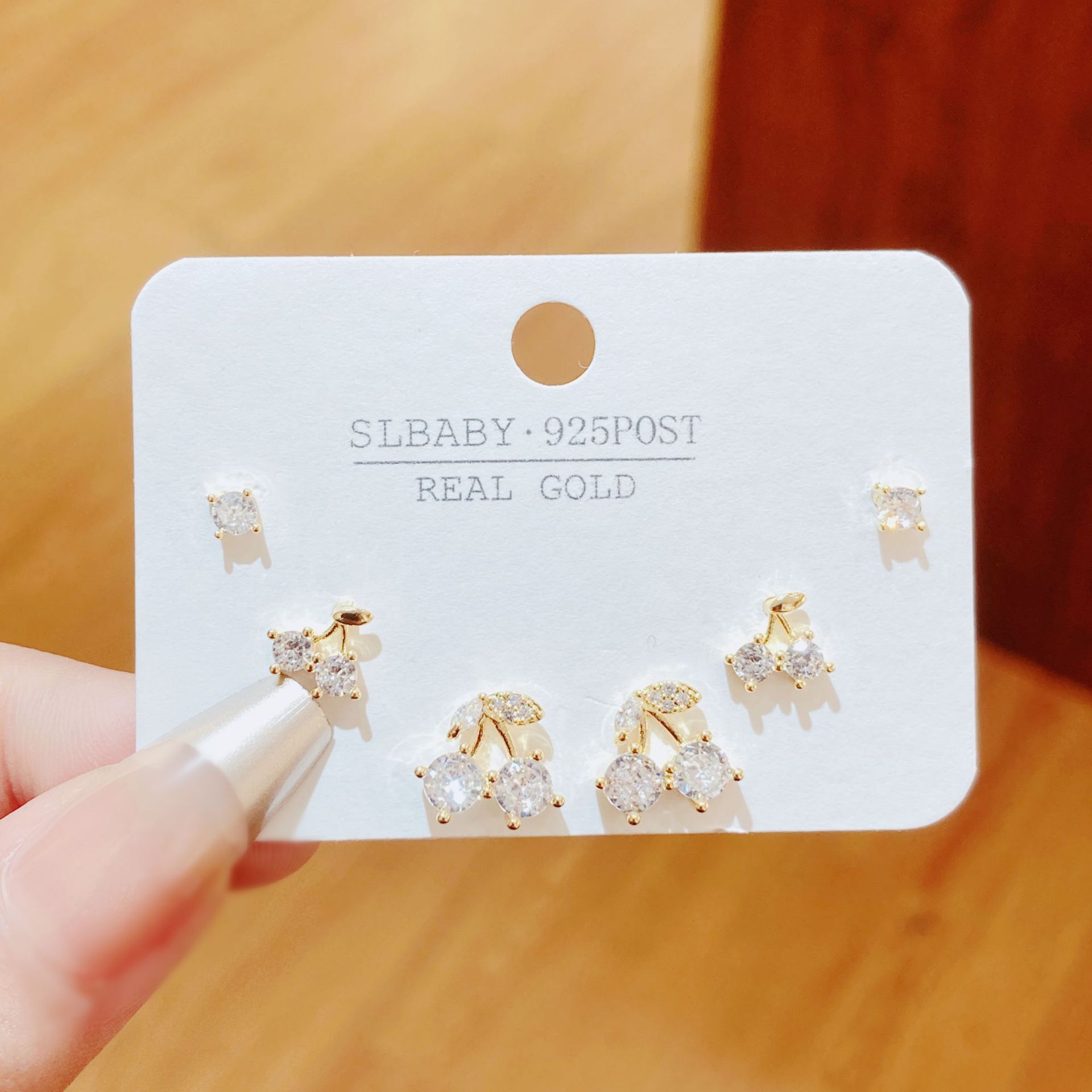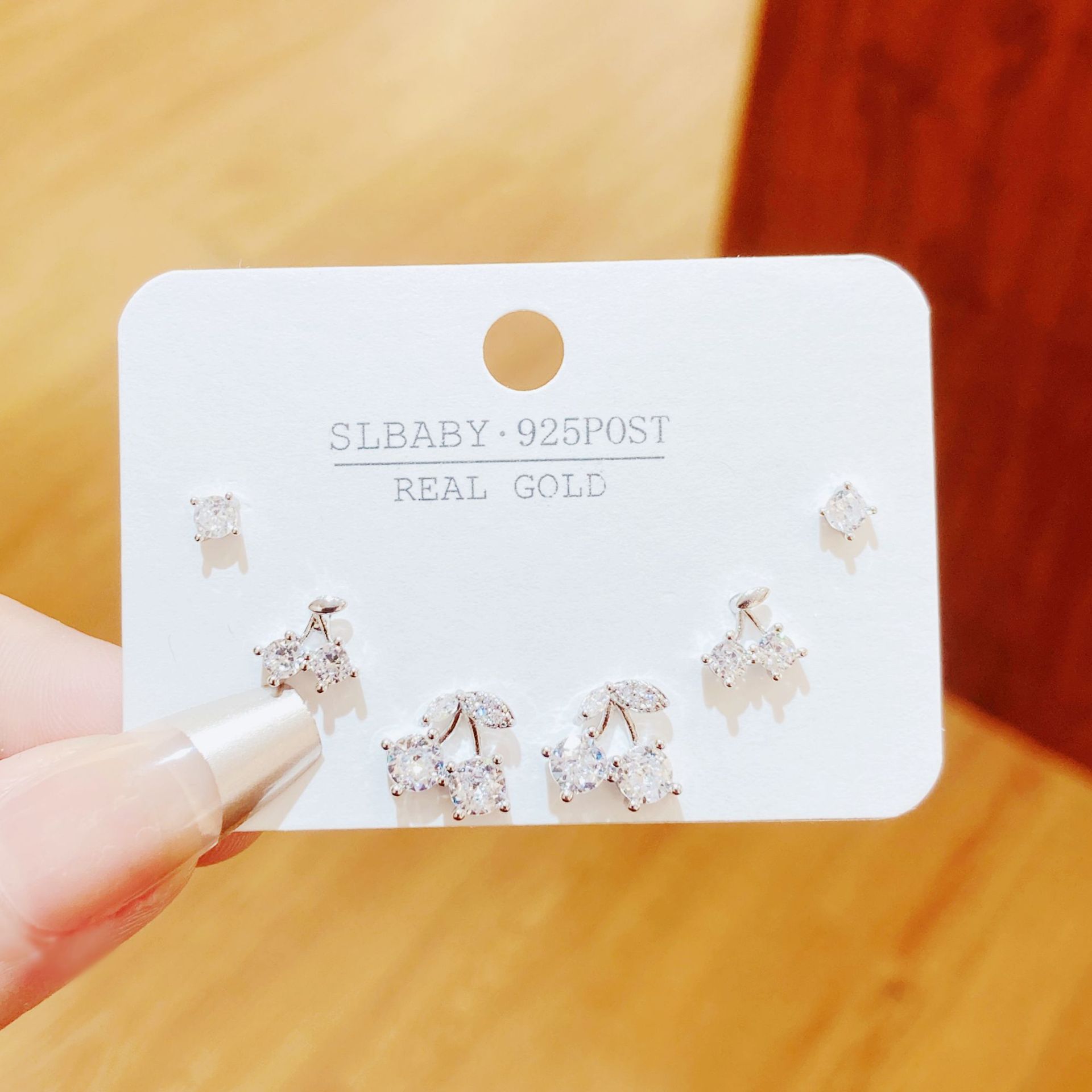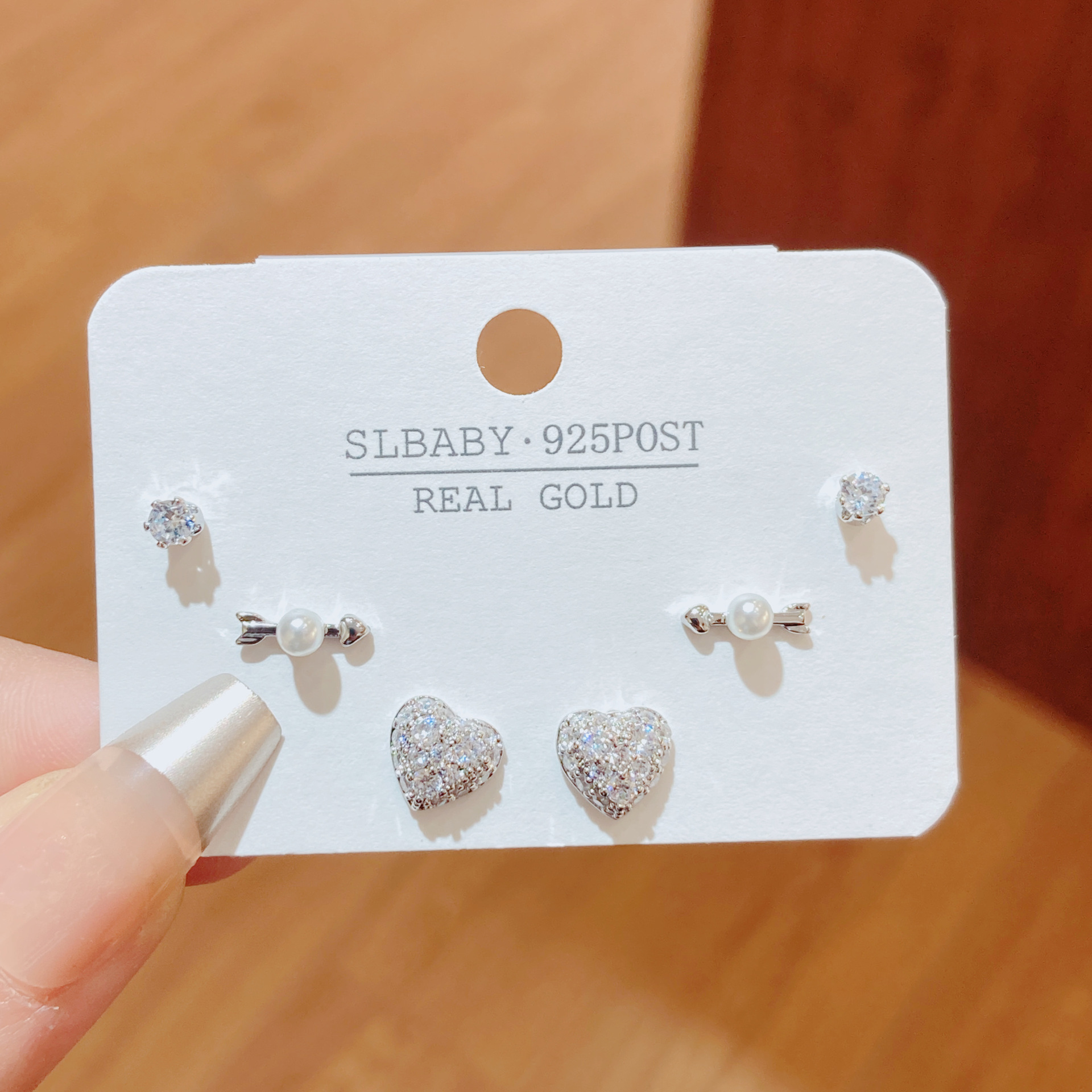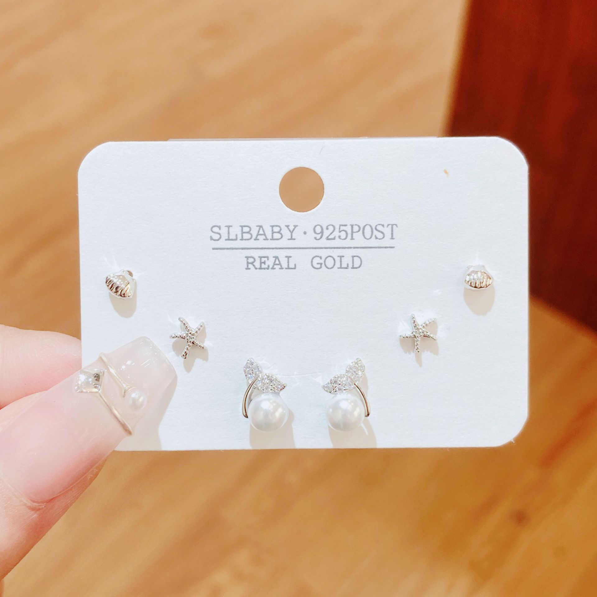 新款蝴蝶耳钉套装银针耳饰简约一周三对韩国高级感纯银耳环女批发