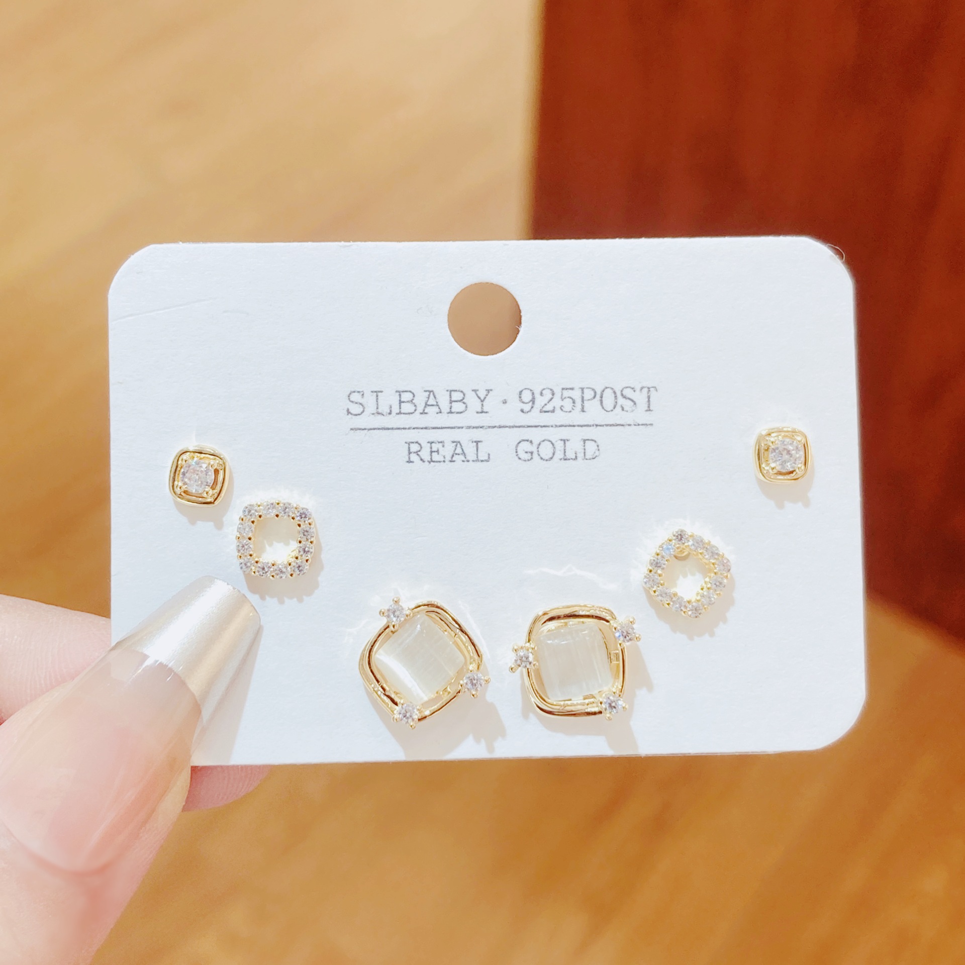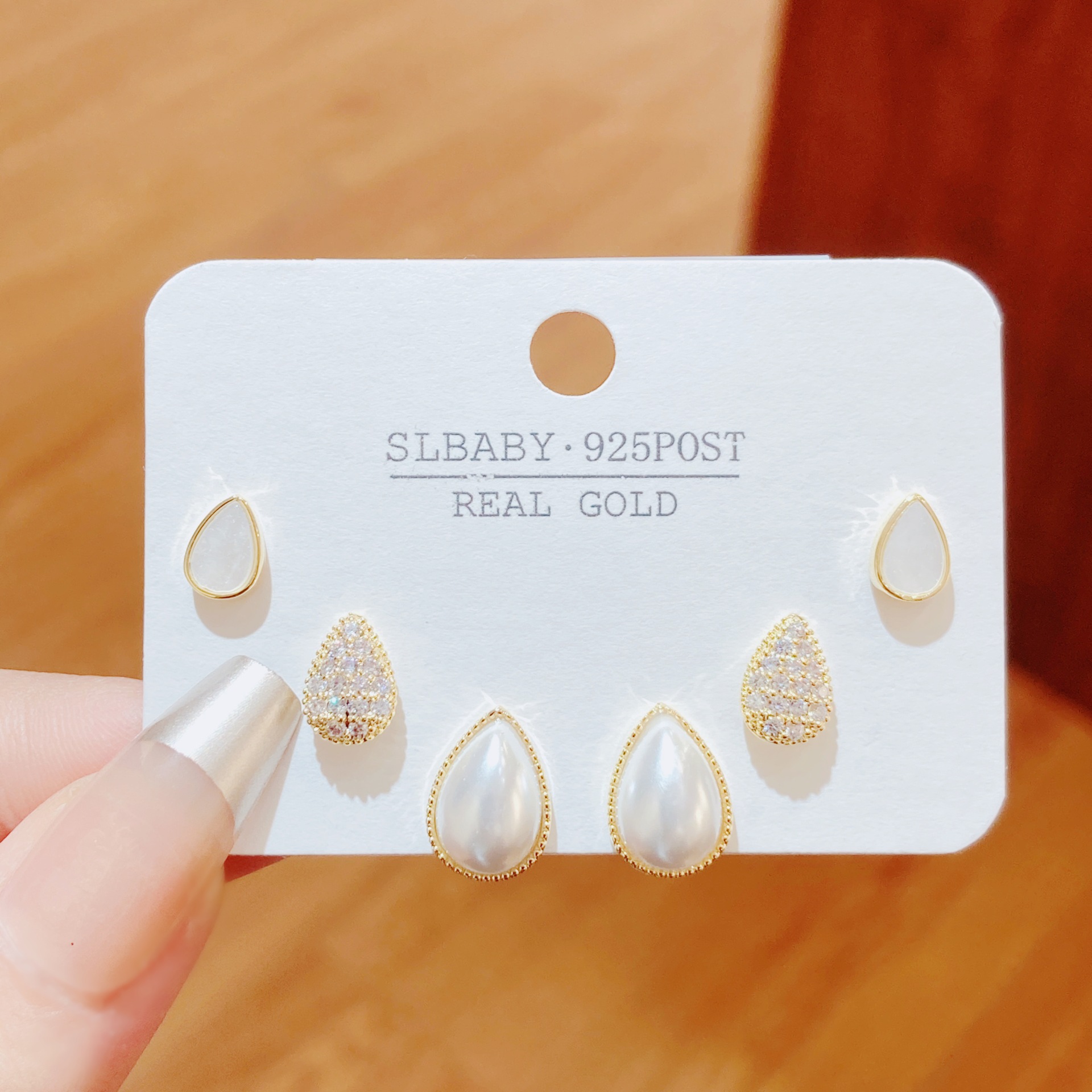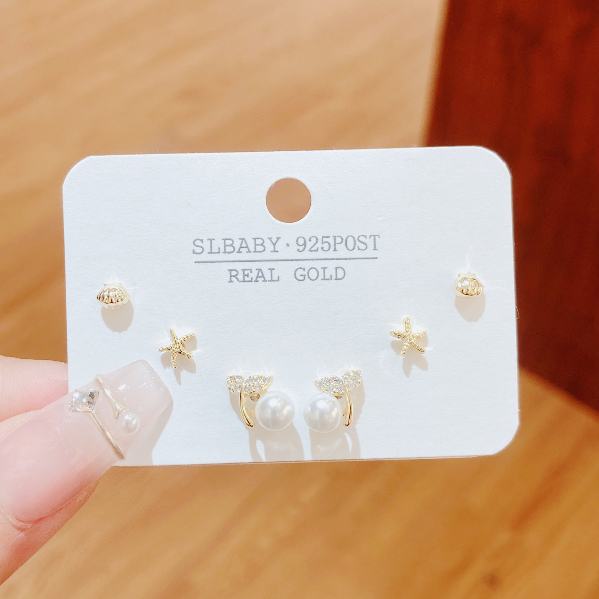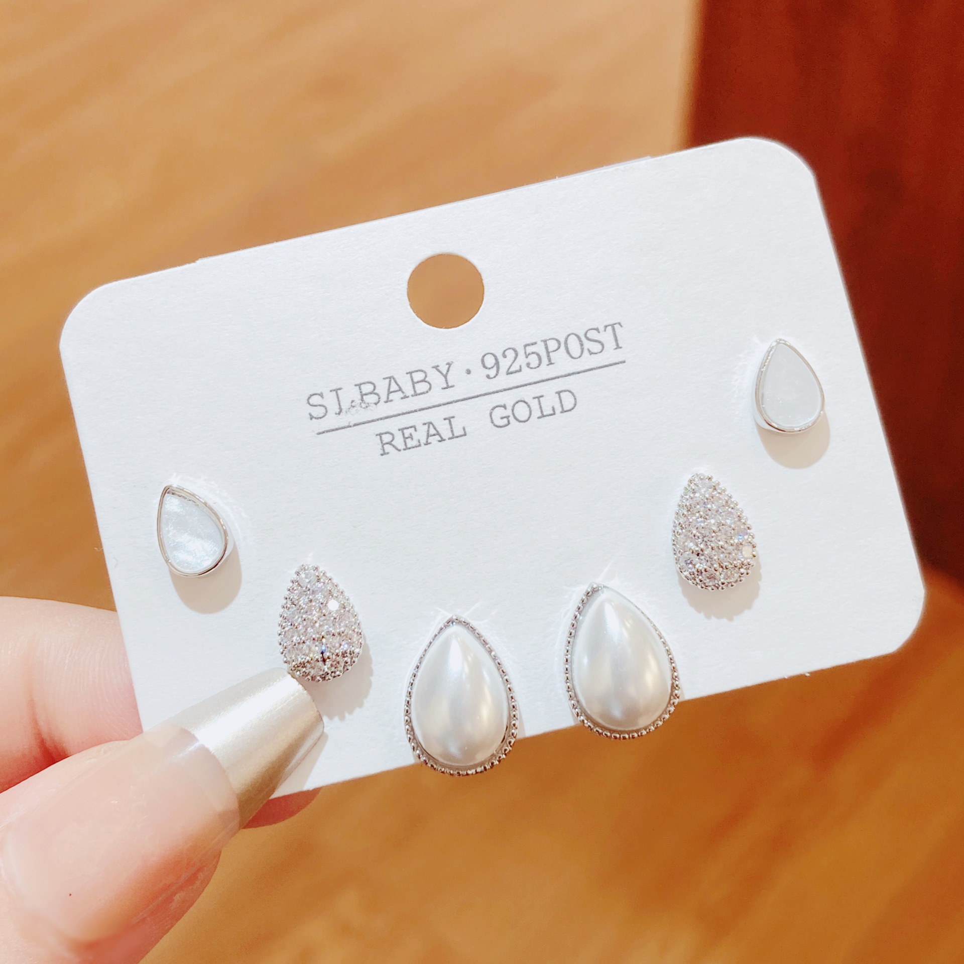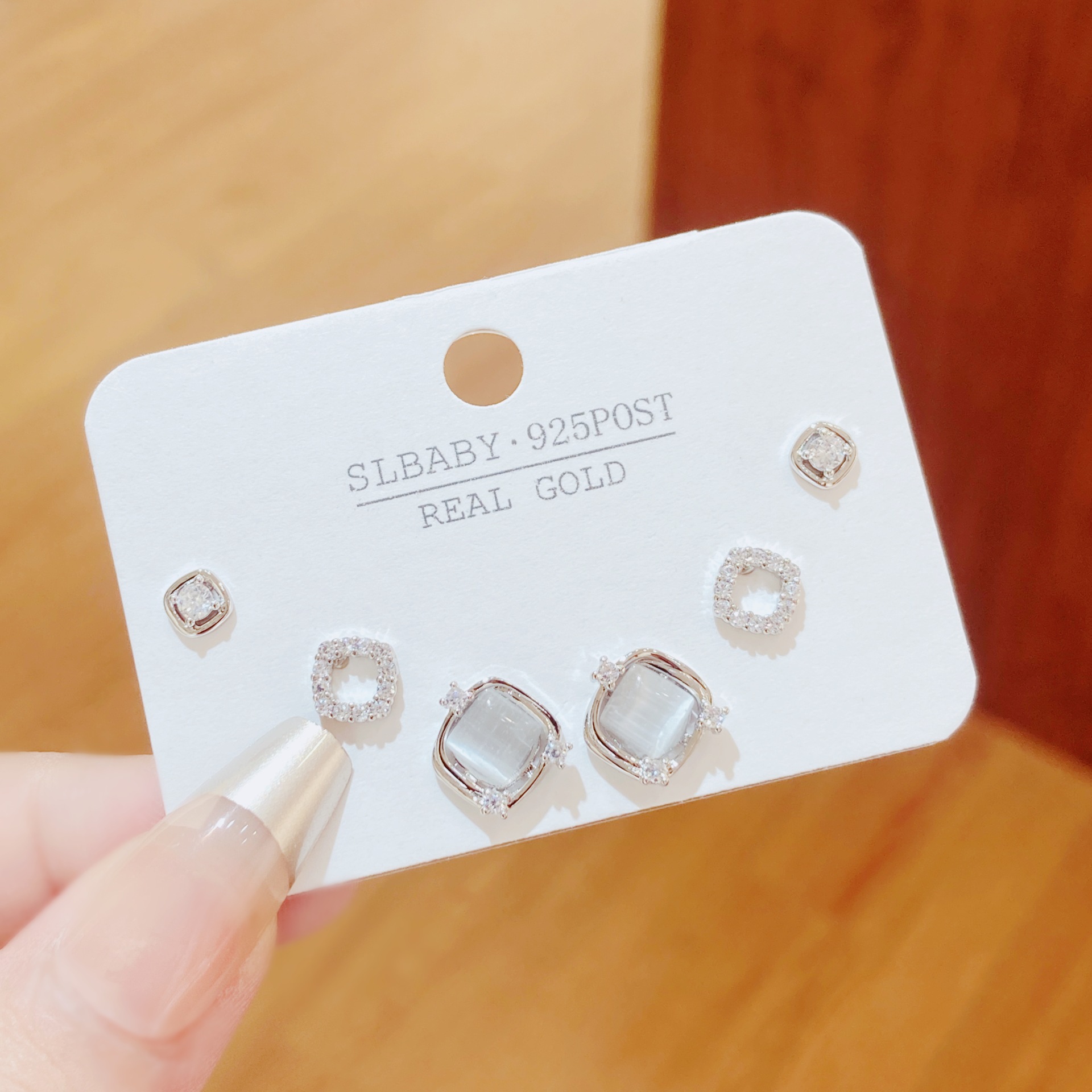 新款蝴蝶耳钉套装银针耳饰简约一周三对韩国高级感纯银耳环女批发