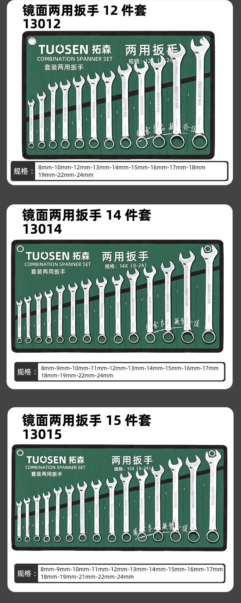 拓森8-24呆梅两用10件套手动14件套开口梅花扳手镜面两用扳手套装