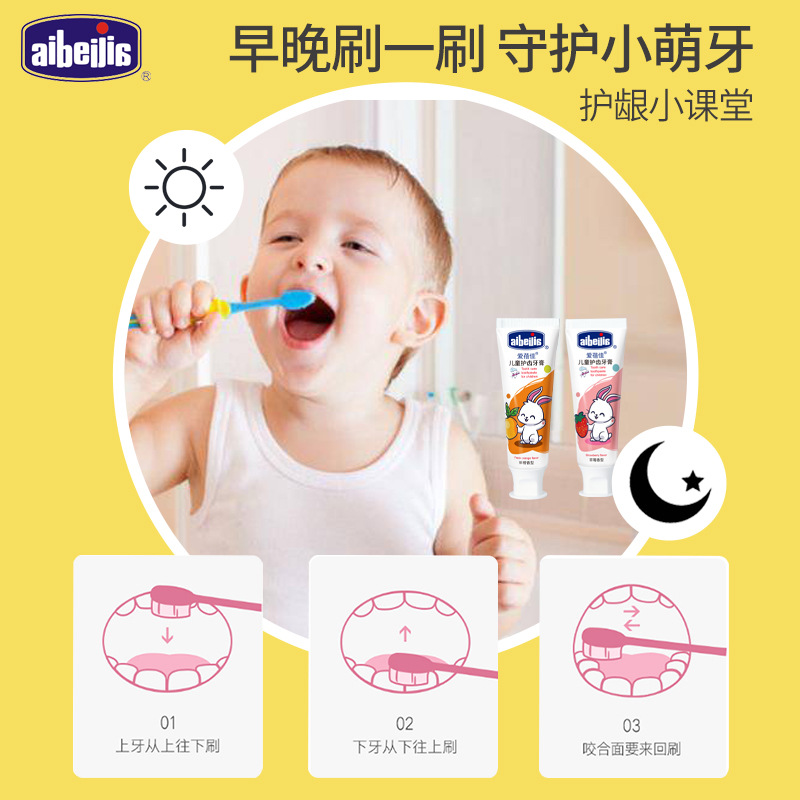 爱蓓佳3-6-12岁水果味婴幼儿宝宝护齿牙膏防蛀牙龋齿含氟儿童牙膏