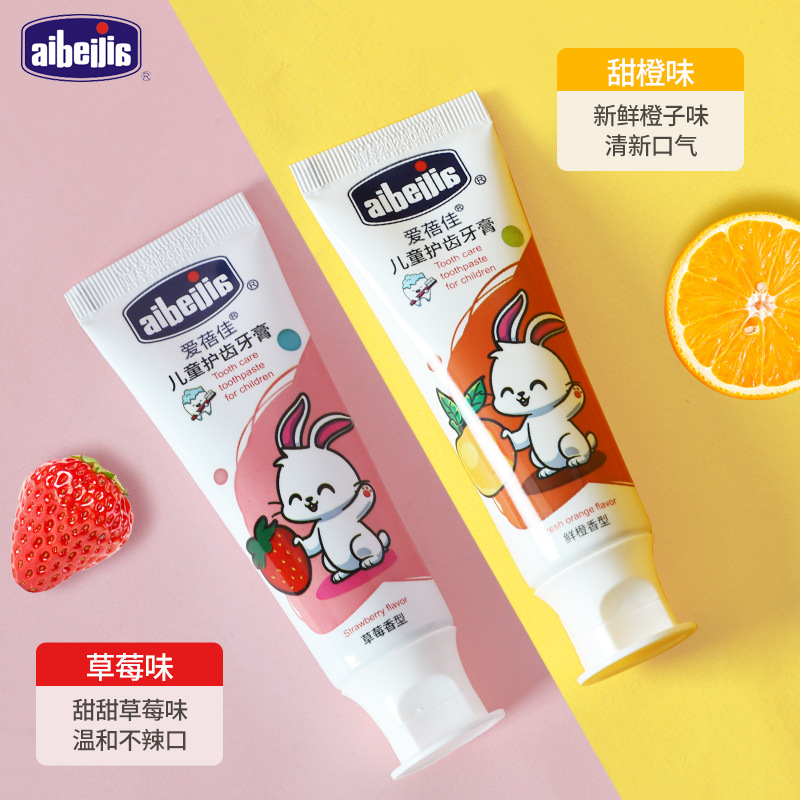 儿童护齿牙膏,2个味道可选(草莓味、鲜橙味)