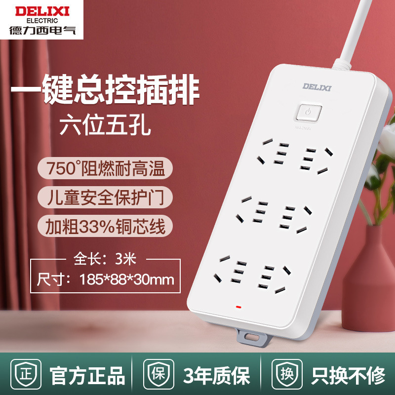 德力西新国标USB插排 带线插线板延长线5米多功能总控排插批发