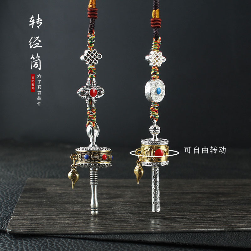 西藏式六字箴言转经筒汽车挂件转动包包挂饰复古景区寺庙饰品礼品