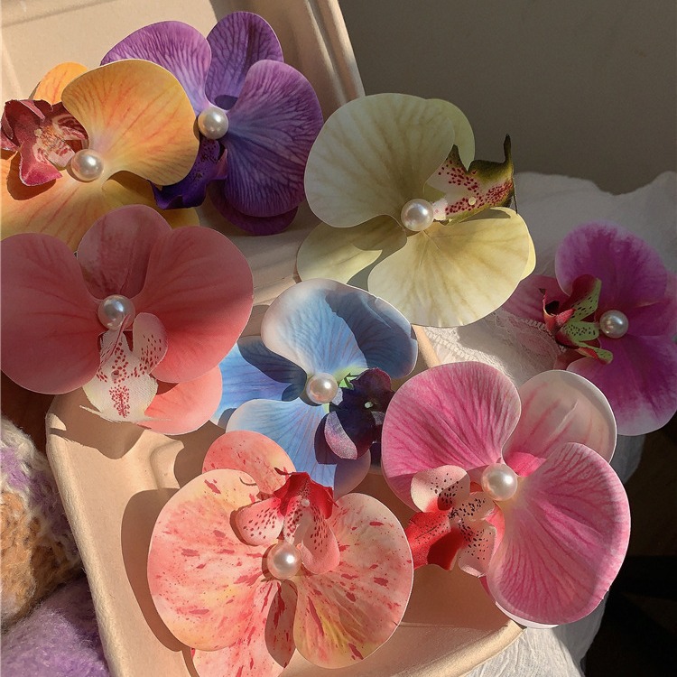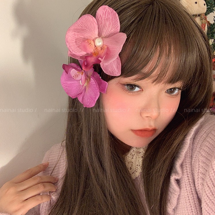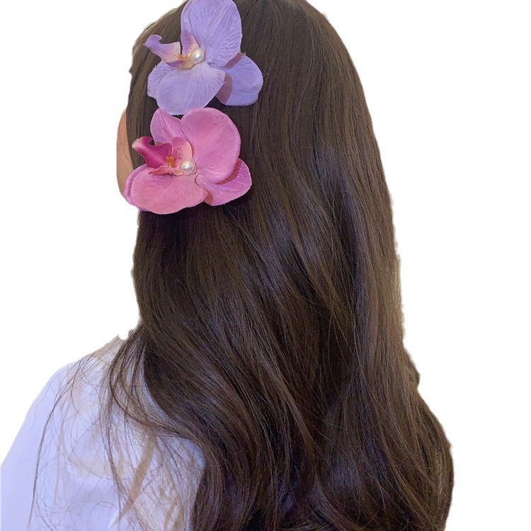 蝴蝶兰边夹+刘海夹发夹海边度假发饰刘海夹
