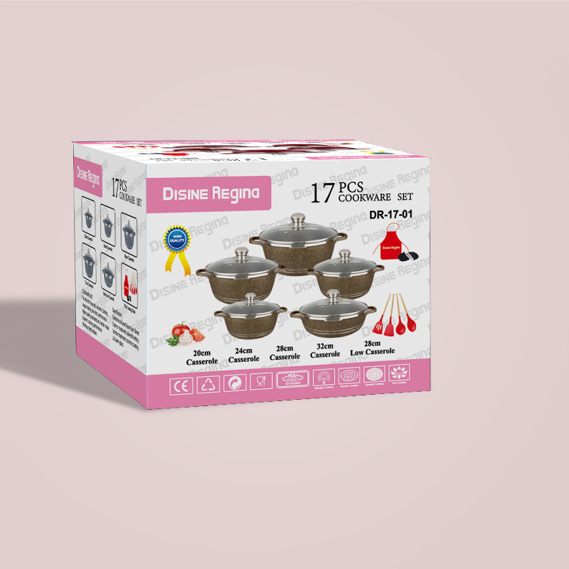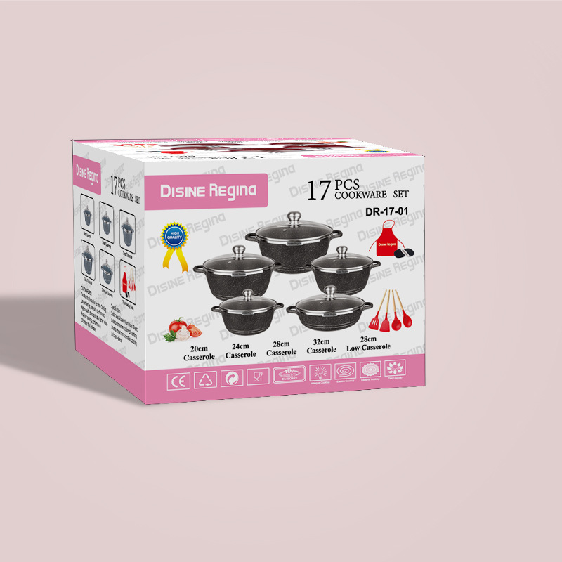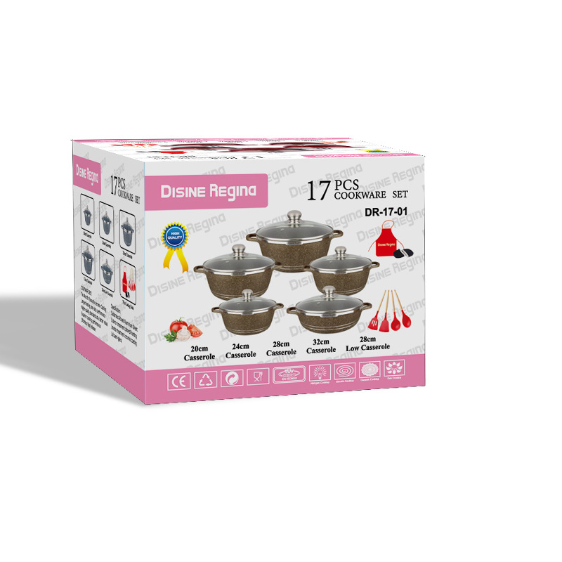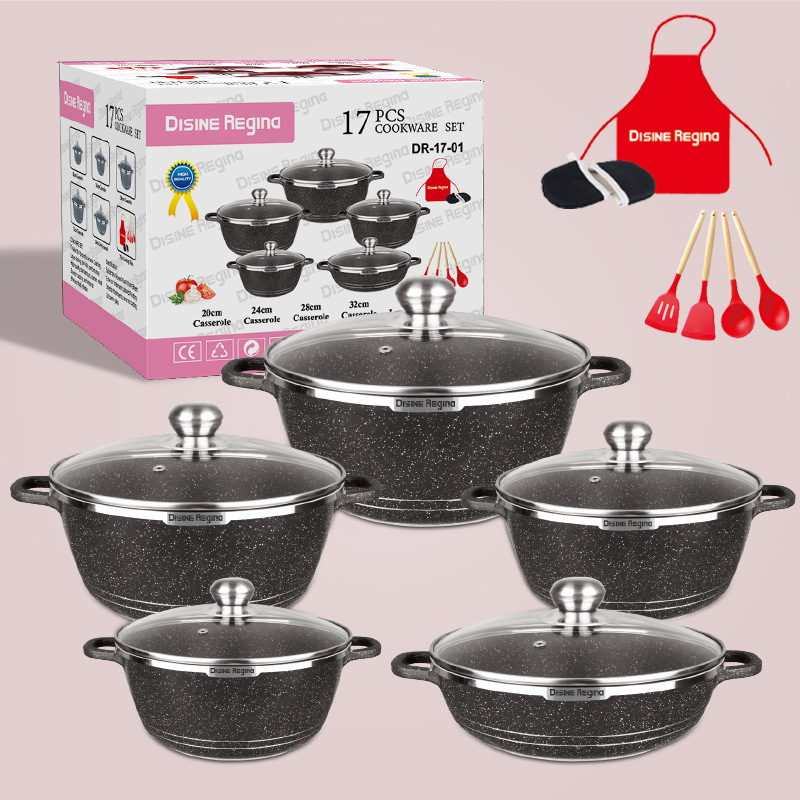外贸17件套铝锅套装 撒点铝锅玻璃盖17件套 4pcs set义乌支持自提